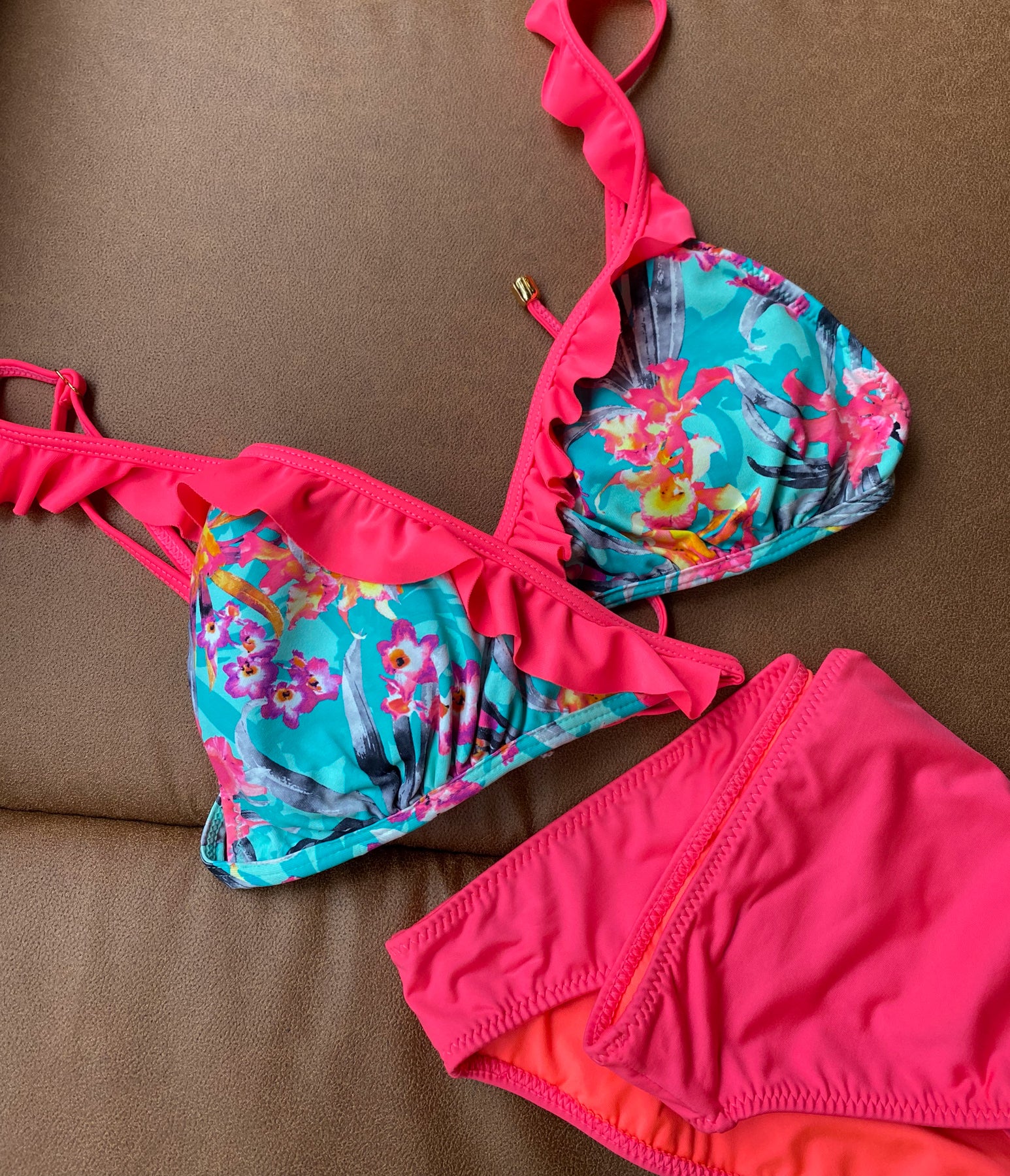 Swimsuit Madness Cheeky Bottom Floreado Mixed Print Con Rayas