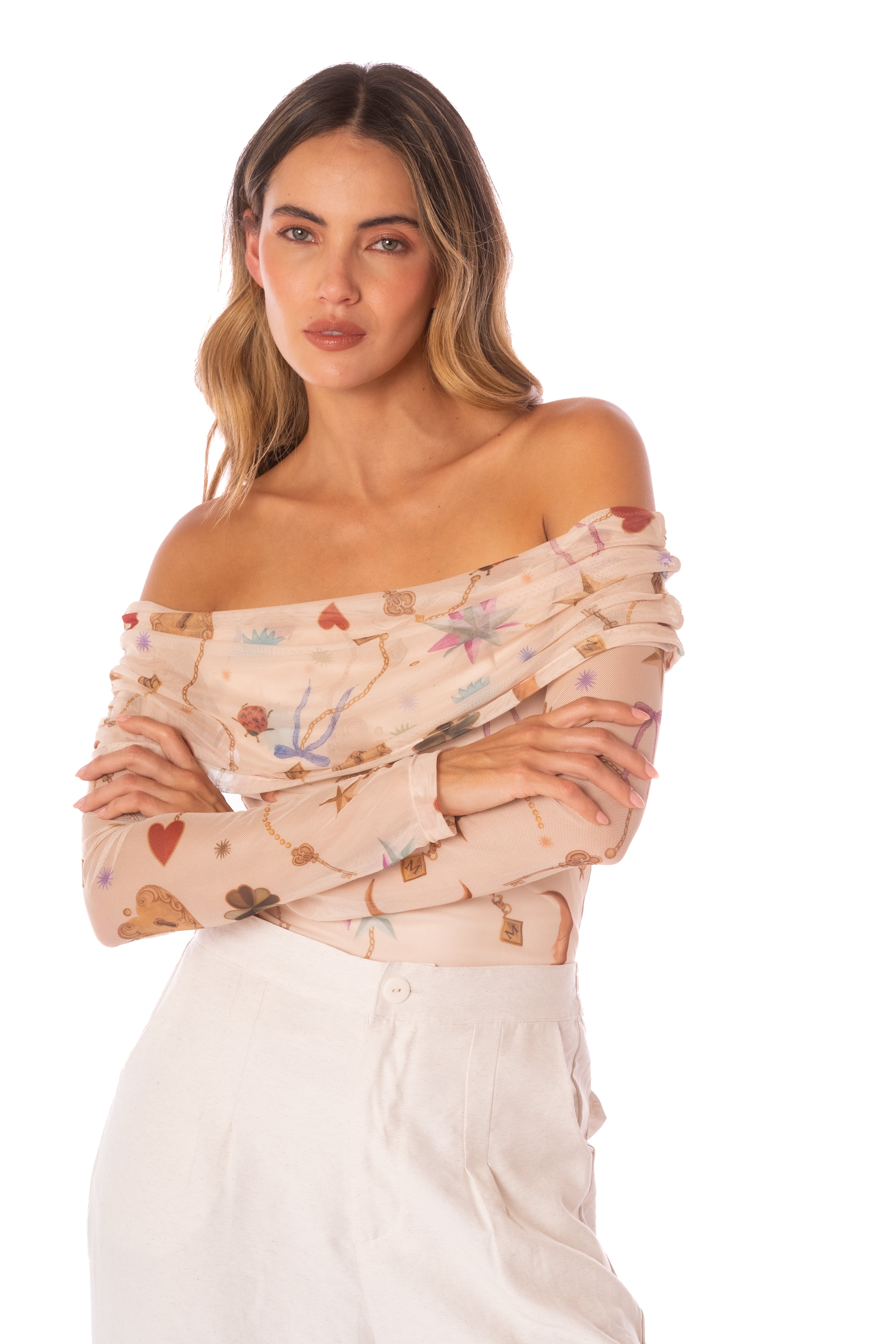 LUCKY CHARM MESH BANDEAU LONG SHIRT M
