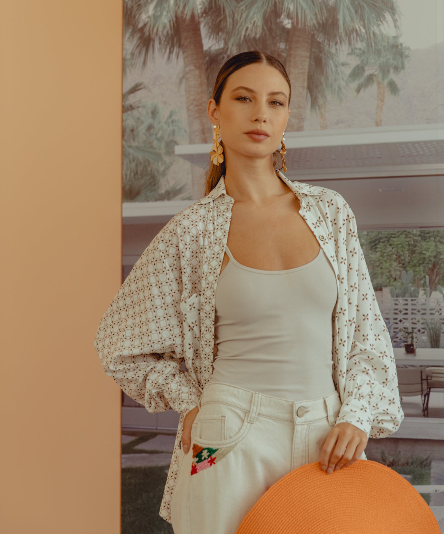 CAMISA IVORY CON MONOGRAMA BEIGE