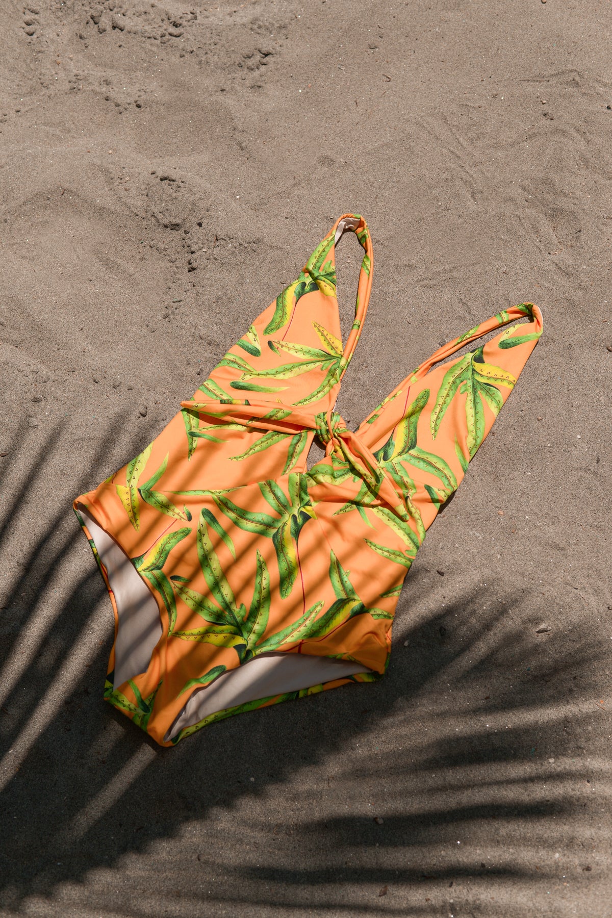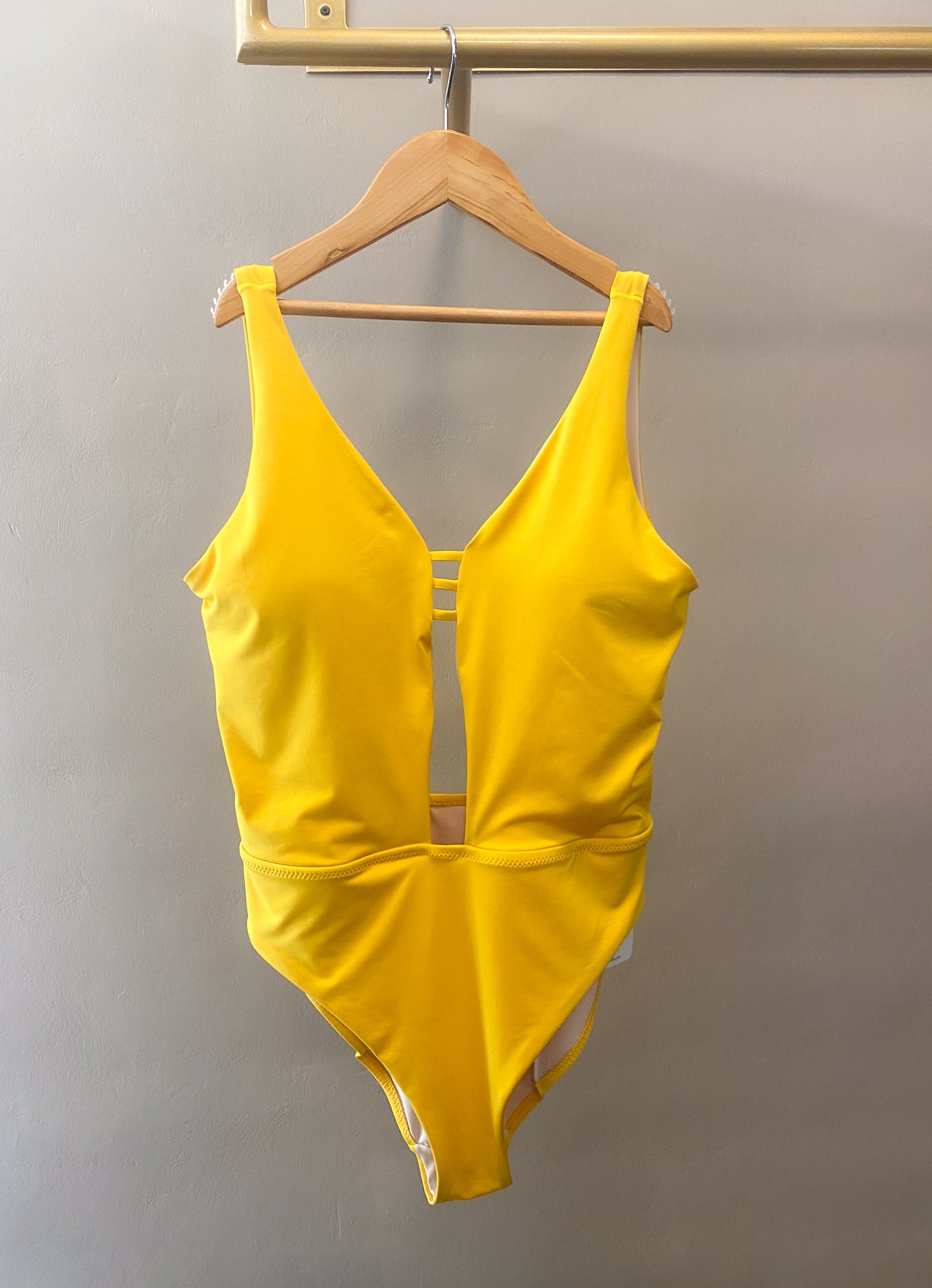 Entera Floreada Con Fondo Amarillo - Escote En V