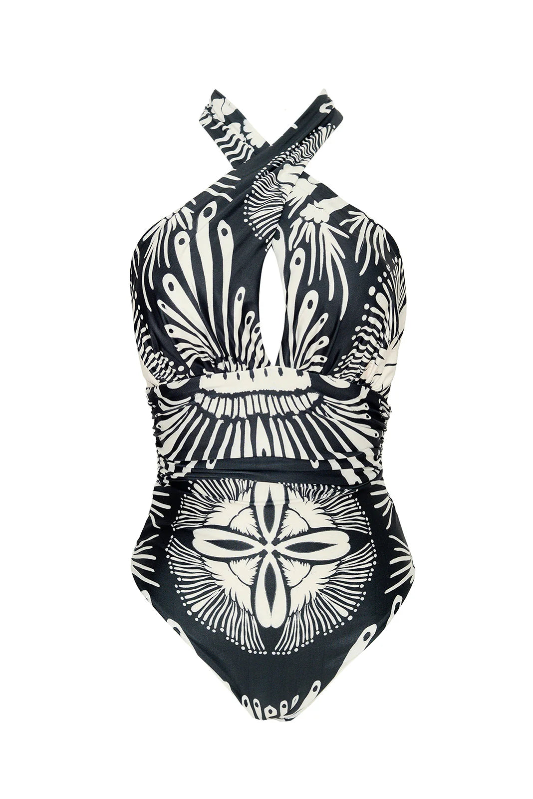 Cross halter one piece with drapped details.