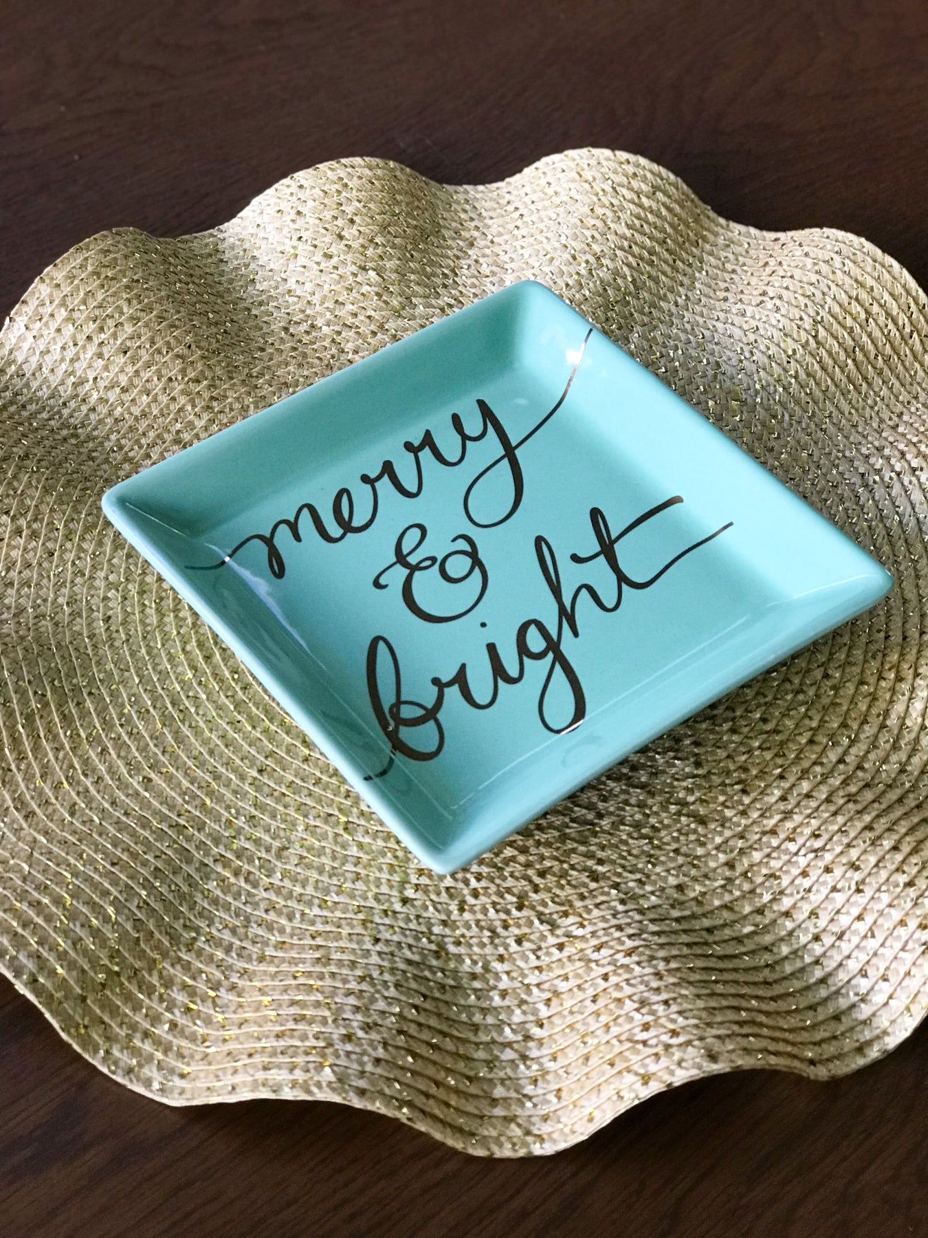 Ceramic Appetizer Plate, Sold individually, come in Red "Merry Christmas" design or in Mint "Merry and Bright" design. Measure 17cm x 17cm.