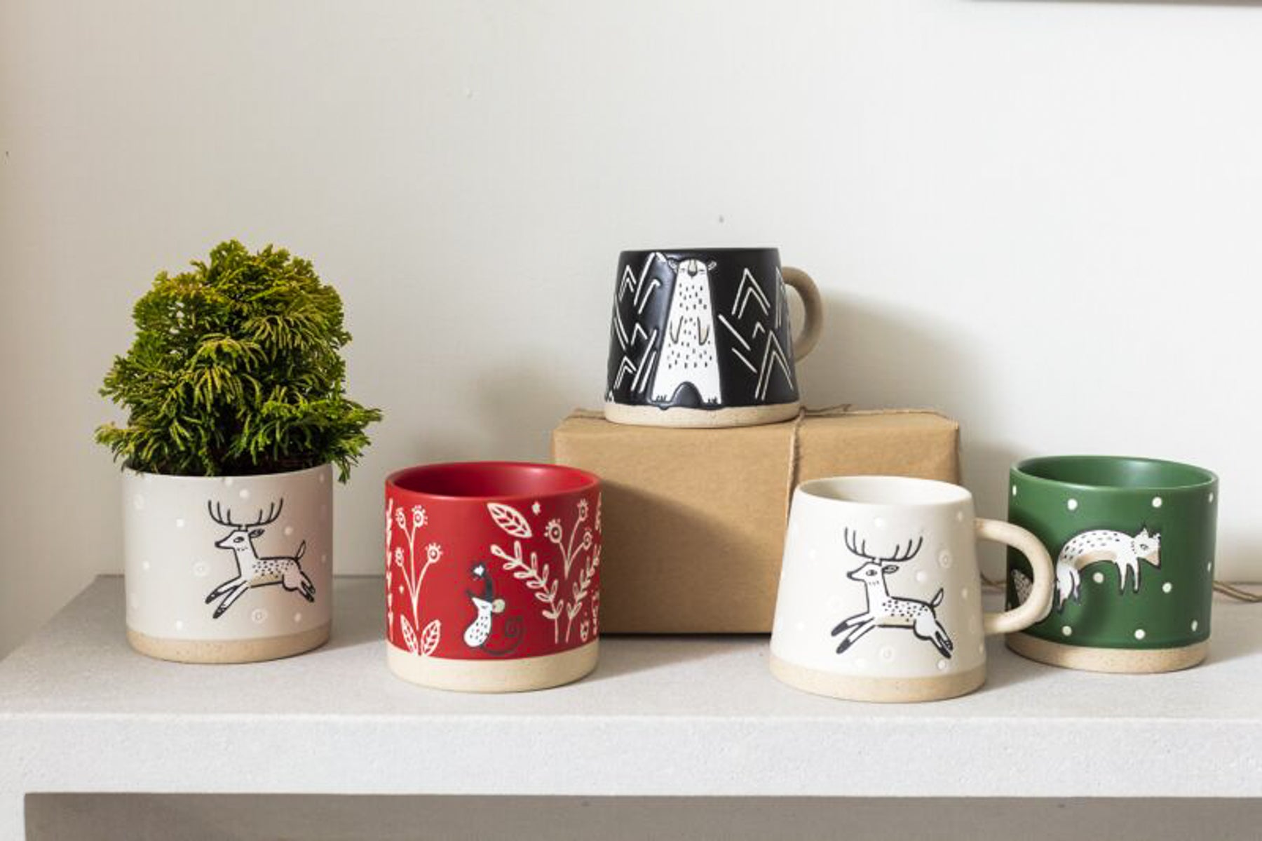 Nordic winter critters frolic across the ceramic Arwen Mug collection. Mug includes a whimsical nature scenes, the collection includes a leaping deer and a super smooth matte finish contrasts the etched and painted designs and bisque base and handle of the mug. Holds 12 fluid ounces. Mugs also make great pots for a cheery holiday plant gift.