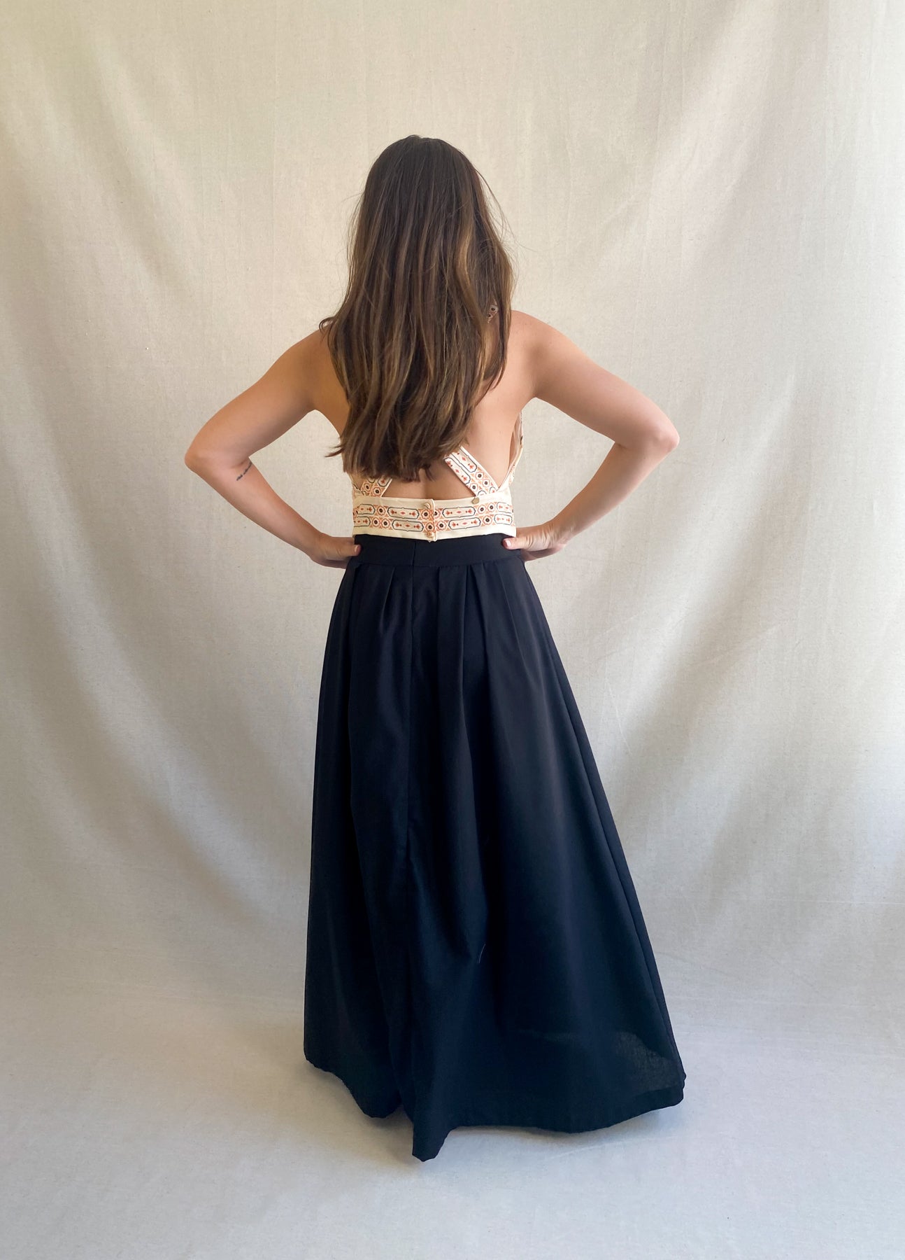Esta preciosa prenda está confeccionada en algodón 100%, es de silueta amplia con prenses, pretina lisa con cierre invisible en el posterior. Además, su generosa longitud lo hace perfecto para todo tipo de cuerpos. Tanto si te vistes para un evento especial como para salir una noche por la ciudad, esta falda no pasará desapercibida.