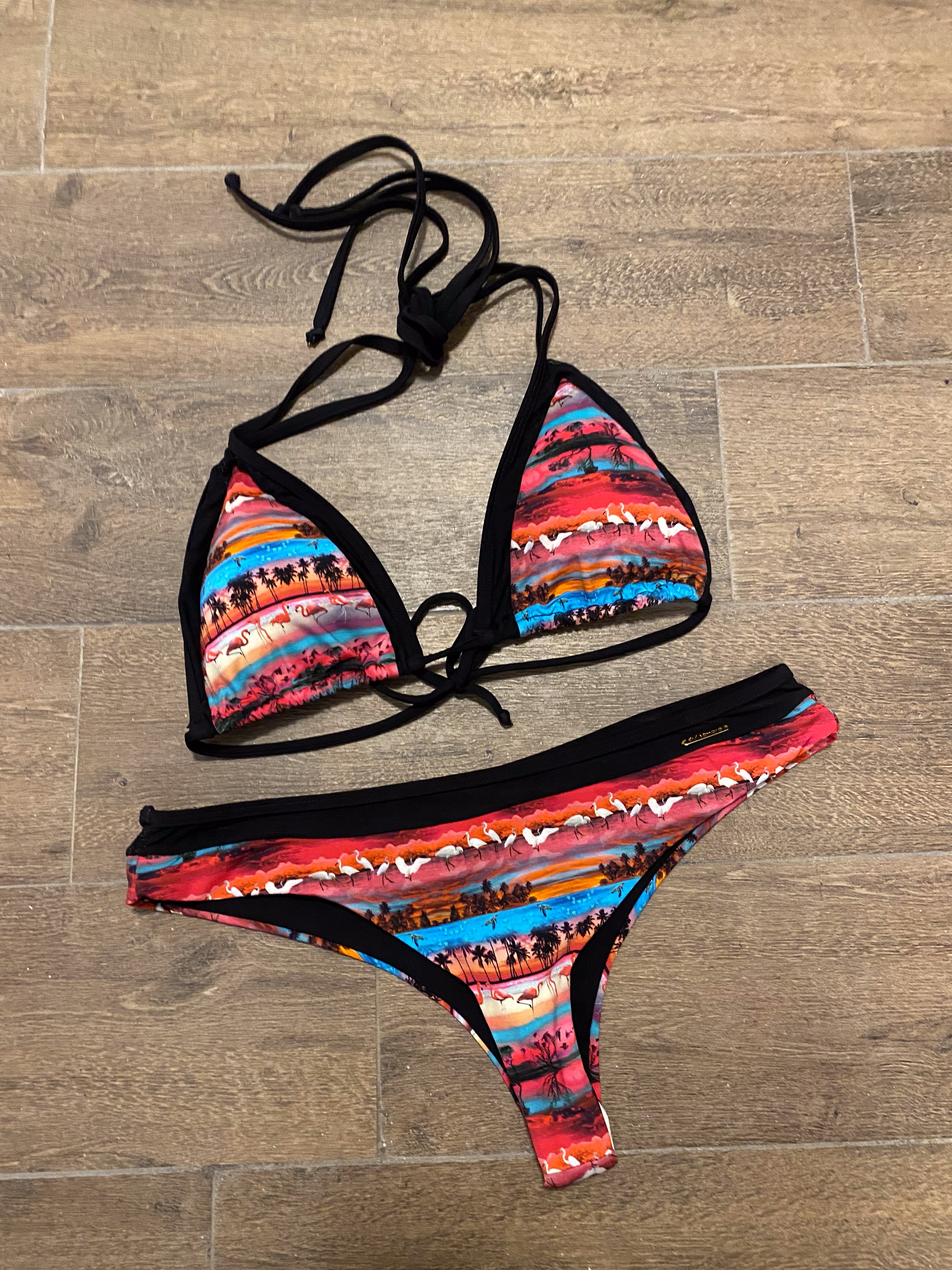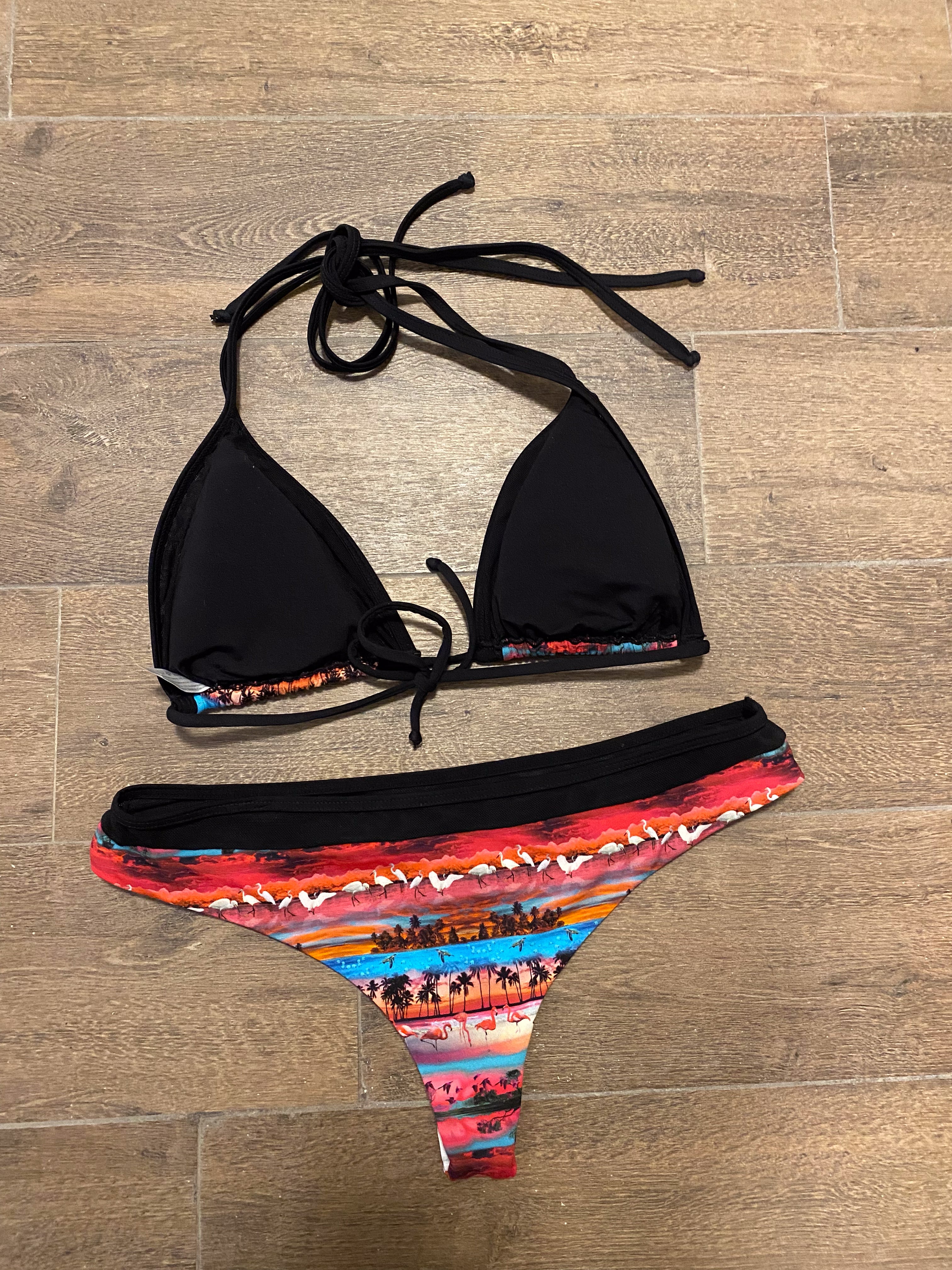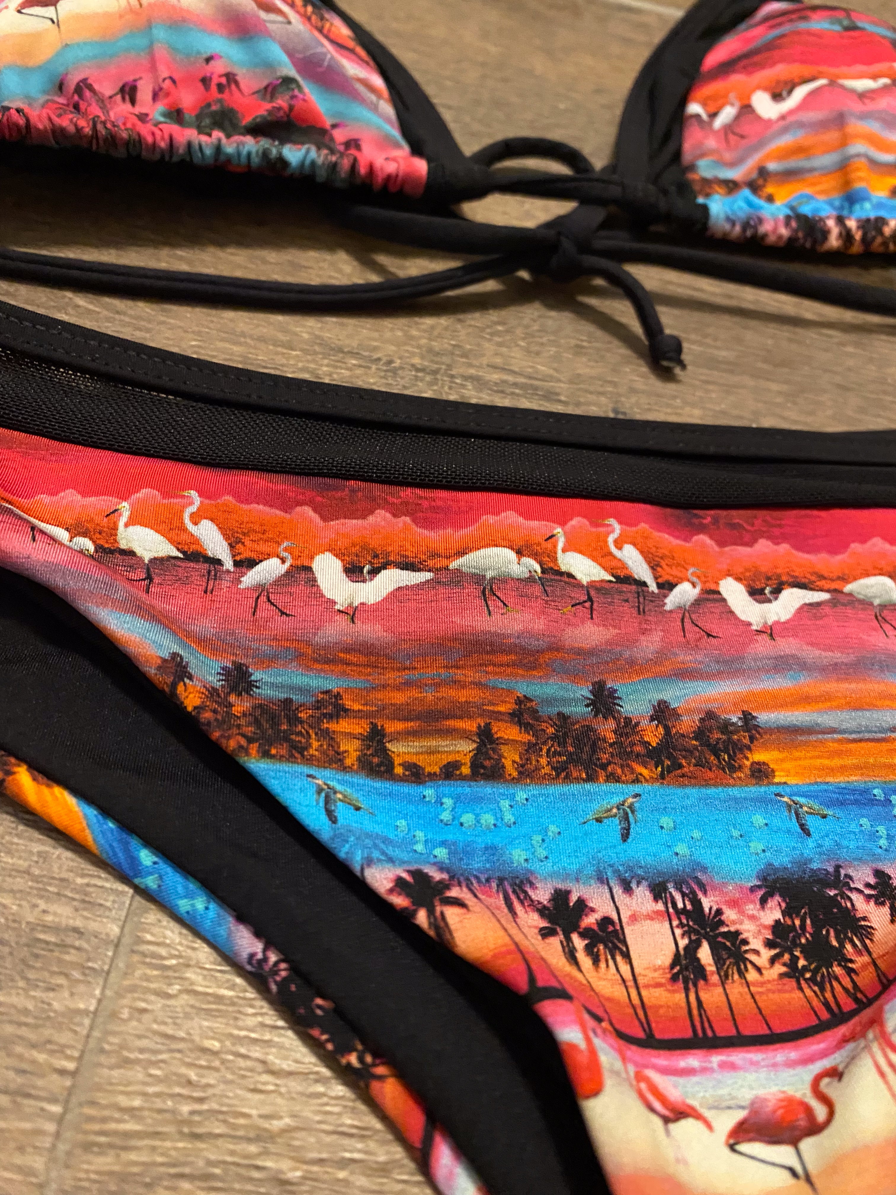 Swimwear set Colombiano - Top y bottom con estampado de flamingos y aves.
