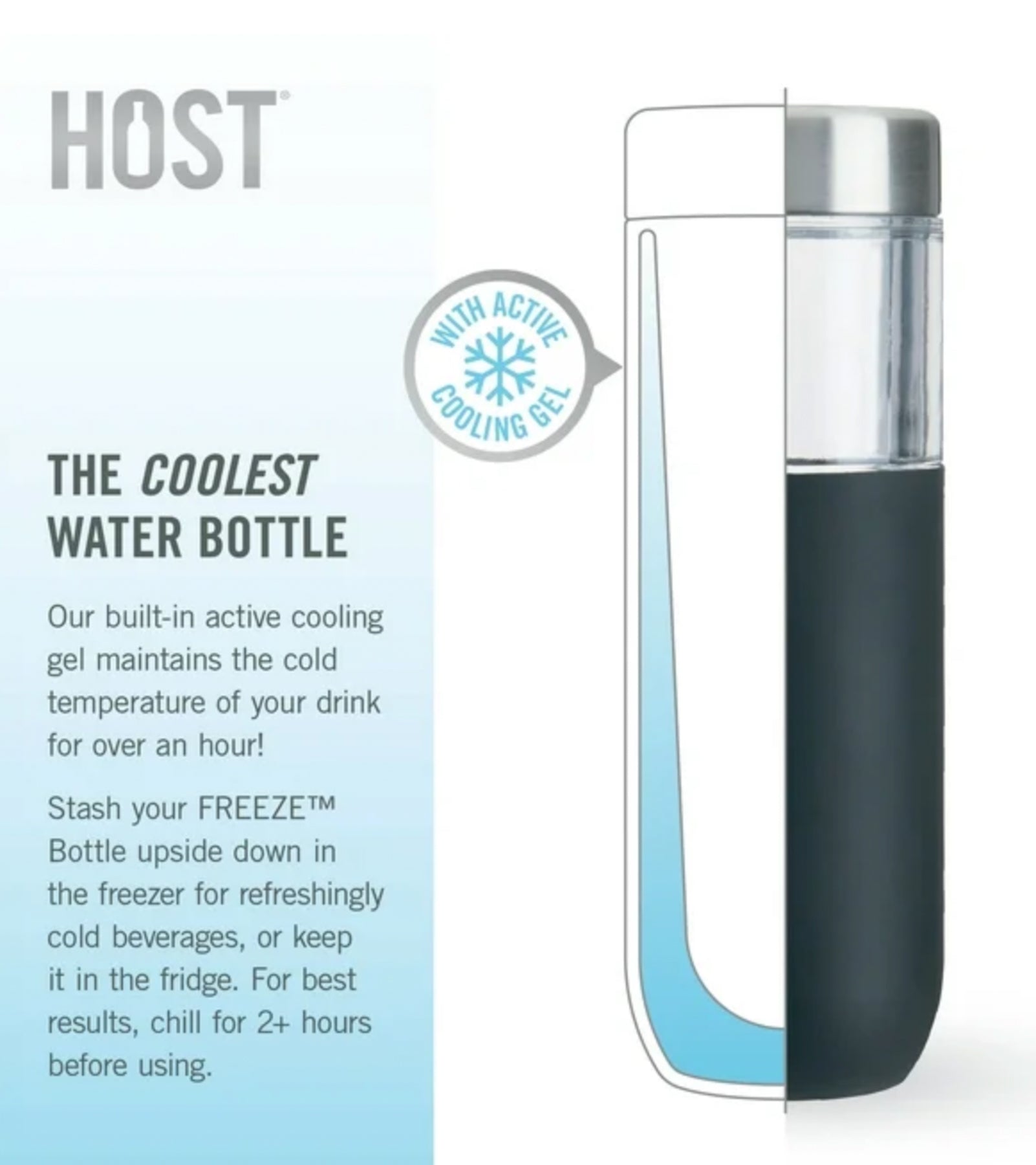 Staying hydrated has never been so refreshing. The HOST FREEZE Bottle is designed to keep any beverage deliciously chilled for hours so you can enjoy ice cold drinks wherever you go. The double walled plastic tumbler includes built-in active cooling gel that chills room temperature drinks down quickly or keeps cold liquid frosty and chilled.