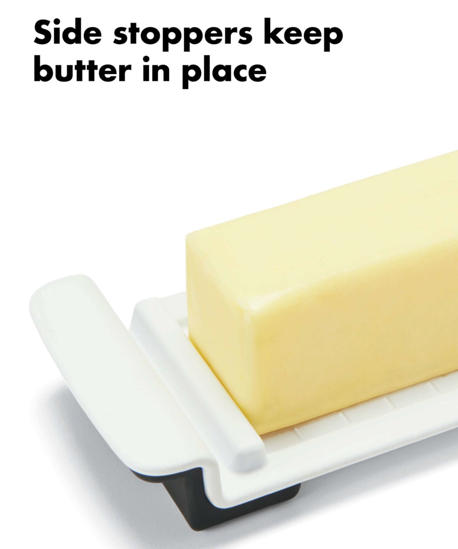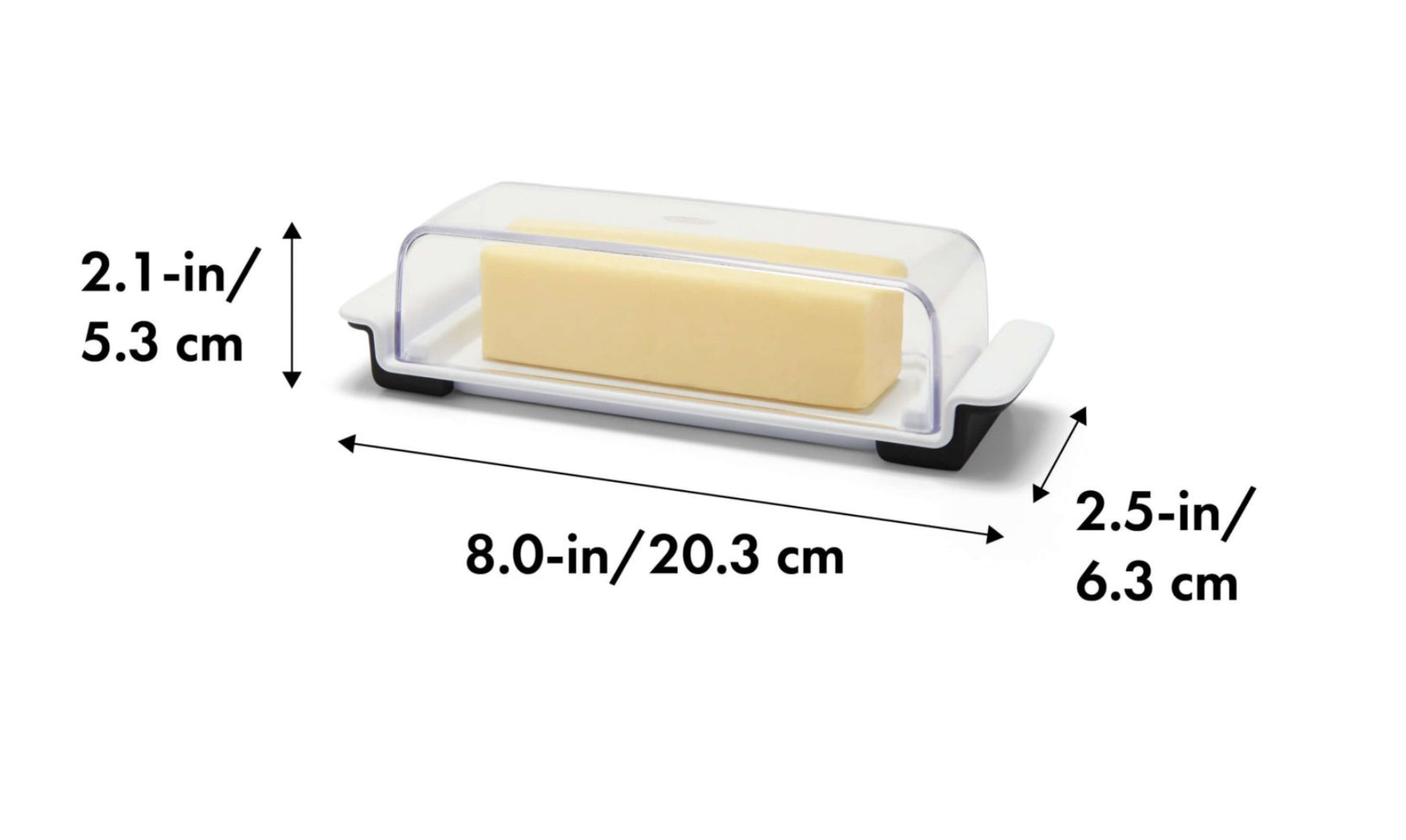 Our Wide Butter Dish is perfectly sized to hold European-style butter, 8 oz blocks of cream cheese, or two 4 oz sticks of butter. Stoppers keep sticks from sliding around, non-slip feet keep the Dish stable, and the thoughtfully designed lid fits on top of the Dish without falling off.