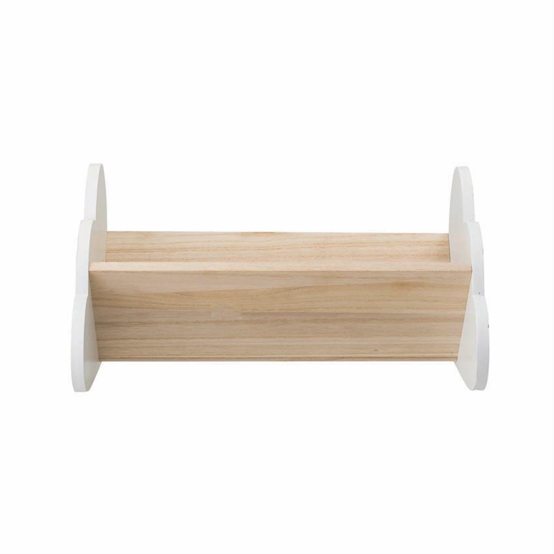 Adorable white cloud shaped ends ideal for your kids toys and books!. This shelf is low enough that your child can grab a book all by themselves! Measures 11.75"L x 10.25"W x 6.25"H.