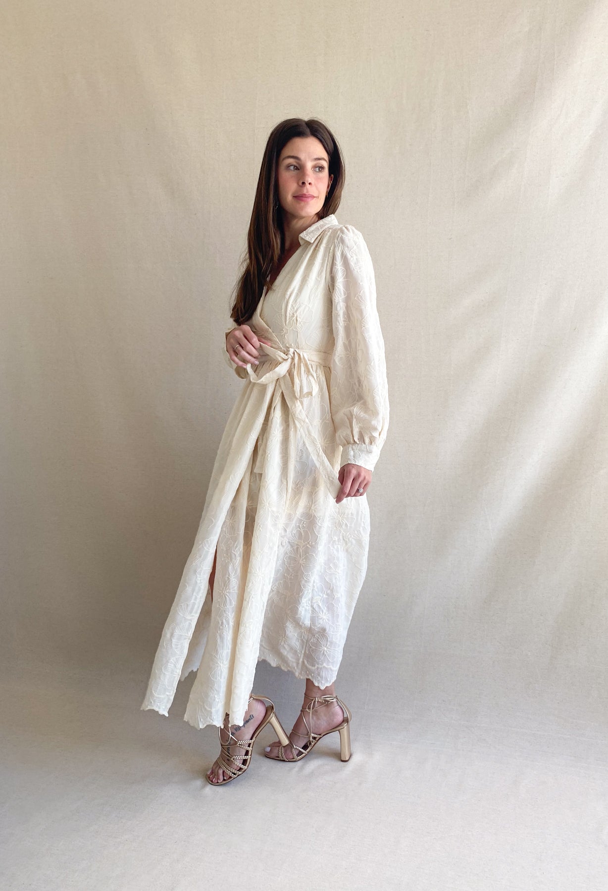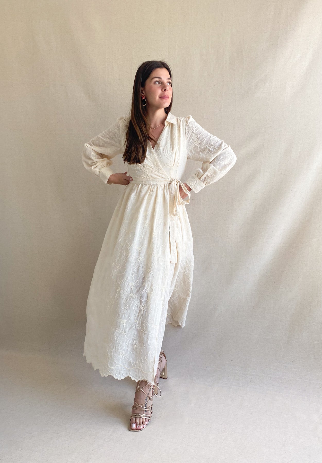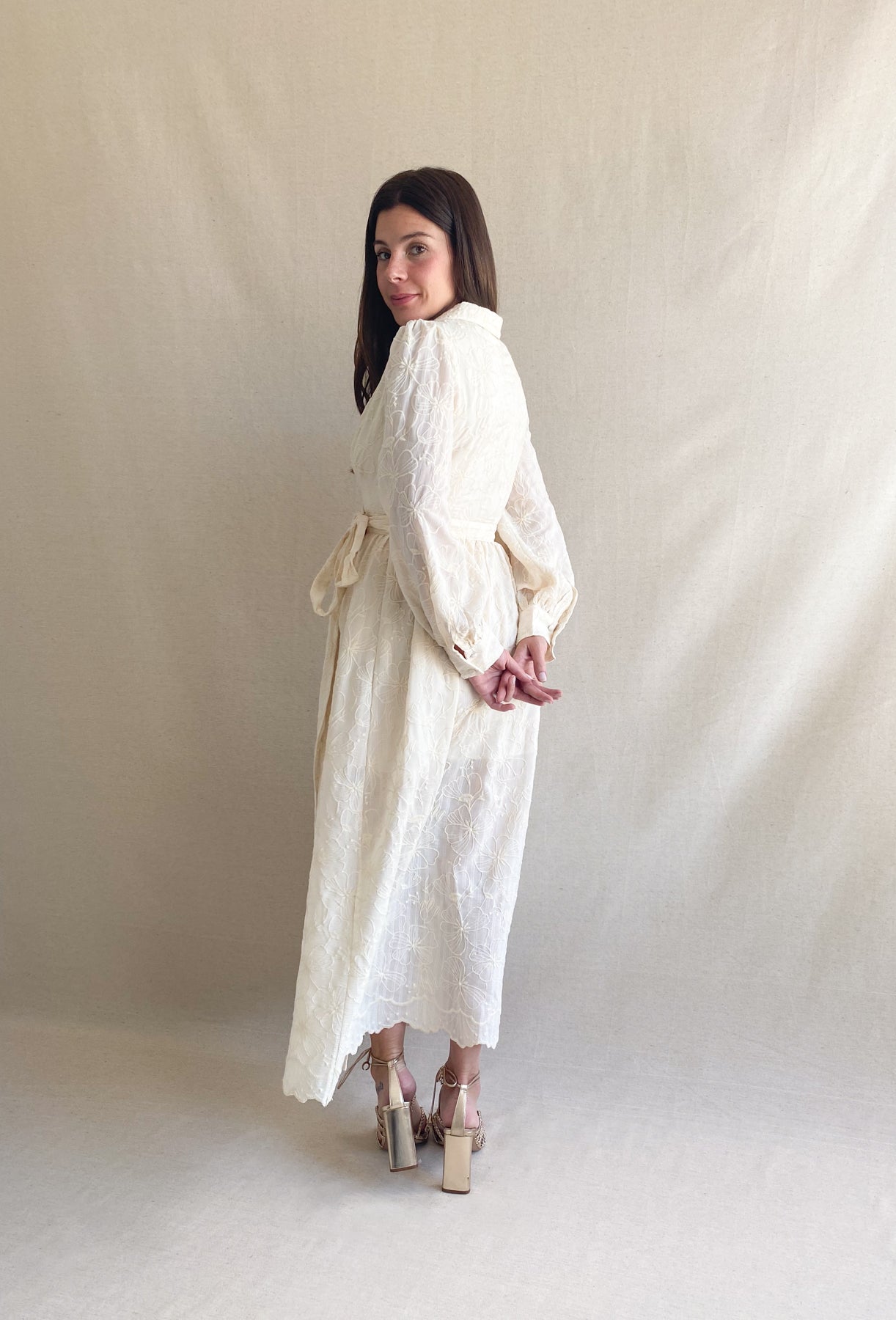Embroidery Midi Dress in Cream tone