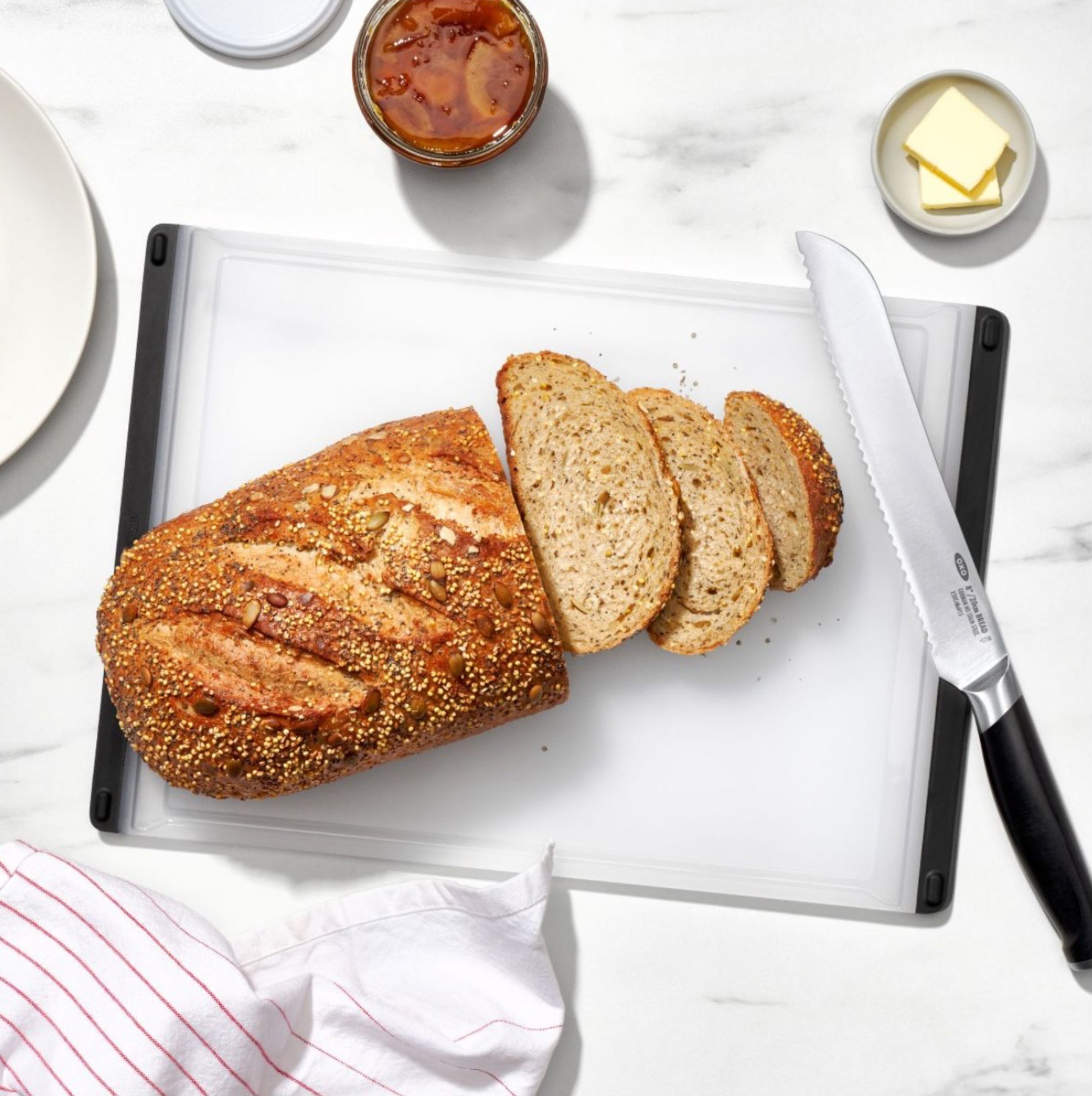 The OXOCutting Boards area a dynamic kitchen MUST-HAVE, ideal for everyday meal prep. Non-porous surfaces lock out odors for a fresh cutting surface that resists deep scratches and goes easy on your knives. Double-sided boards have a grooved side for meat and a solid side for produce. Soft, tapered edges double as a comfortable handle, while non-slip feet keep the board in place as you slice. The smaller Prep Board is perfect for trimming vegetables, while the Everyday Board is ideal for making meals. Choose the size you need! All are dishwasher safe.