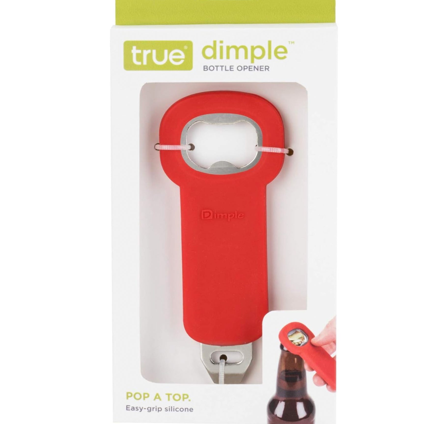 Smile! This is one of the easiest bottle openers you’ll ever use. Its durable steel body offers plenty of leverage and the colored rubber-grip handle fits comfortably in your palm without slipping. Works on bottles and cans alike.