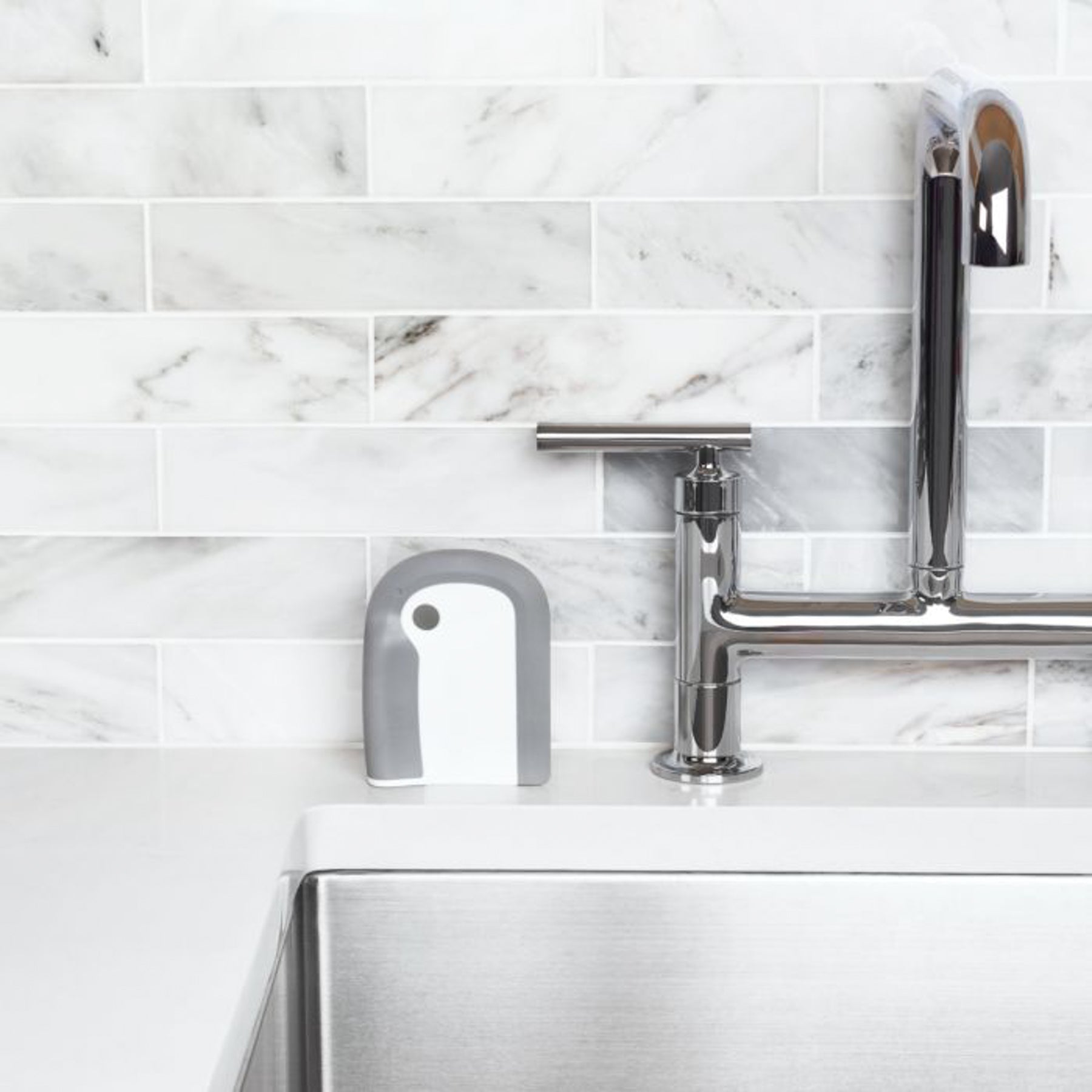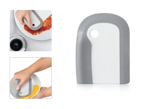 Save time and water by giving your dirty dishes a swipe before washing with the Dish Squeegee. The flexible silicone and the combination of flat and curved edges makes clearing leftover food from plates and bowls a breeze. Shaped for control and featuring a non-slip, comfortable grip, it’s also great for pushing scraps into sink drains, or squeegeeing wet countertops and sinks. Store standing up or by its convenient hanging hole to make washing dishes less of a chore.