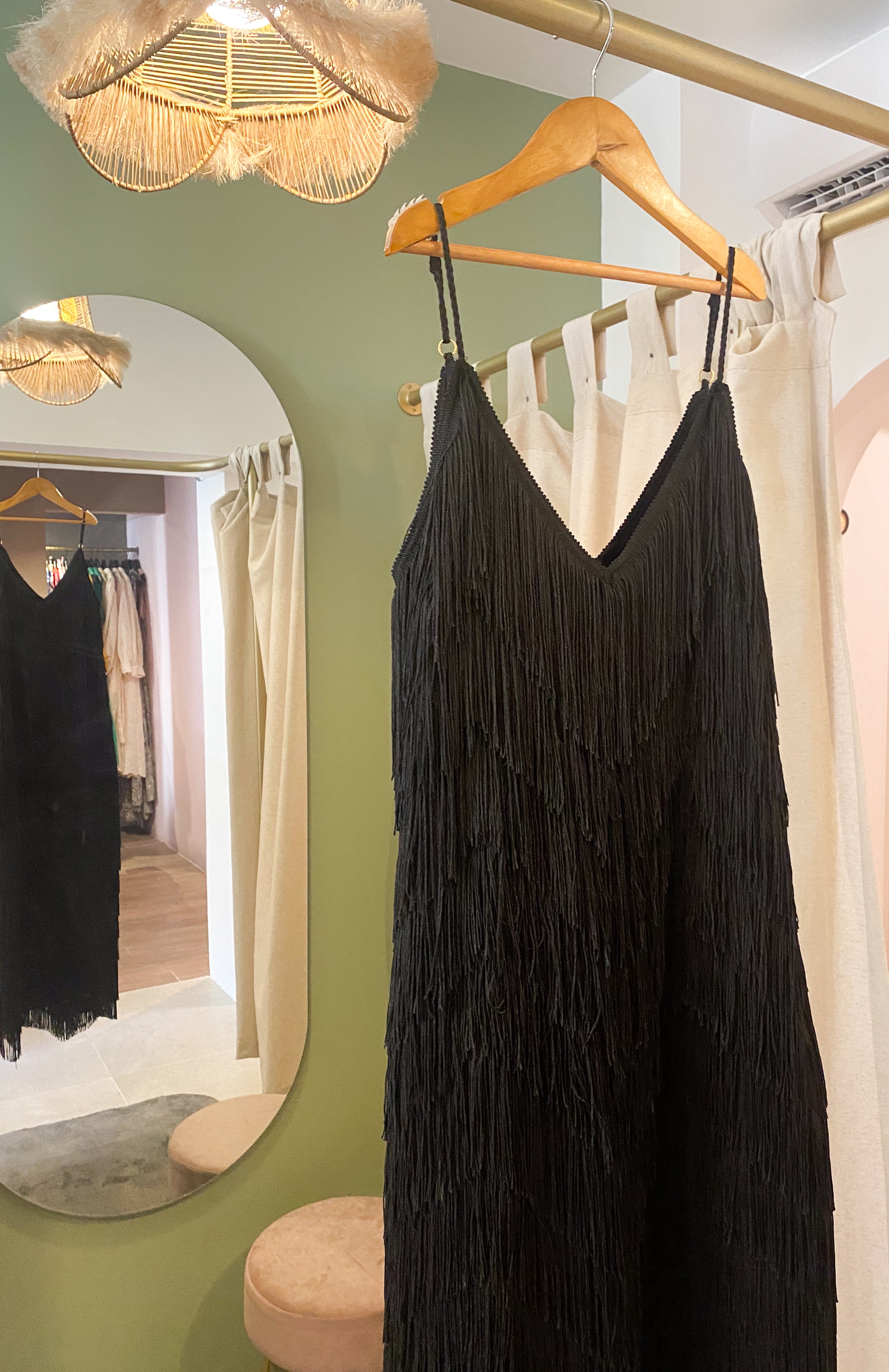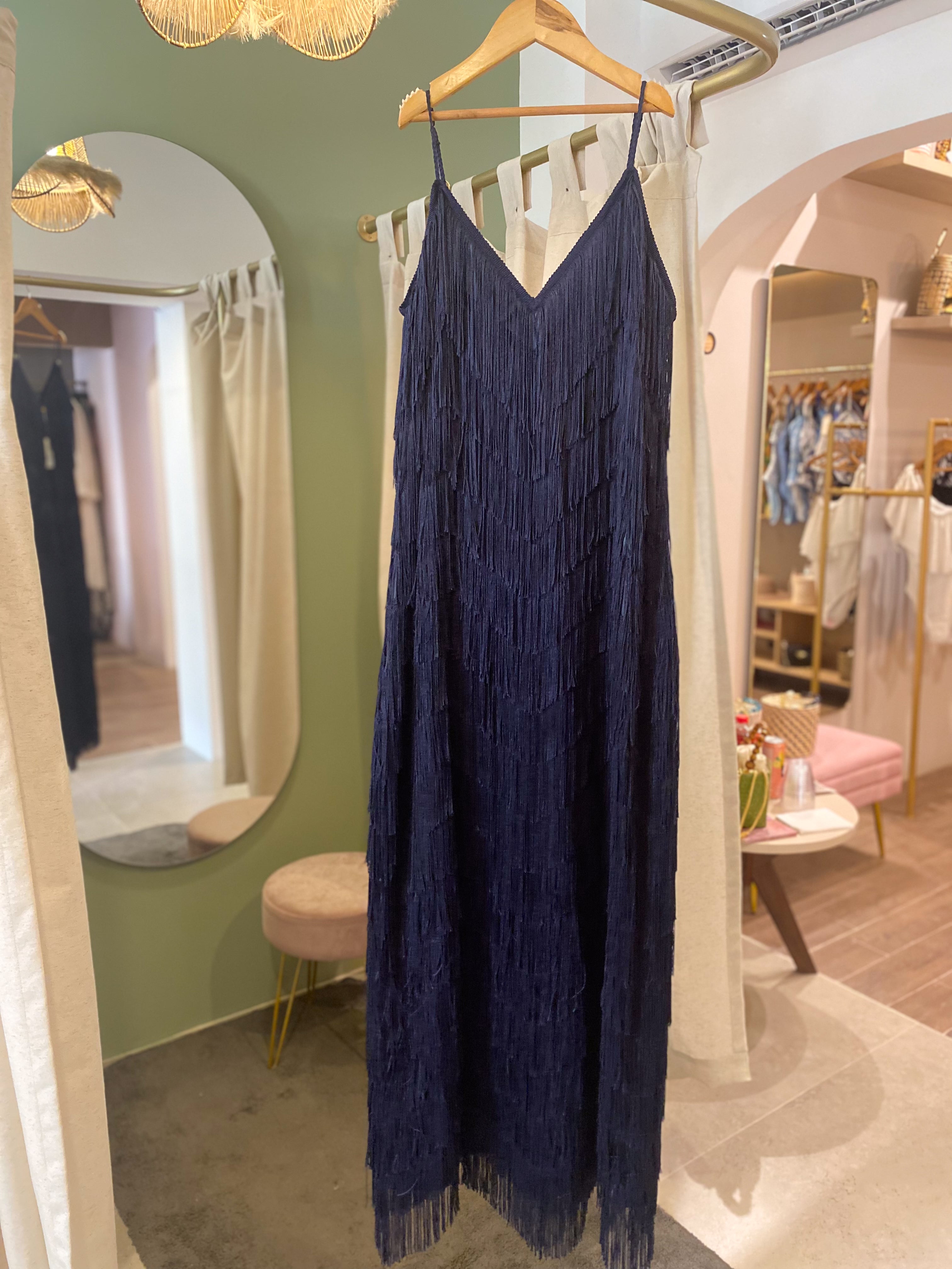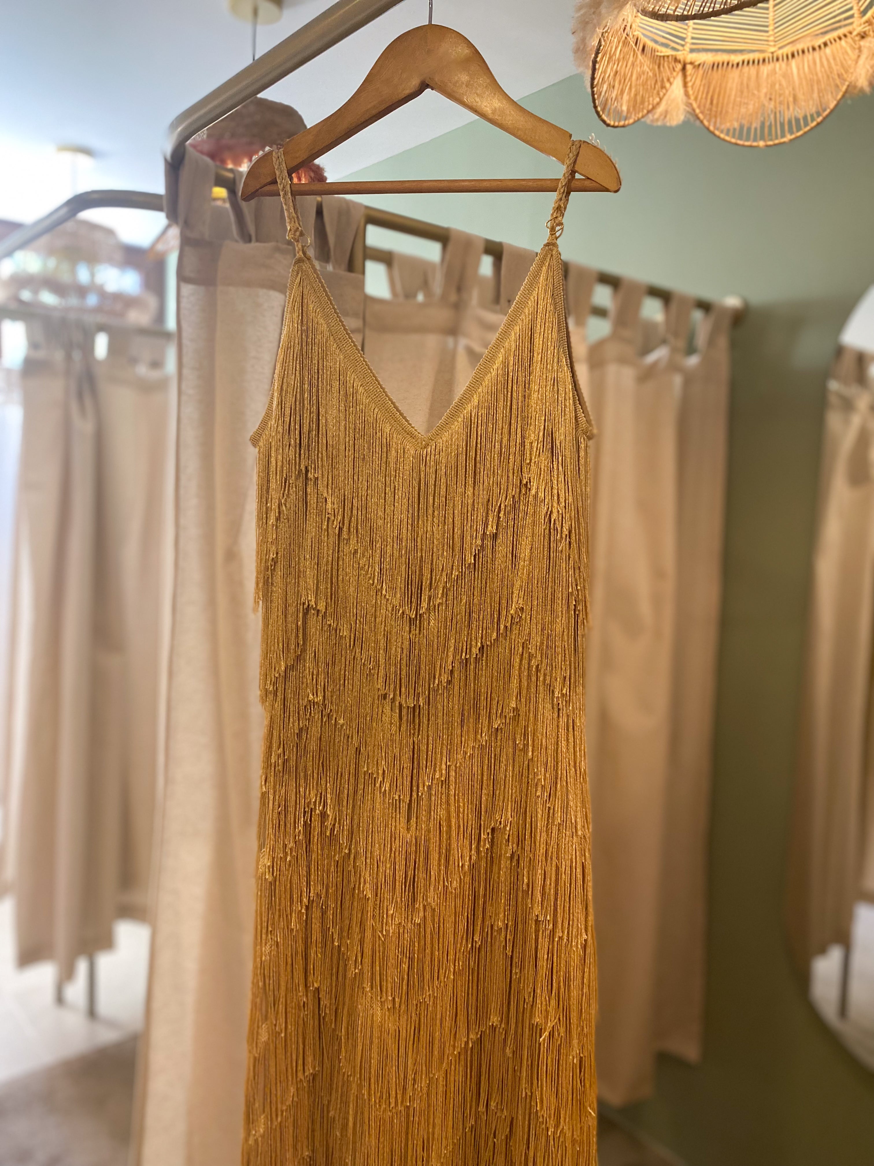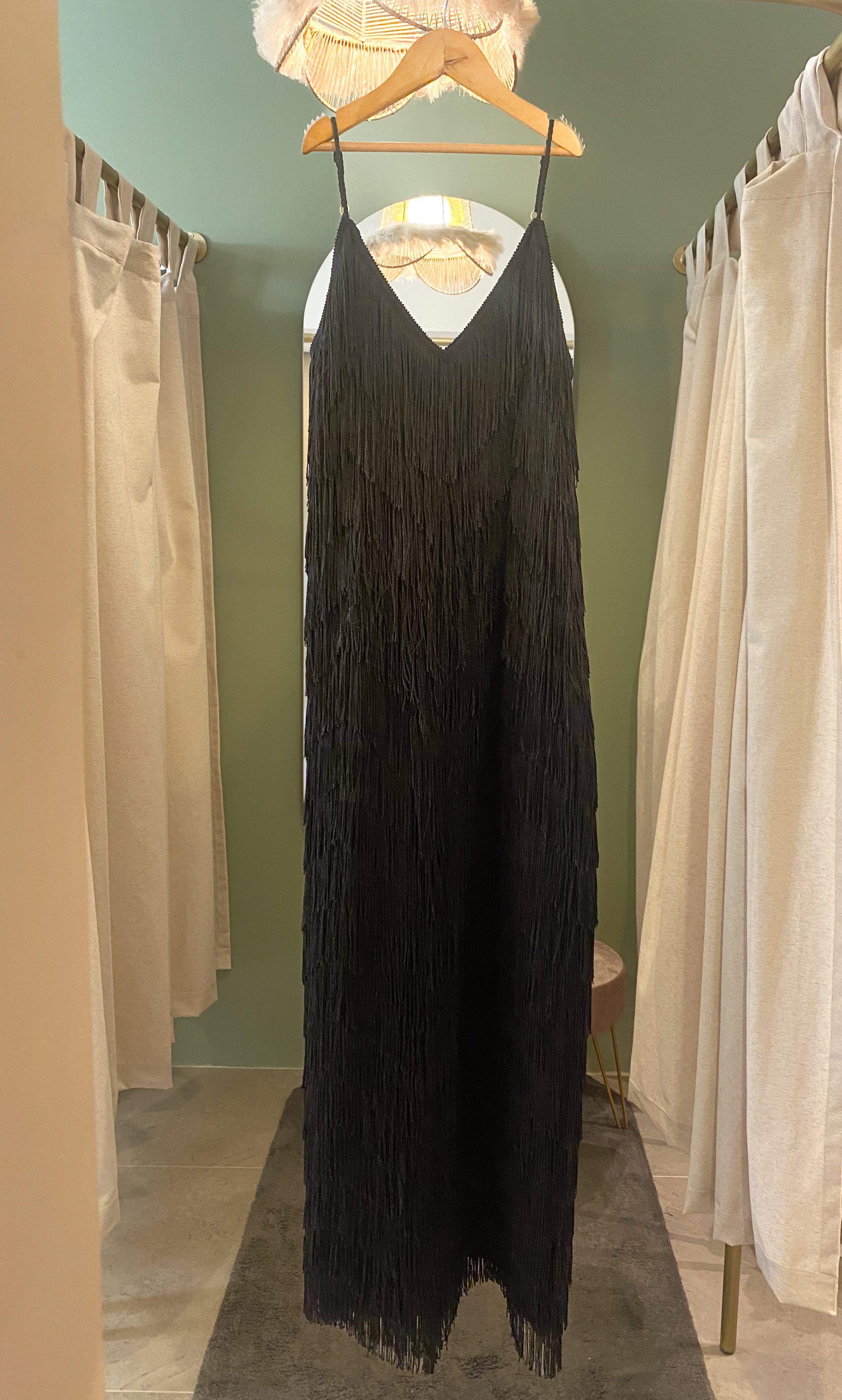 Te presentamos un vestido a medida de 125 cm, con una silueta semi-ajustada que combina comodidad y estilo. Su escote en V es halagador para todo tipo de figuras,disponiendo de una apariencia más estilizada junto con nuestros trenzados hechos de manera artesanal. Este vestido está confeccionado con un tejido suave al tacto y propiedades de elongación. Además, está complementado con hilos que aportan un toque luminoso y deslumbrante. Una elección perfecta para diversas ocasiones y para acaparar todas las miradas.