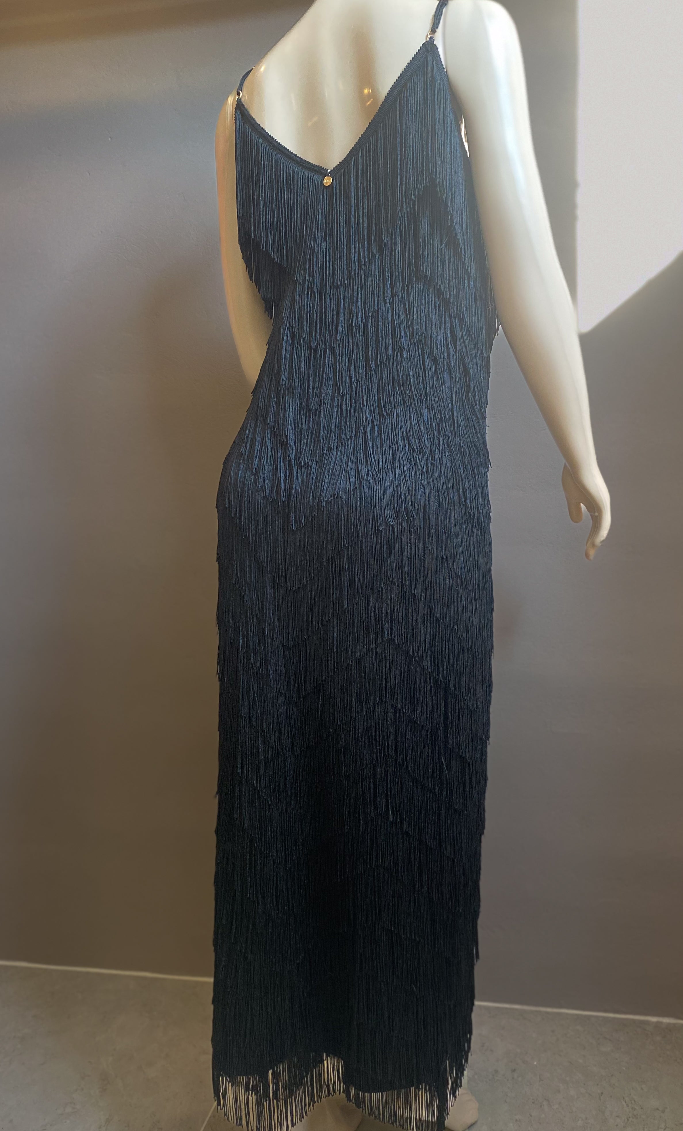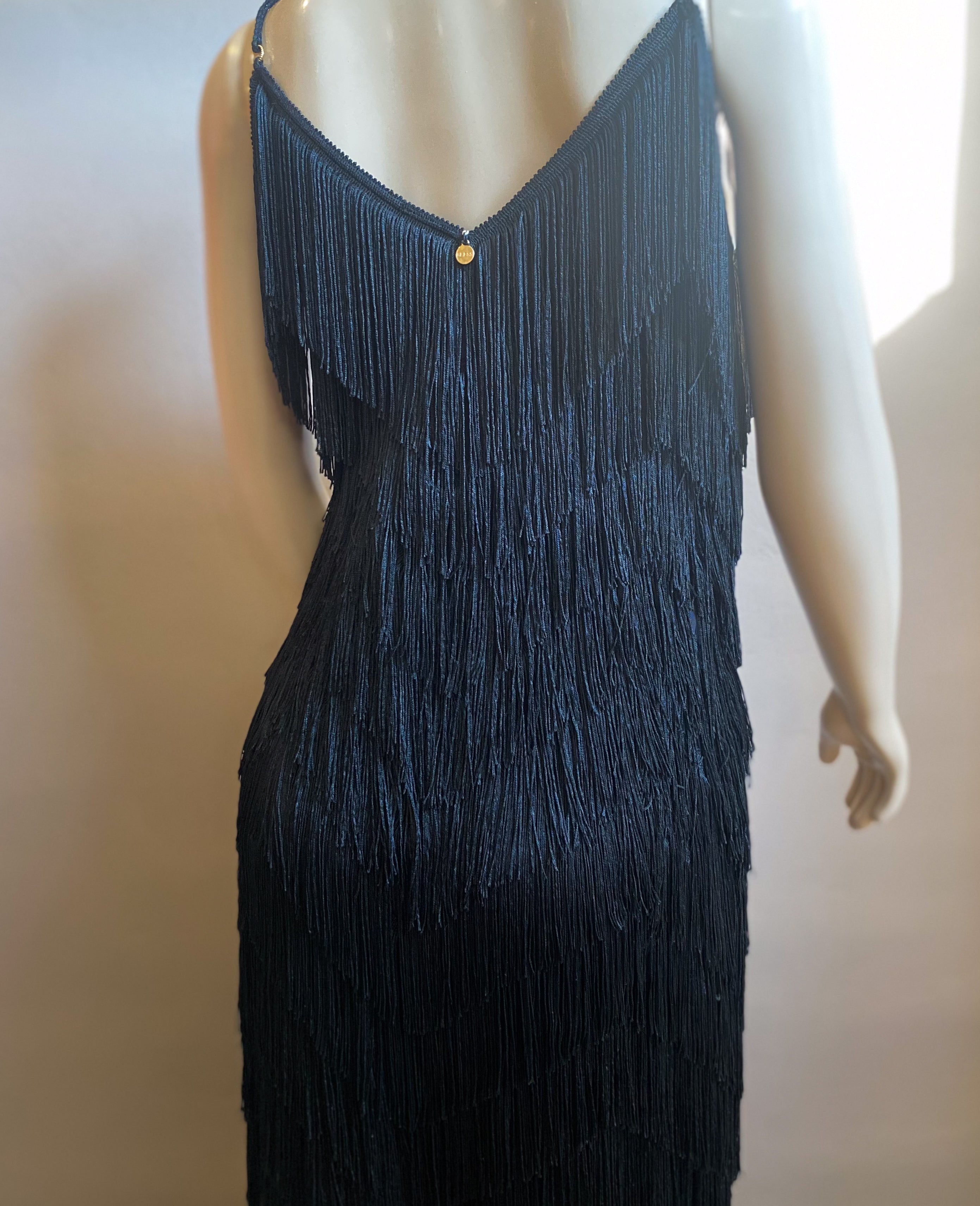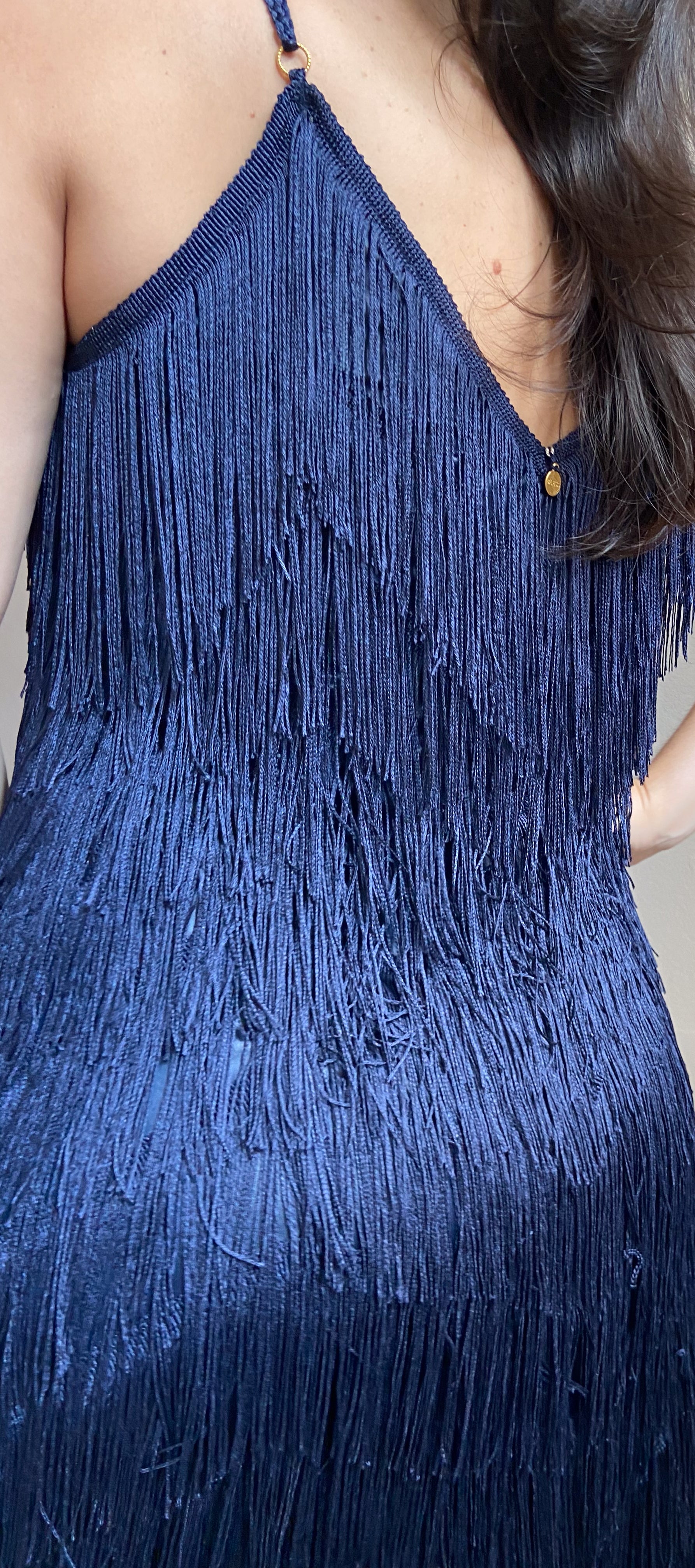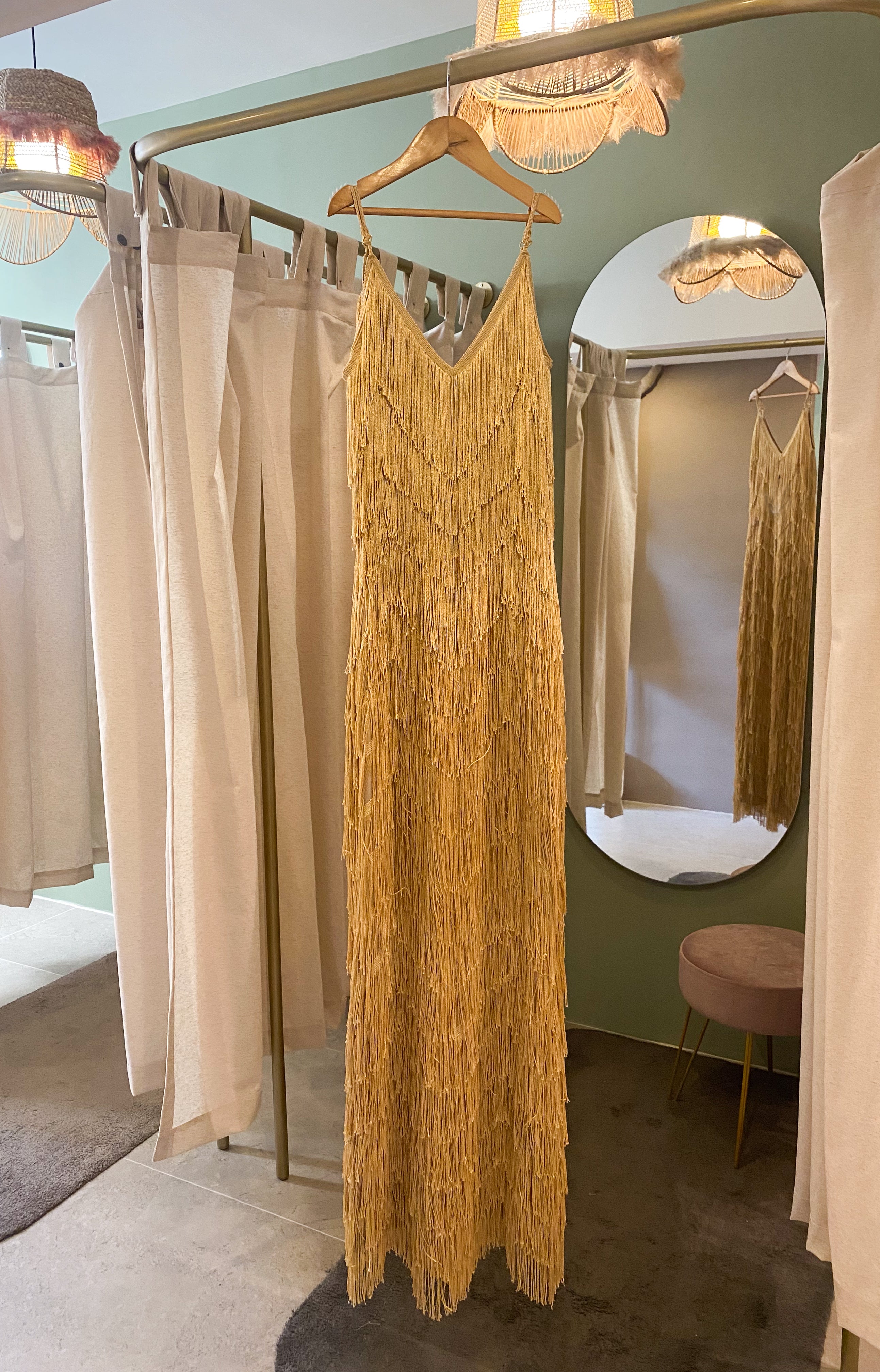 Te presentamos un vestido a medida de 125 cm, con una silueta semi-ajustada que combina comodidad y estilo. Su escote en V es halagador para todo tipo de figuras,disponiendo de una apariencia más estilizada junto con nuestros trenzados hechos de manera artesanal. Este vestido está confeccionado con un tejido suave al tacto y propiedades de elongación. Además, está complementado con hilos que aportan un toque luminoso y deslumbrante. Una elección perfecta para diversas ocasiones y para acaparar todas las miradas.