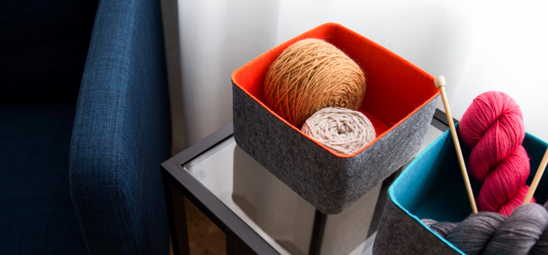 Store and organize sewing supplies, socks, tees, stuffed animals and other soft goods with these bright two-tone felt-like-it! bins. Nestle them in drawers or put them on display to show off their bright side. Great for color coding your collections!