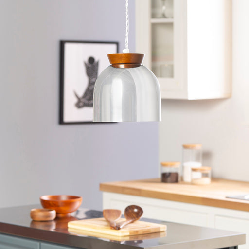 Acabado de metal pulido con Decor de madera. Elaborada a mano! Puede tener pequenas variaciones comparado a la foto! Lampara bastante industrial!
