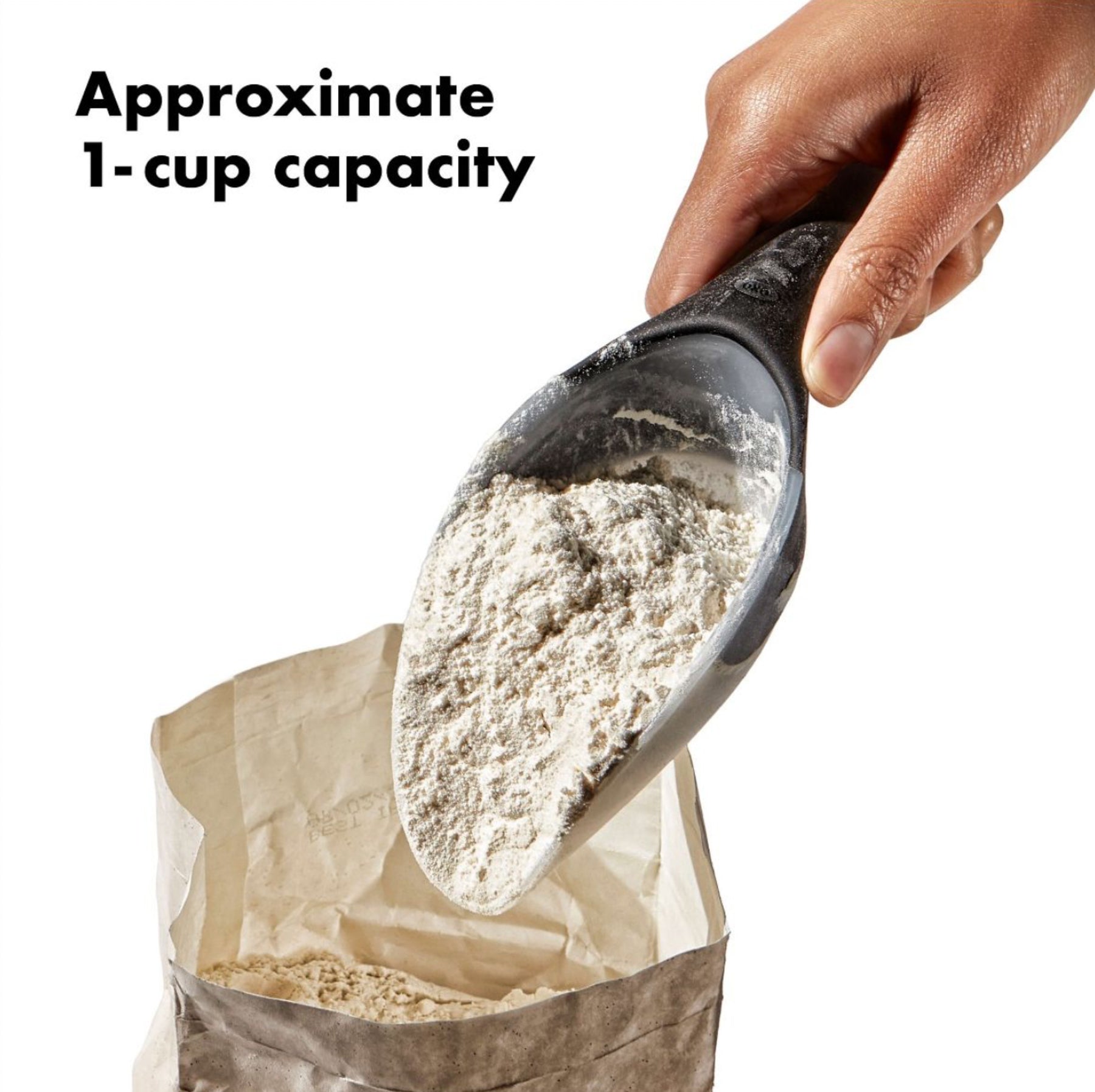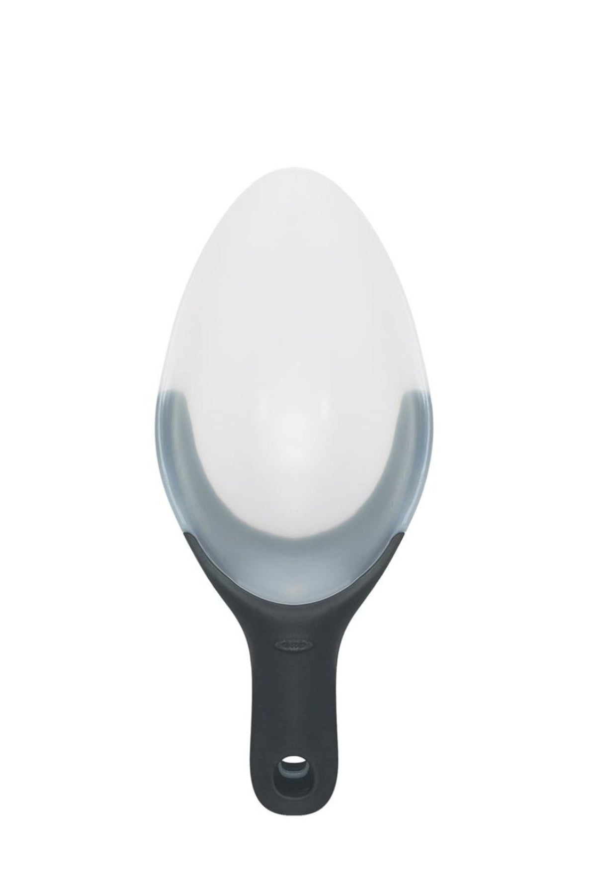 Our handy Scoop is perfect for transporting everything from ice to flour, cereal and more. The compact head fits easily into all sorts of canisters and bins. Flexible for easy funneling into smaller containers. Stays comfortable to the touch even after sitting in the freezer.