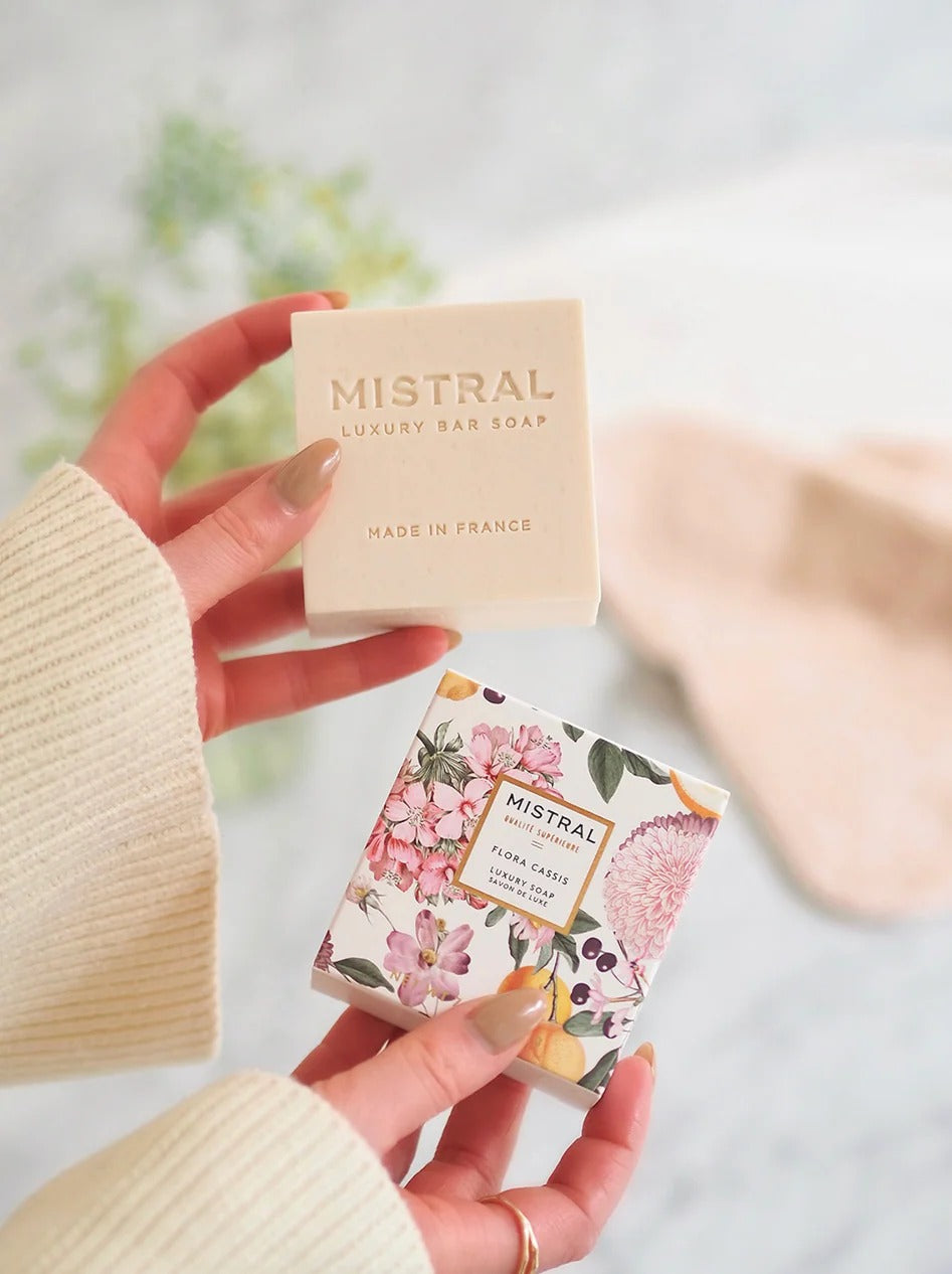 FLORA CASSIS 200g BAR SOAP LUXE WOMAN An expertly milled soap as only the French can do, beautifully packaged and giftable, as rich and refined as its fragrance.