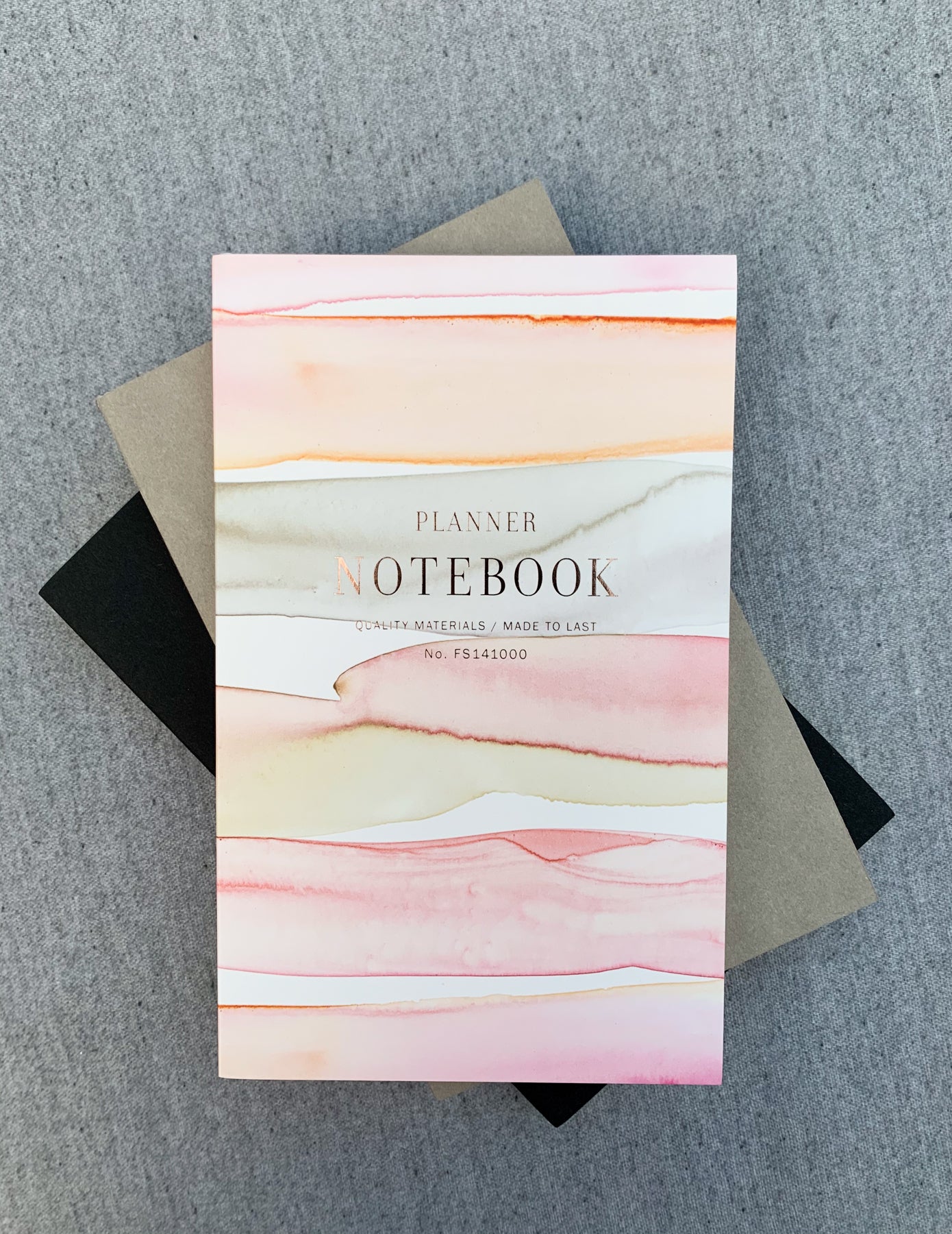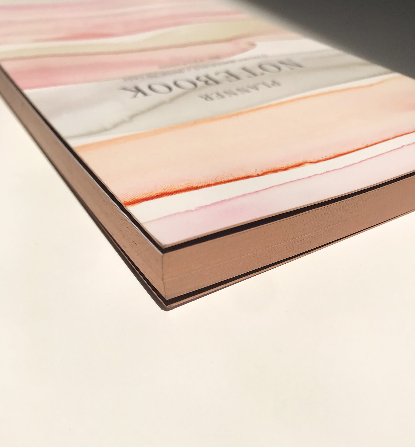 Paper Cover Notebooks with a beautiful metalic look to its sides! Includes Planning pages that are undated, for easier use! These notebooks measure 13cm wide x 20.5m high.