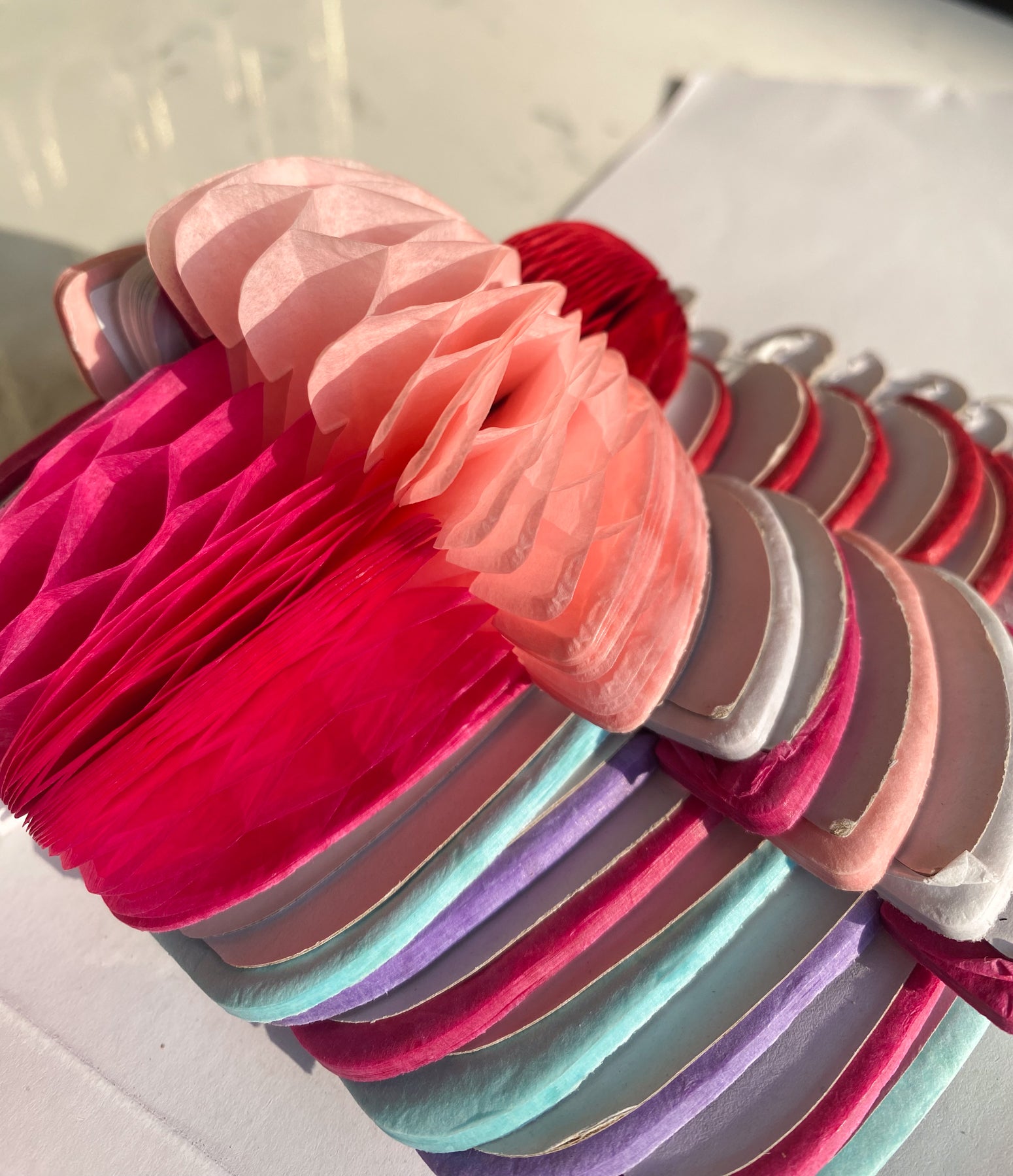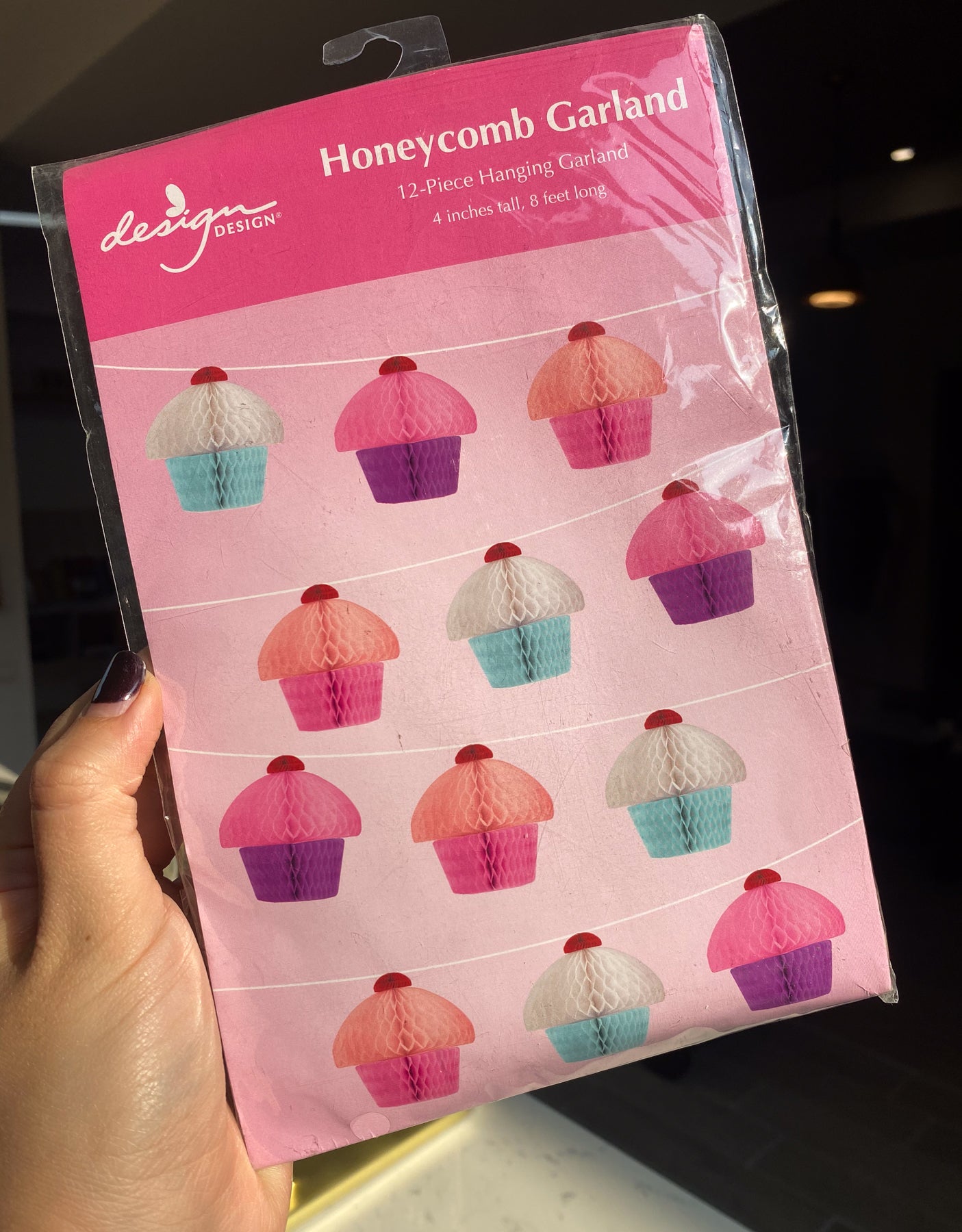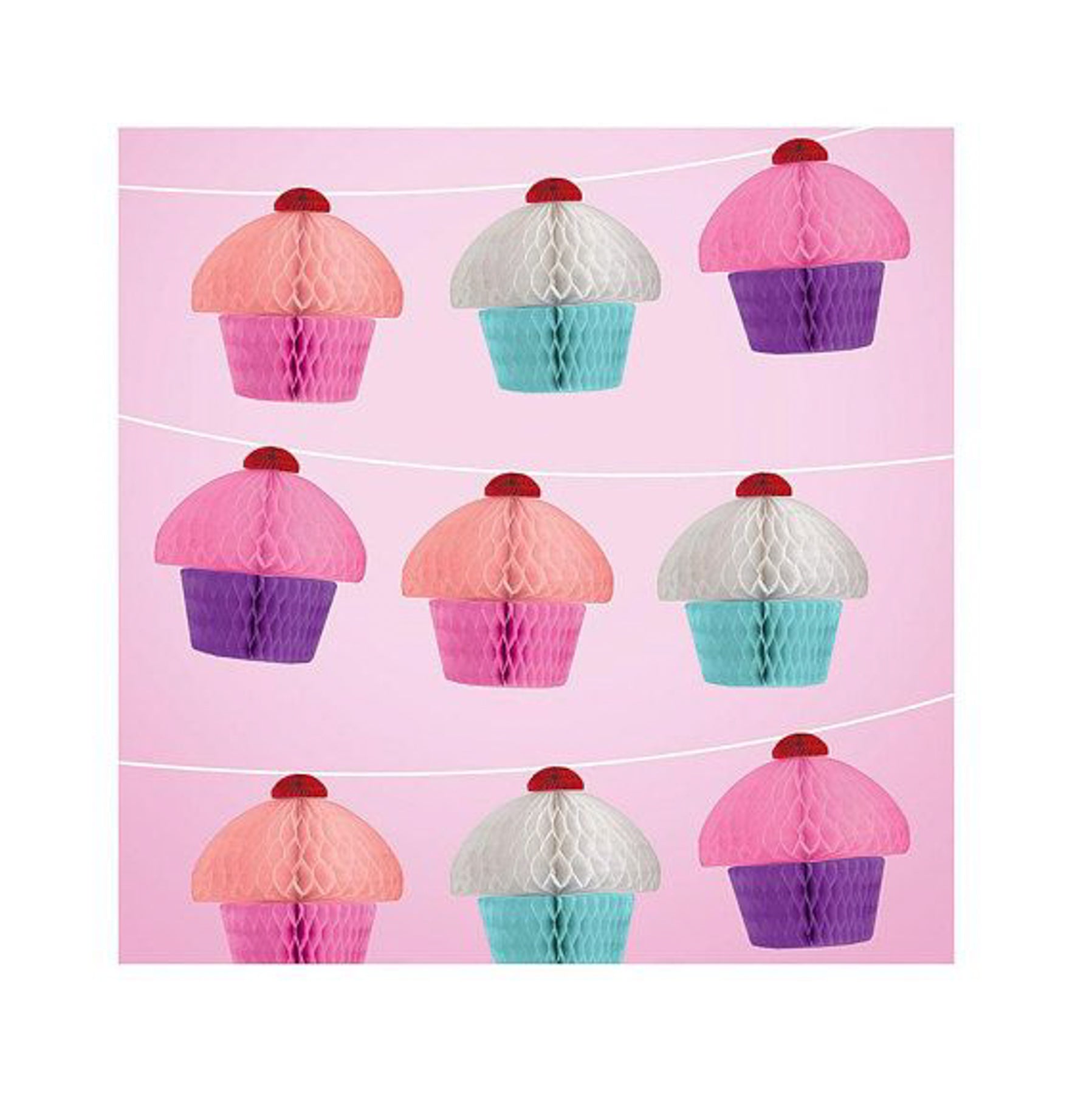 12 piece Garland that measures 10cm tall (cupcake size) and a length of 2.44m.