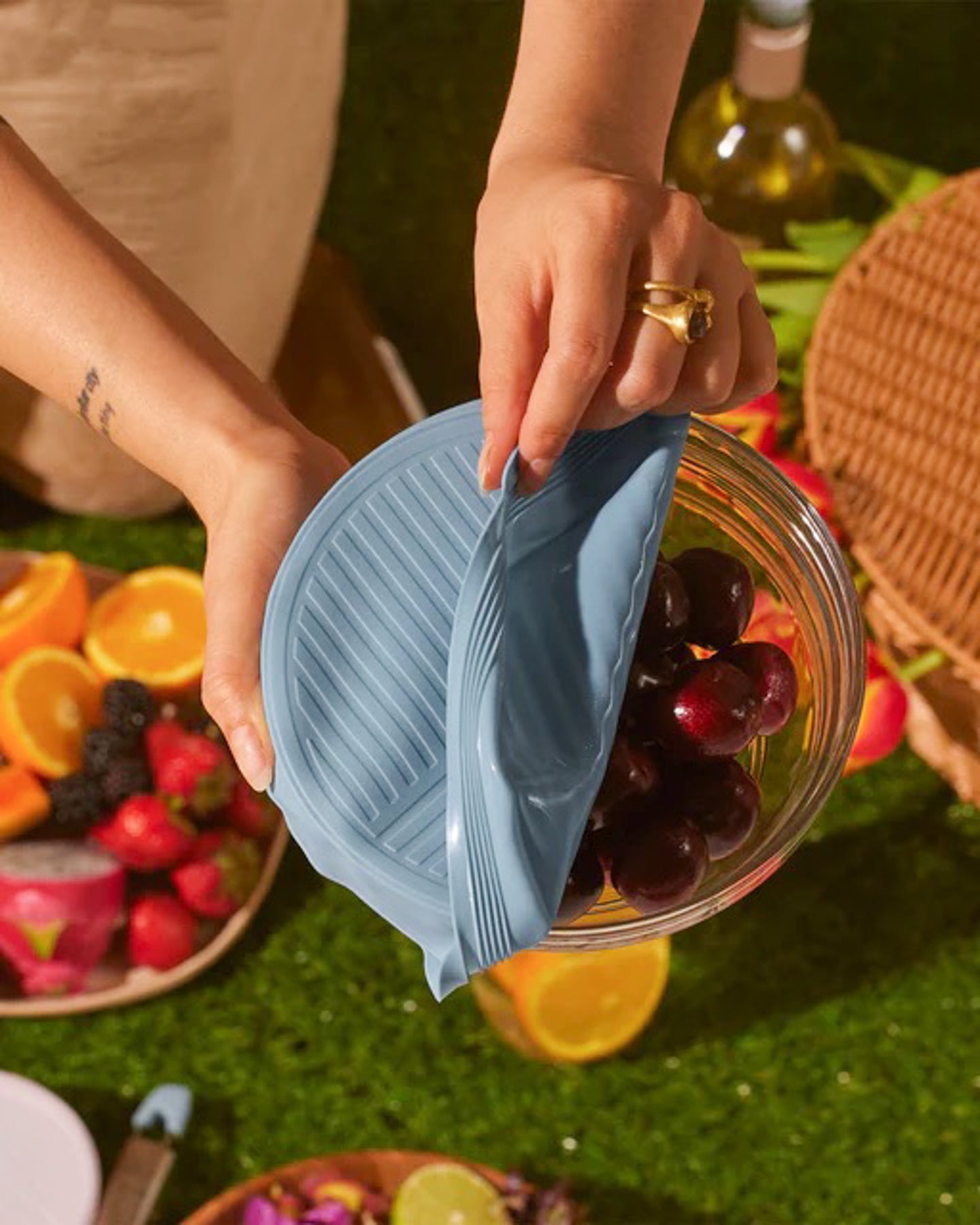 Platinum-Grade Slicone Universal Stretch-Over Lids! These stretch silicone lids fit effortlessly over containers of any shape or size. Theyre microwaveable and freezer safe, and leak-proof too, so you can store in style at home, or keep things safe on the go. Pick your favorite size/pack!