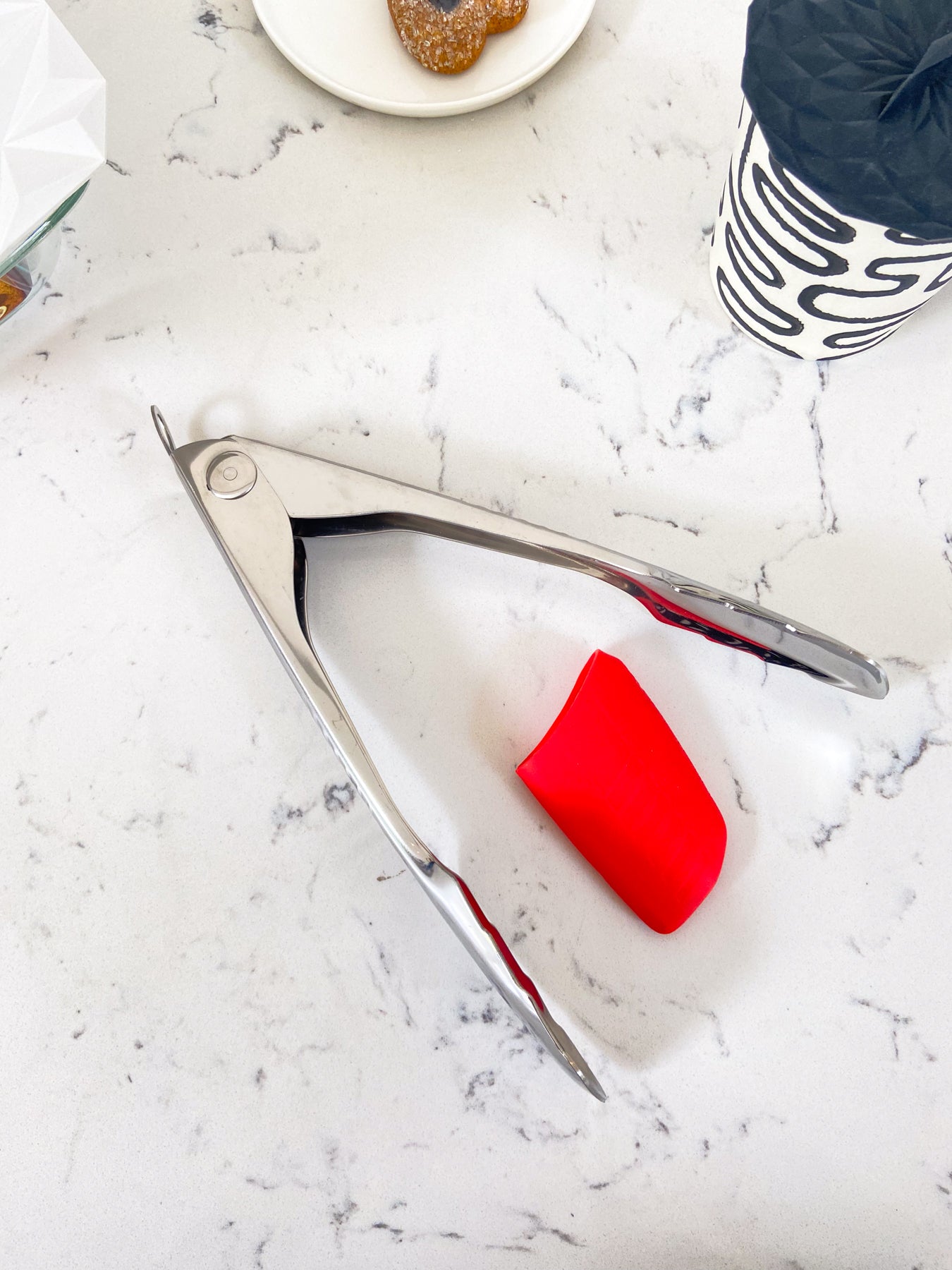 Stainless Steel Tongs with Single Hand Squeeze Lock! 9in Long, perfecto for cooking at home !