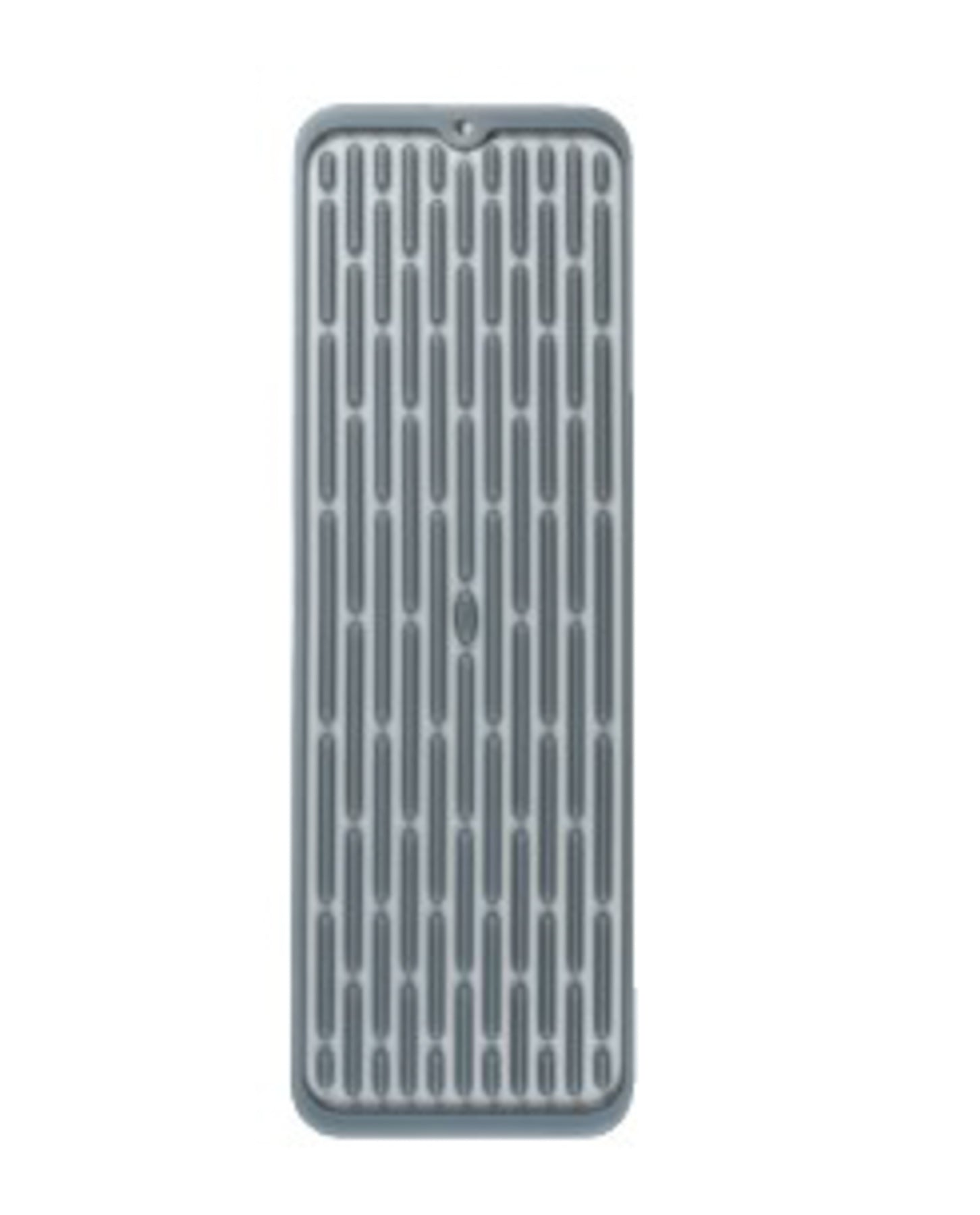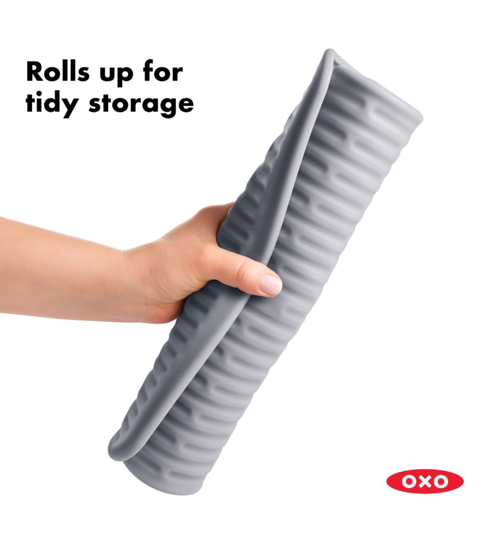 Our Silicone Drying Mats feature a unique rib design that aerates and elevates items, keeping them clean and sanitary. Mat can be rolled up or hung for storage. Heat resistant up to 425°F, so you can use as a trivet. Oblong shape is perfect for wine glasses, vases and knives.