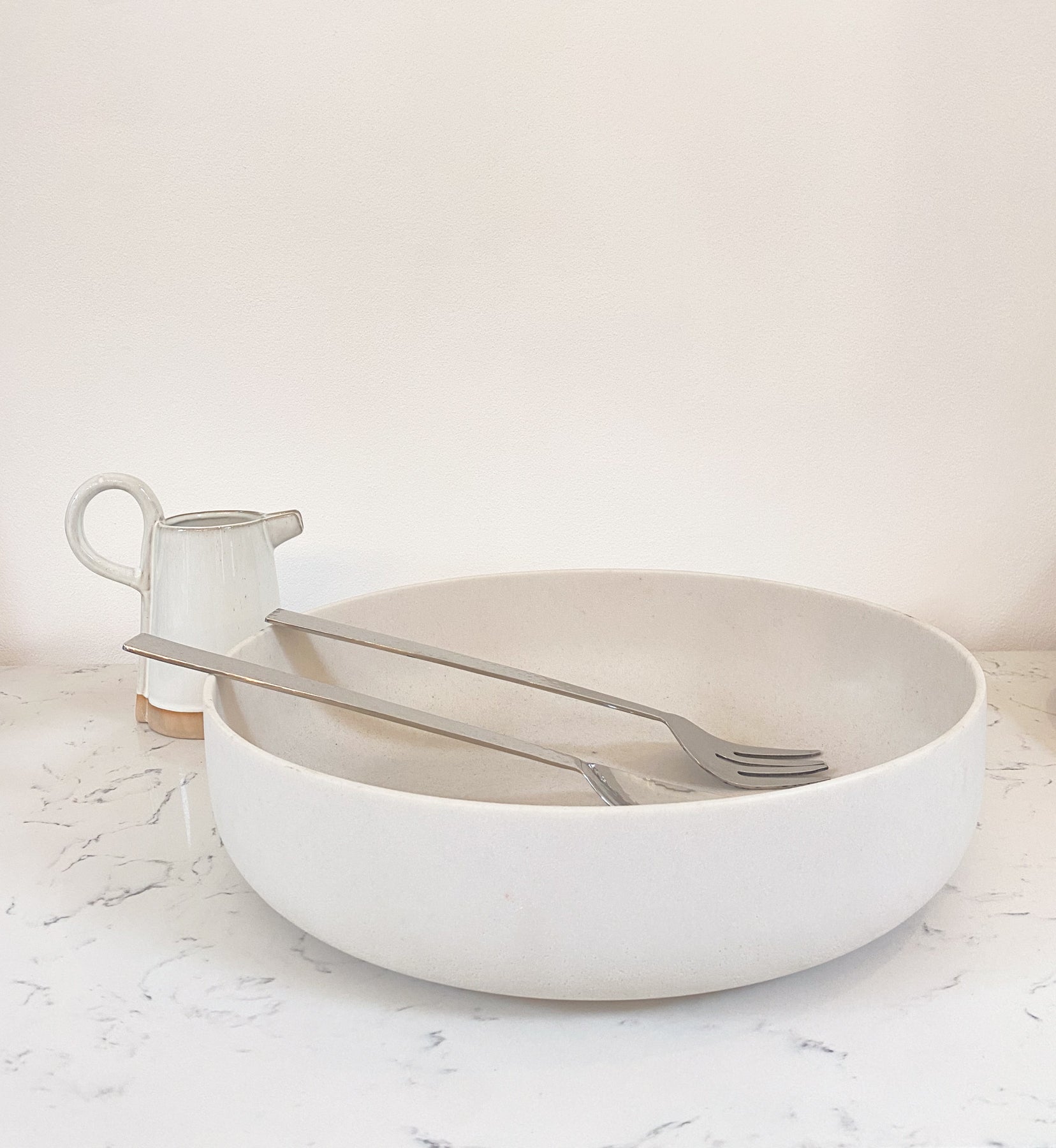 Set of XL Spoom and Fork for serving guests! Measures 33cm long. Hammered Texture in Silver Tone.