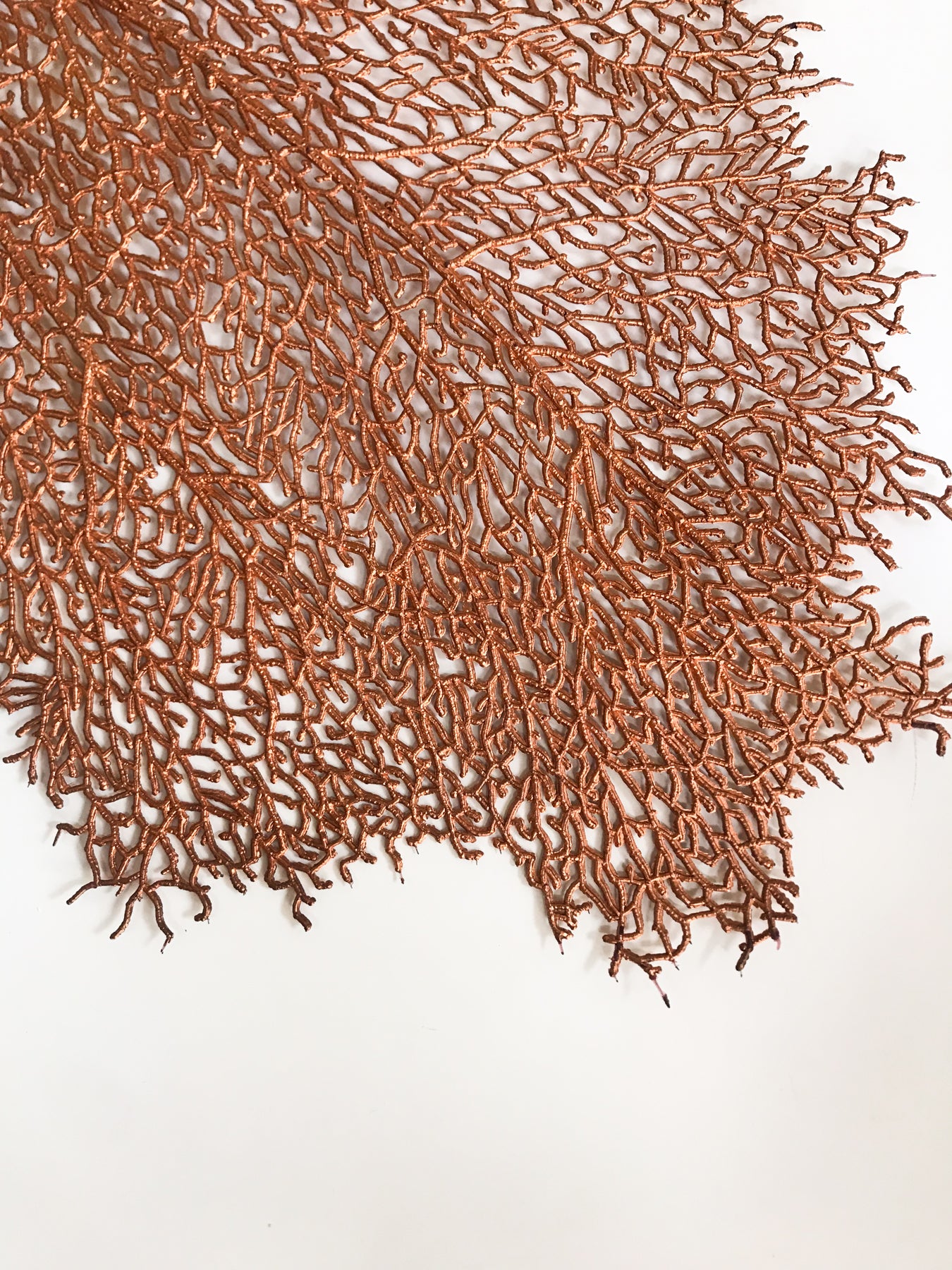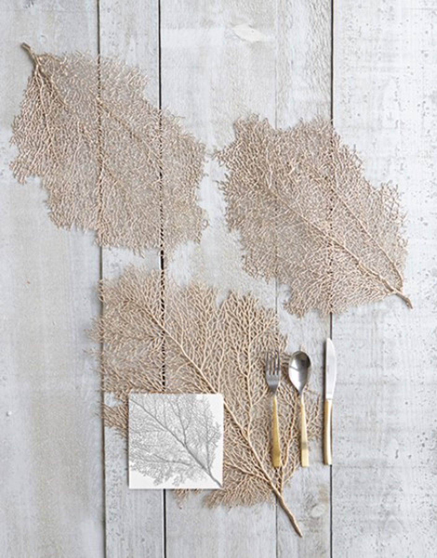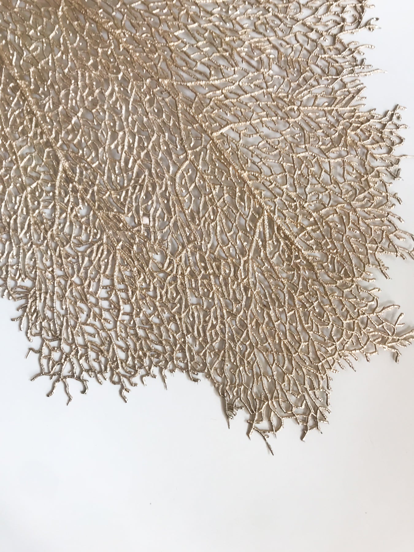 This PVC placemat collection features a delicate leaf detailing. These can also like a coral-inspired piece! The Metallic Collection can be used together to greate a unique table runner. Easy care, simple to clean with a damp cloth!