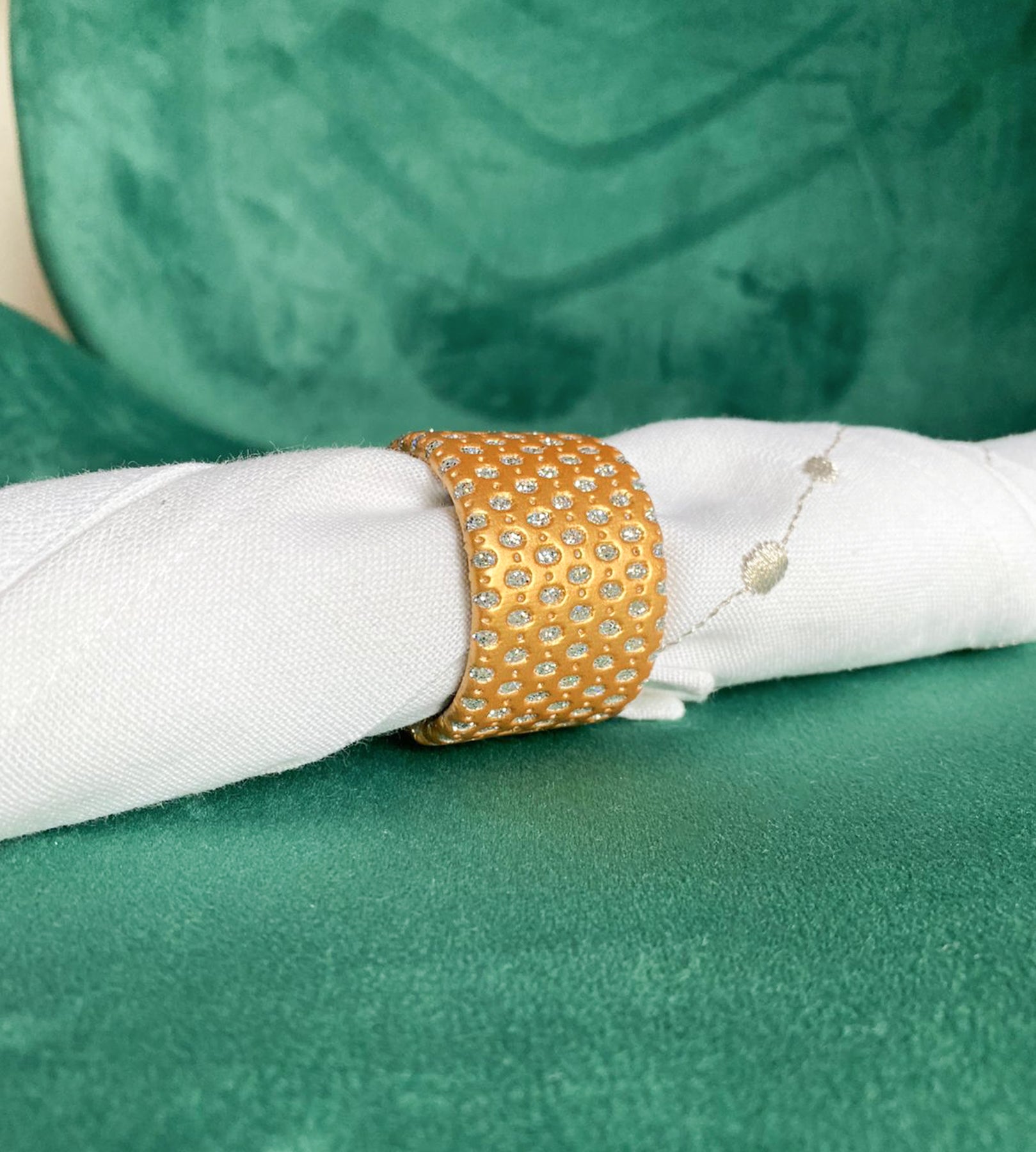 Sturdy and Durable with an elegant brushed finish. This napkin ring will add the perfect finishing touch to your table! Dimensions: 2x2.
