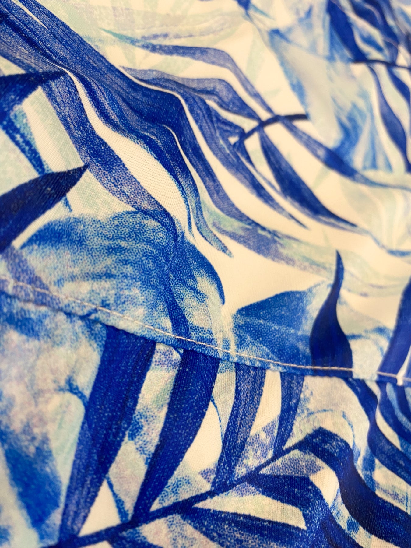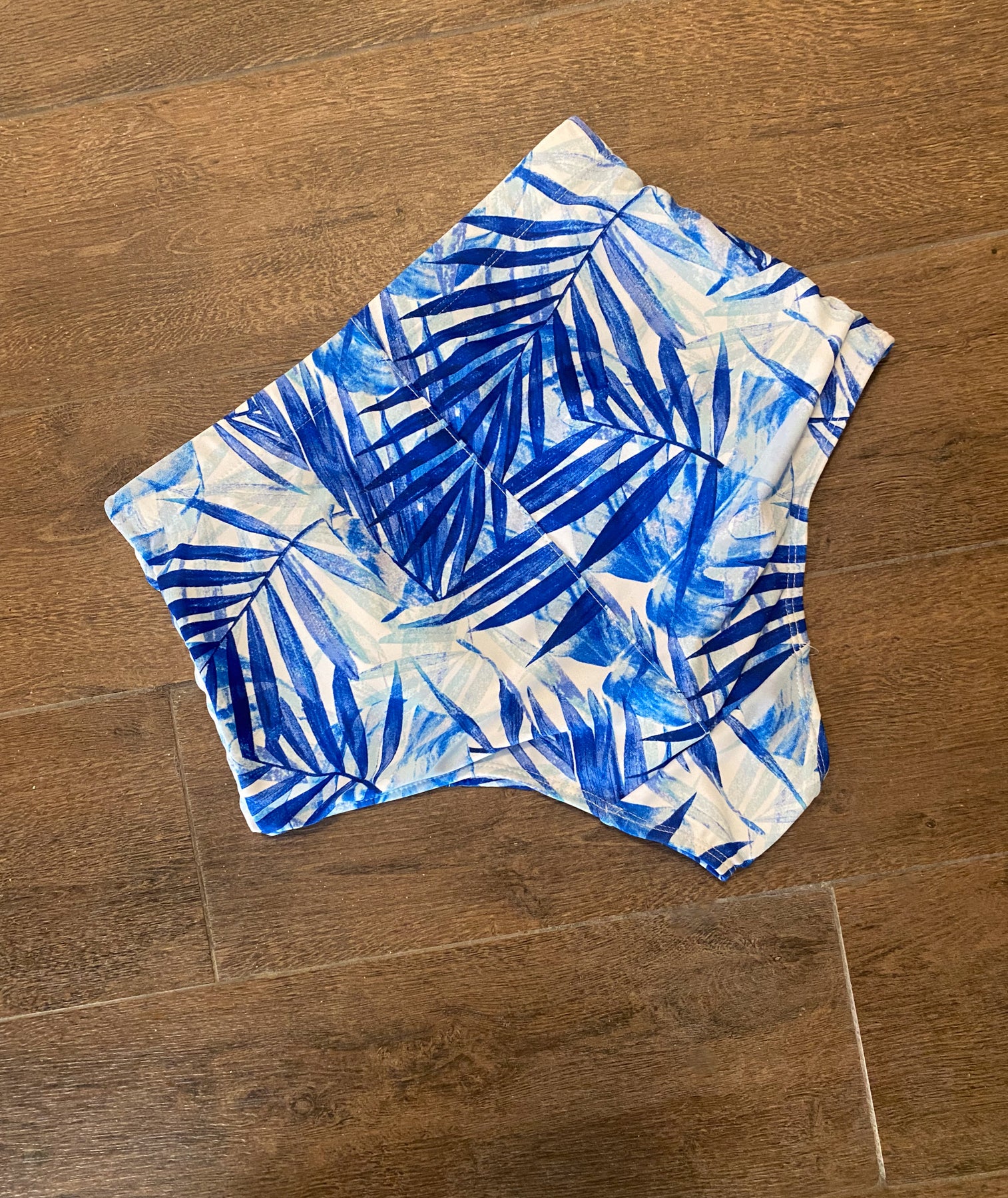 High waisted Bottom. Printed Palms in blue tones. Perfect fit to hide your tummy.