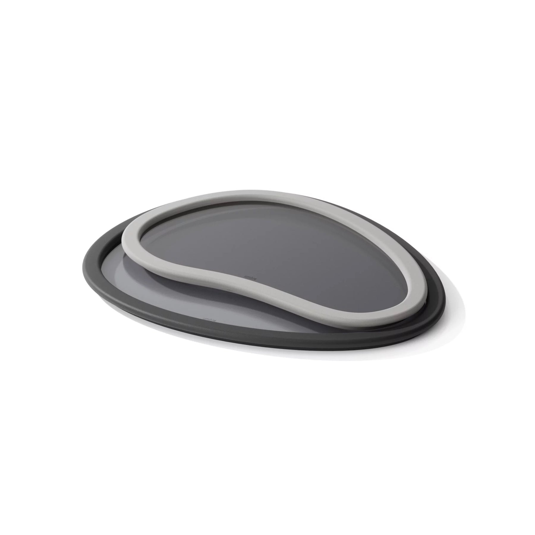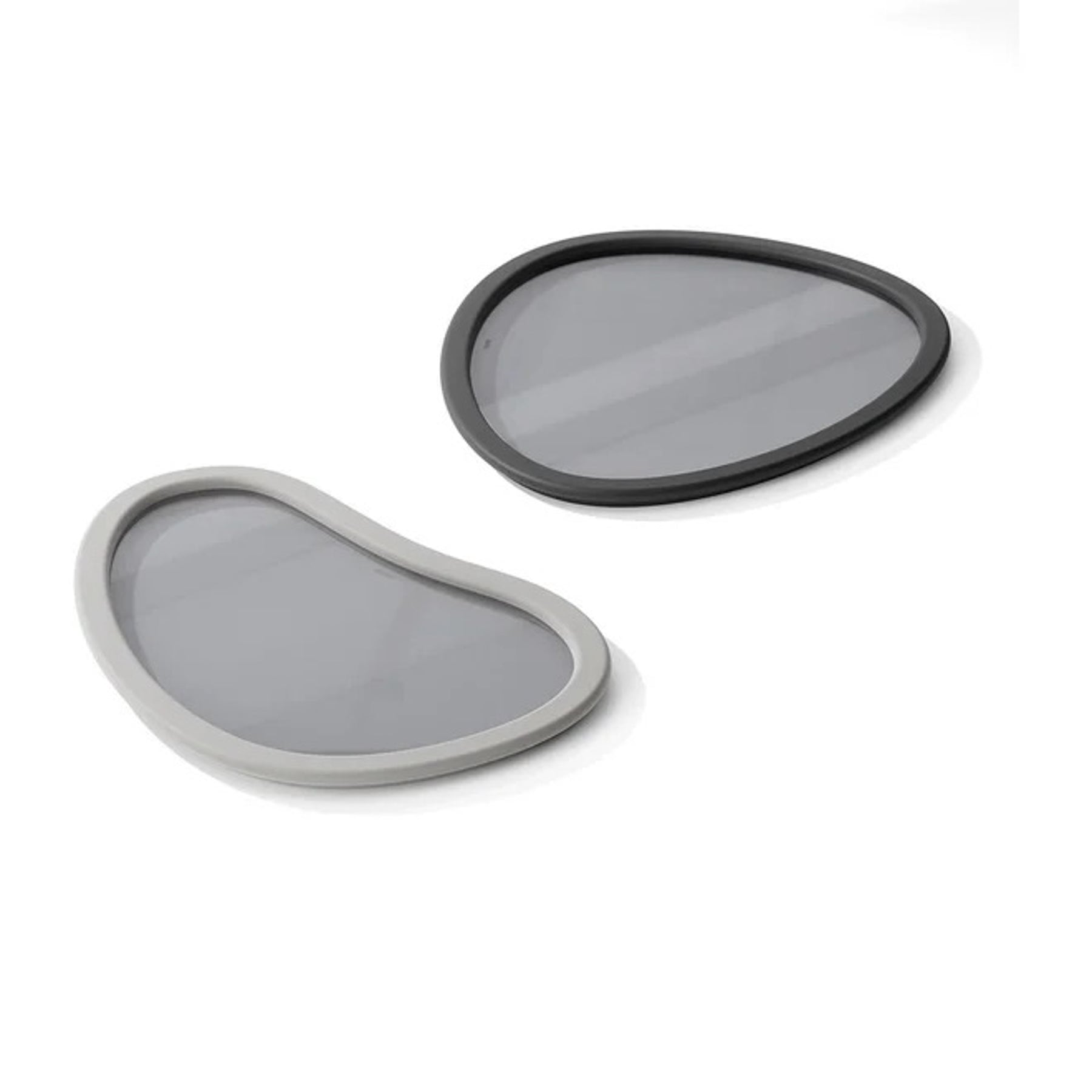 Combination of two tinted translucent pieces in complementary grayish tones. The PERFECT serving trays DO exist ;)