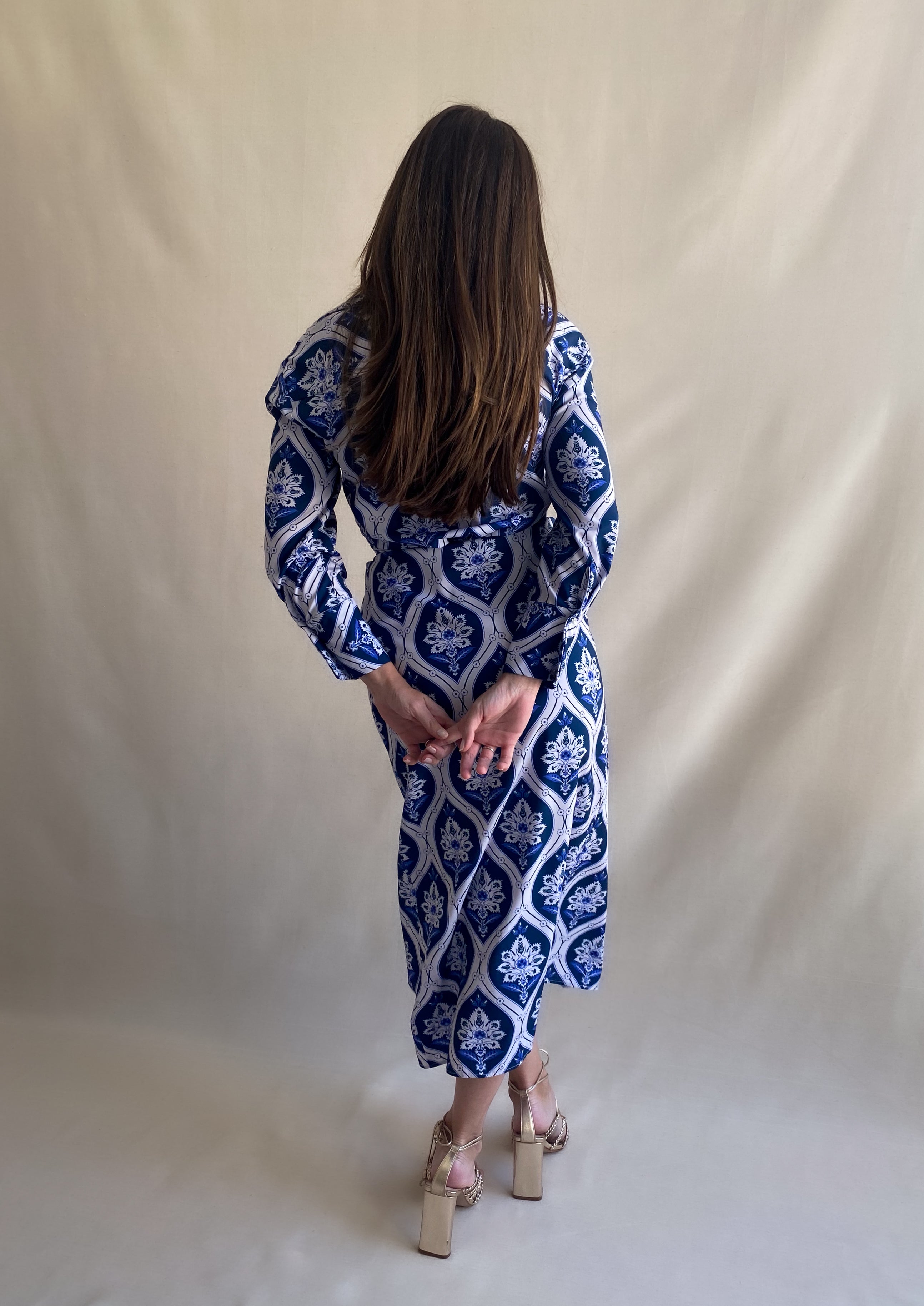 LOTUS VESTIDO CRUZADO ESTAMPADO AZUL