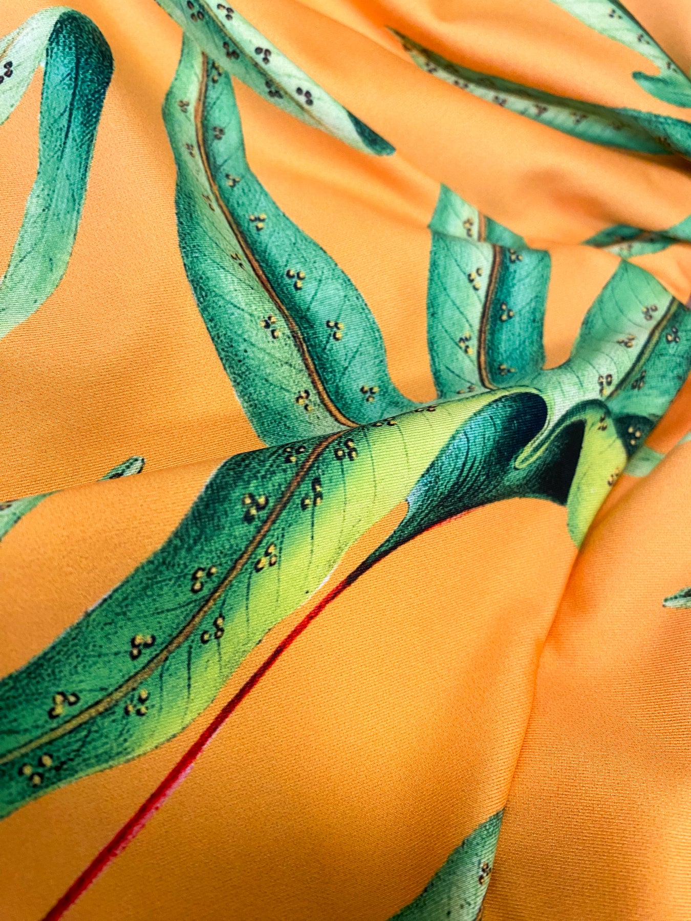 Traje de baño Colombiano, Mar De Lua, con tela de estampado de hojas, Formato en V.