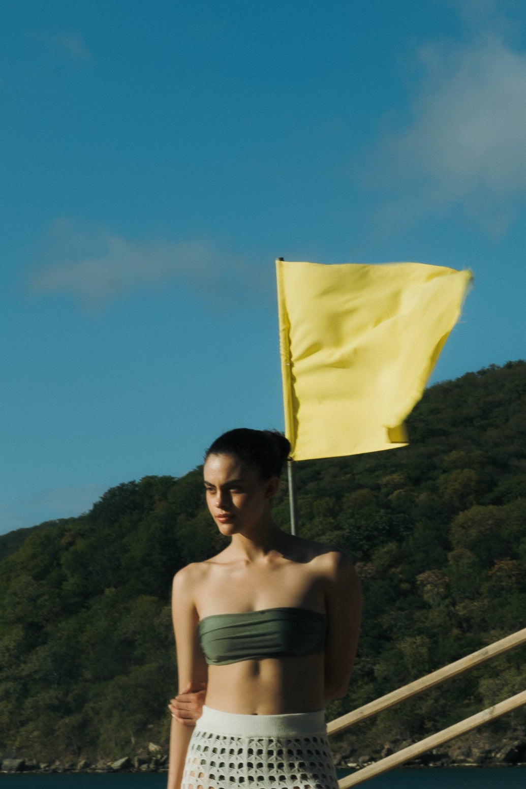 This strapless halter-style bikini top is made for sun lovers. Designed to leave minimal tan lines, it’s the perfect piece for lounging, sunbathing, or taking a dip in style.
