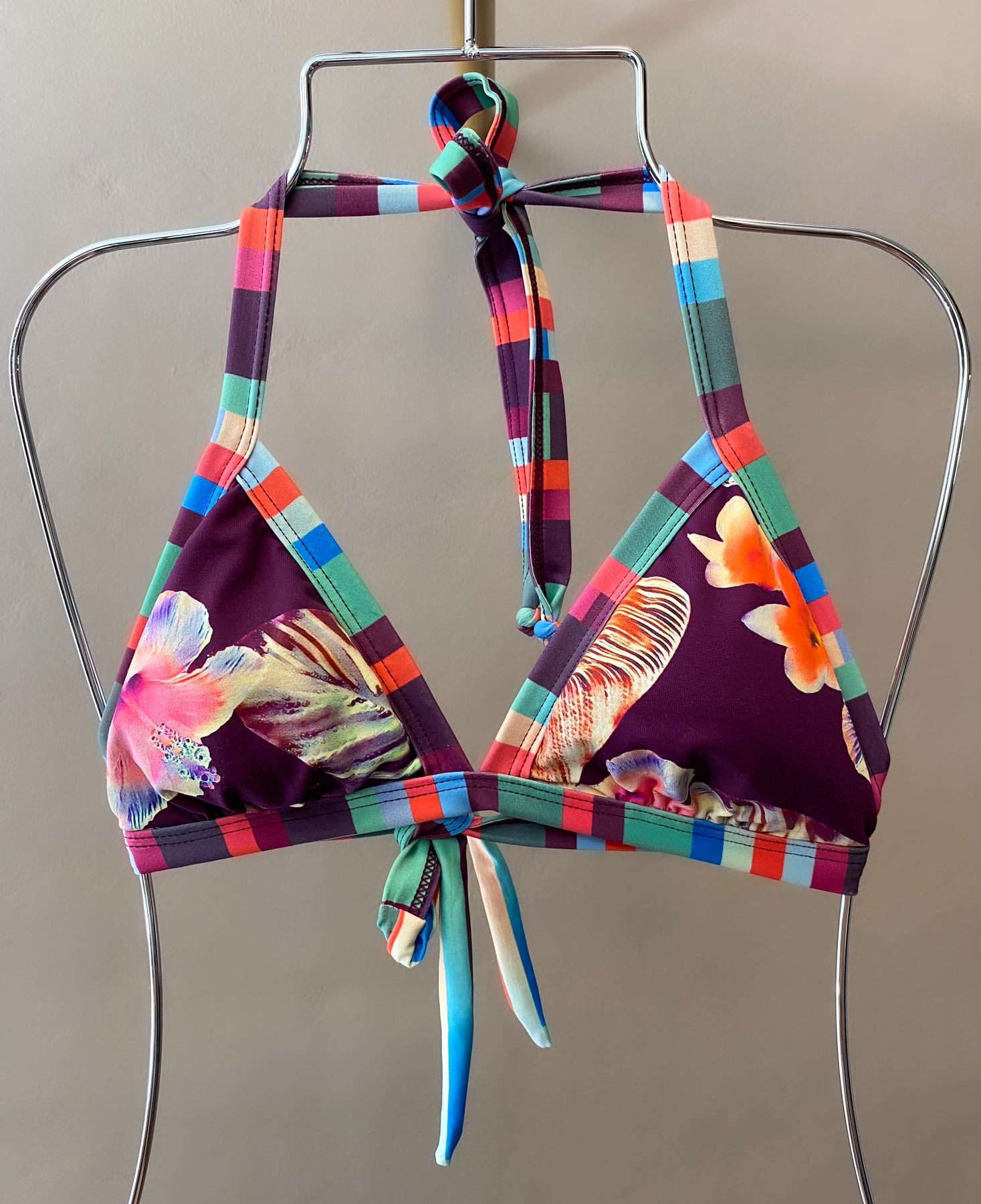 Top de Formato De Triangulo Floreado Con Rayado multicolor.