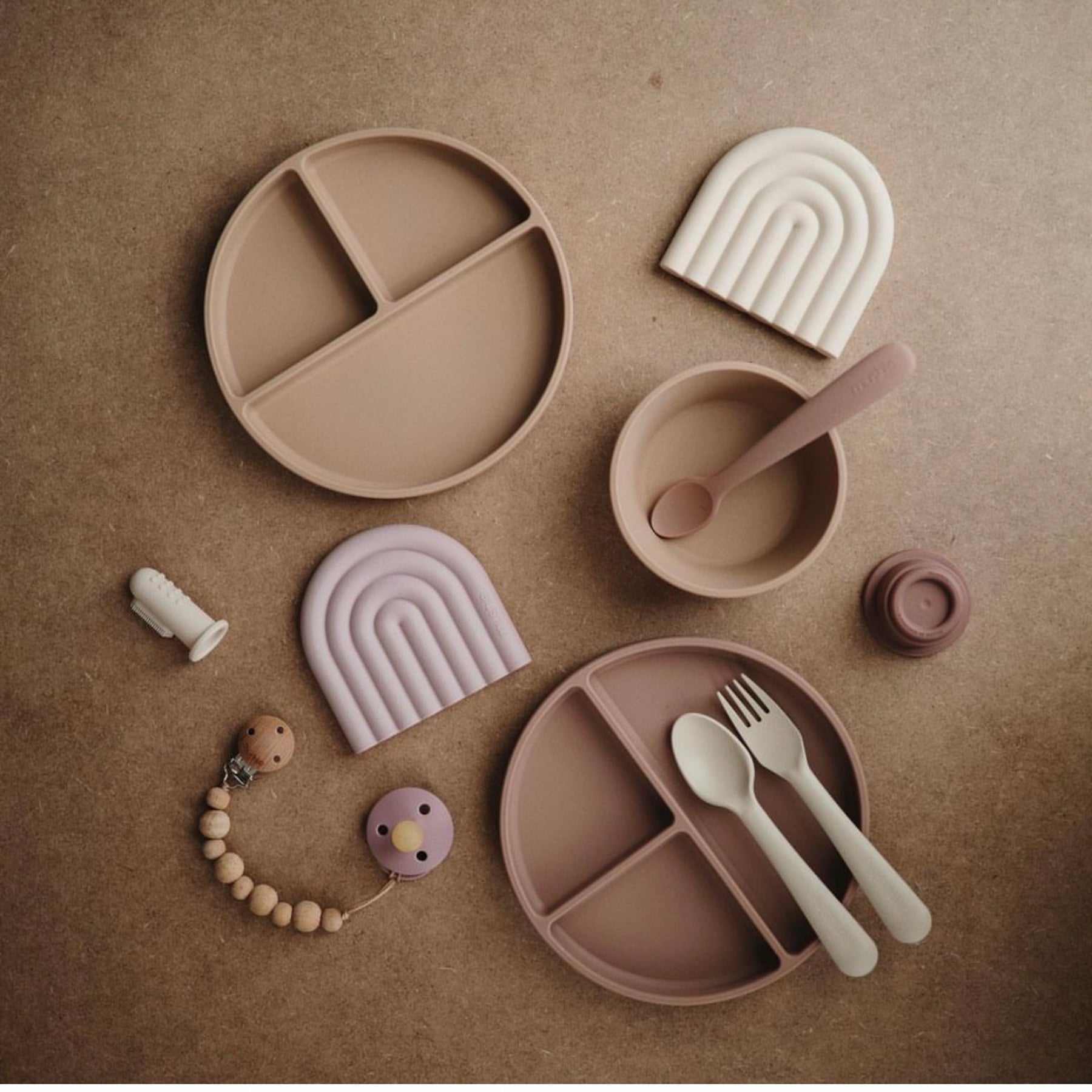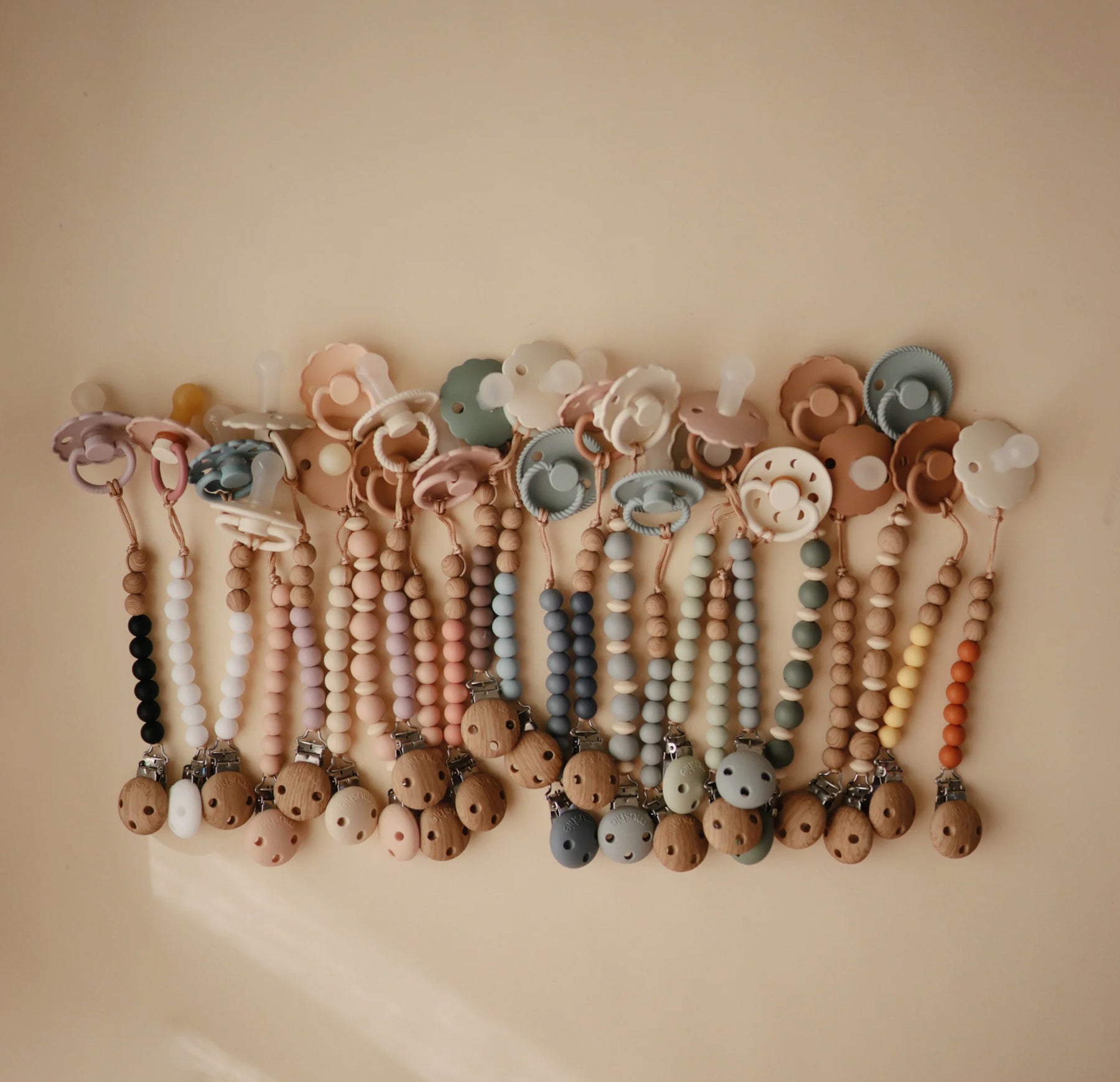 The Mushie silicone pacifier clip offers durability, function and simplicity to families on-the-go. Made from 100% food-grade silicone, our clip features a faux wood silicone clasp that brings a modern take to a traditional favorite. With a simple stack of silicone beads in two complementary colors, the Eva clip offers a sophisticated touch to your pacifier accessories. The clip is easy to clean and helps keep soothing items in reach for little ones.