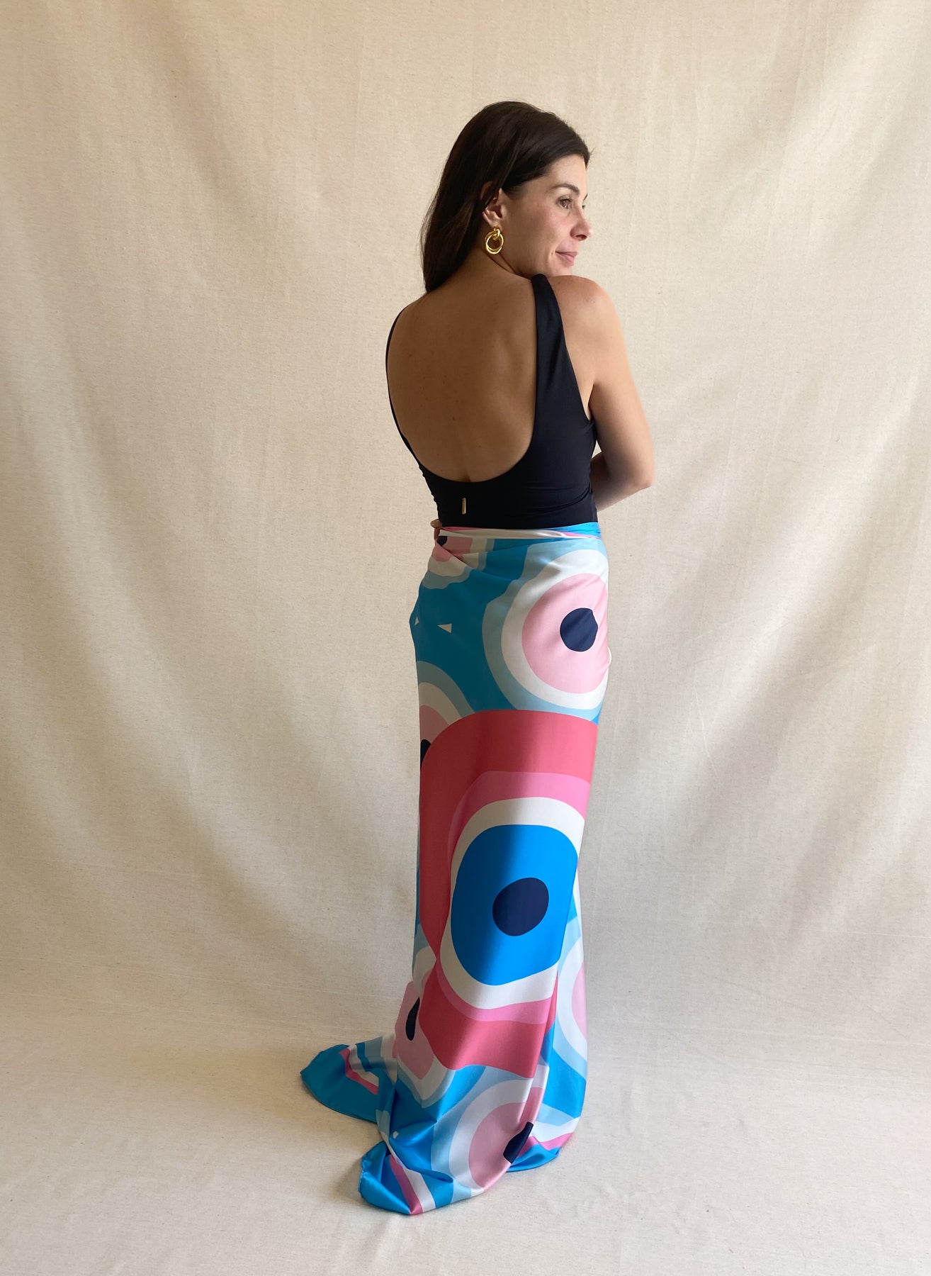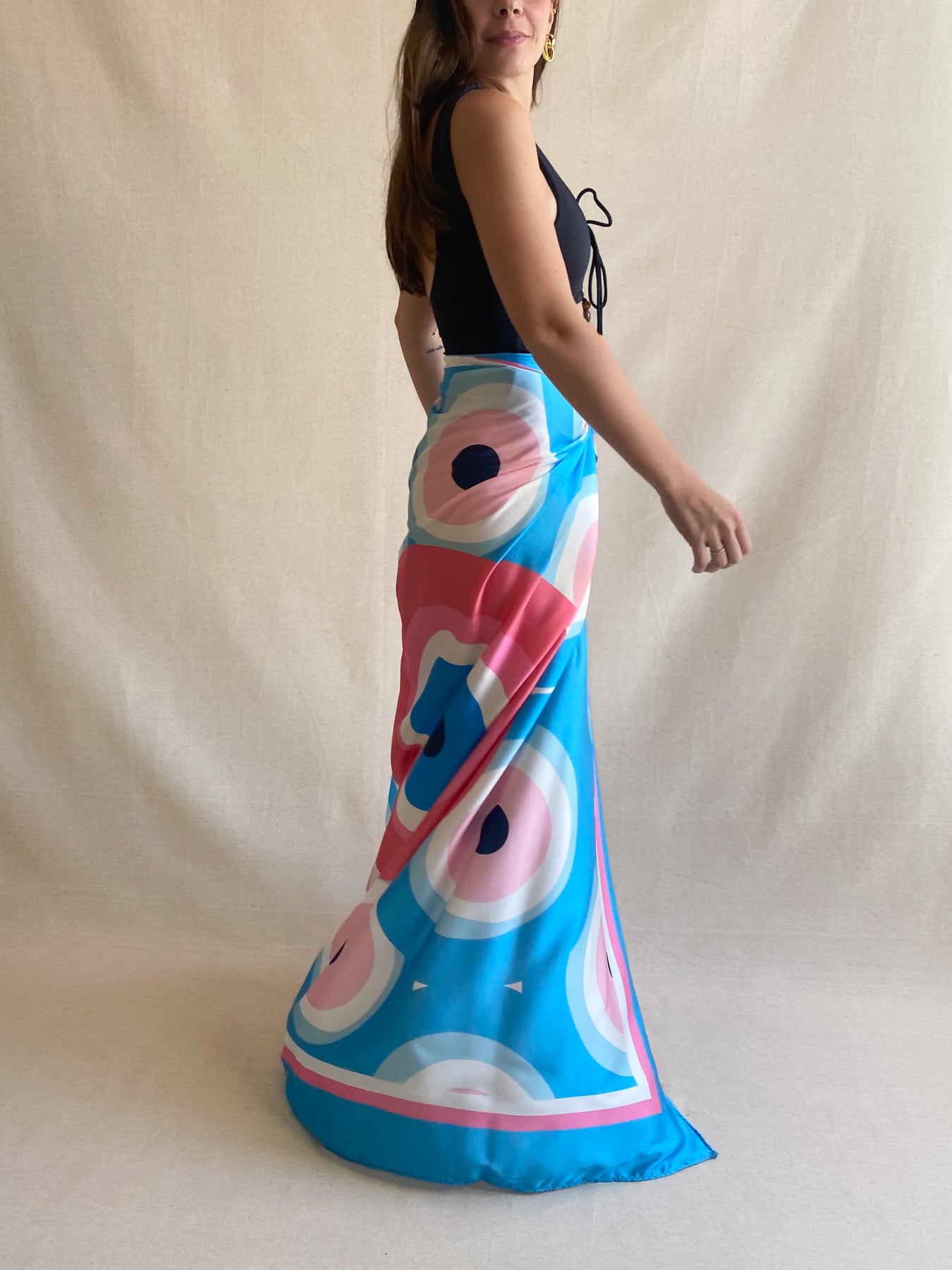 Pareo cuadrado, para que puedas usarlo anudado a la cintura o bajo los brazos. También se presta para ser utilizado como outfit playero amarrado a la cadera sobre un traje de baño!