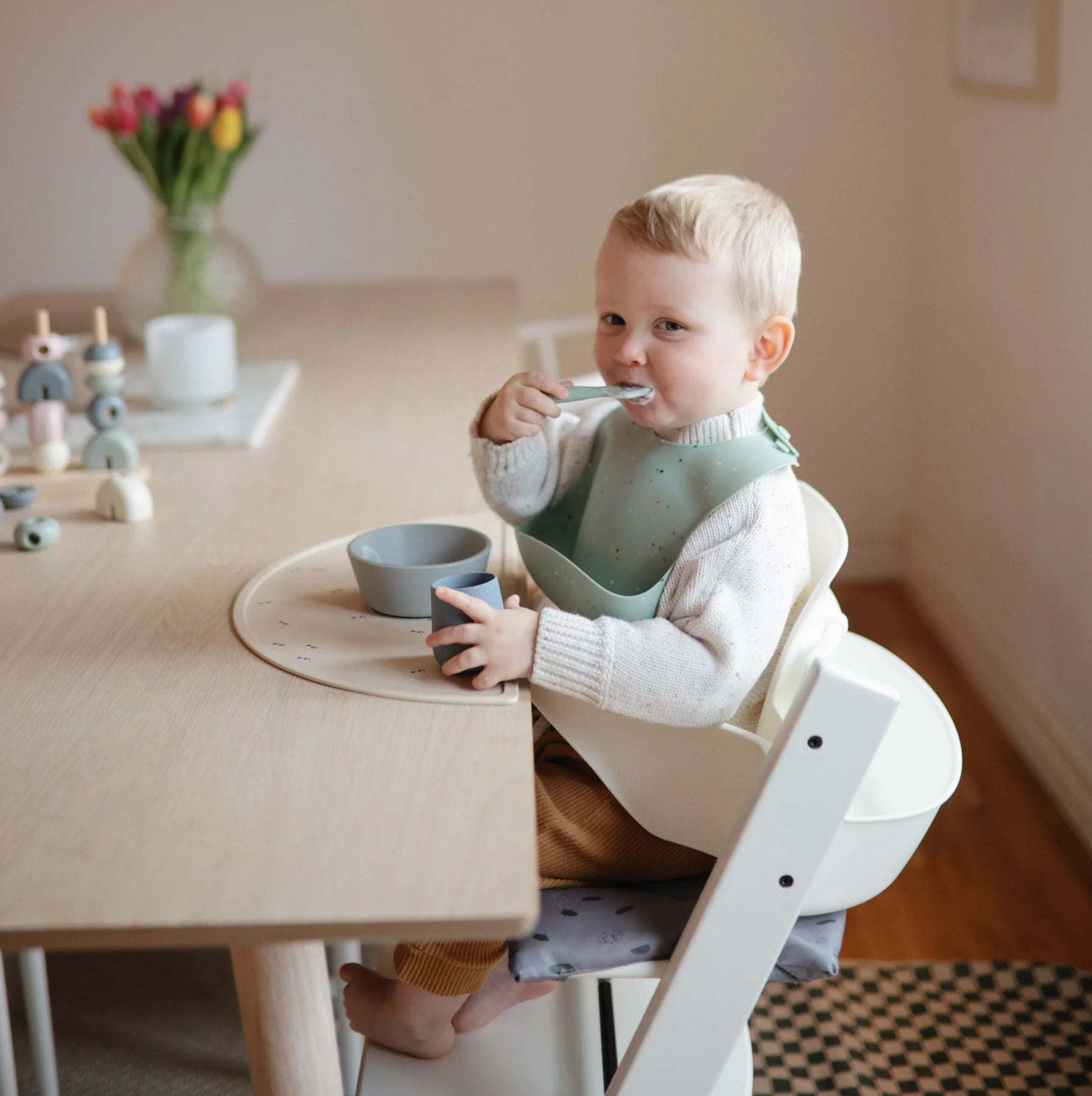 Designed in Sweden, these plates feature a suction that keeps it in place, minimizing spills as your little ones learn how to feed themselves. The food-grade silicone material lets you safely heat food up directly in the dish -- without worrying about things getting too hot for your baby's fingers. The smaller plates feature soft colors and clean design. This plastic dinnerware set is simple, elegant, and easy for your baby to hold. Made in Denmark from BPA-free polypropylene plastic, these plates are dishwasher- and microwave-safe to simplify mealtime and make cleanup easy.