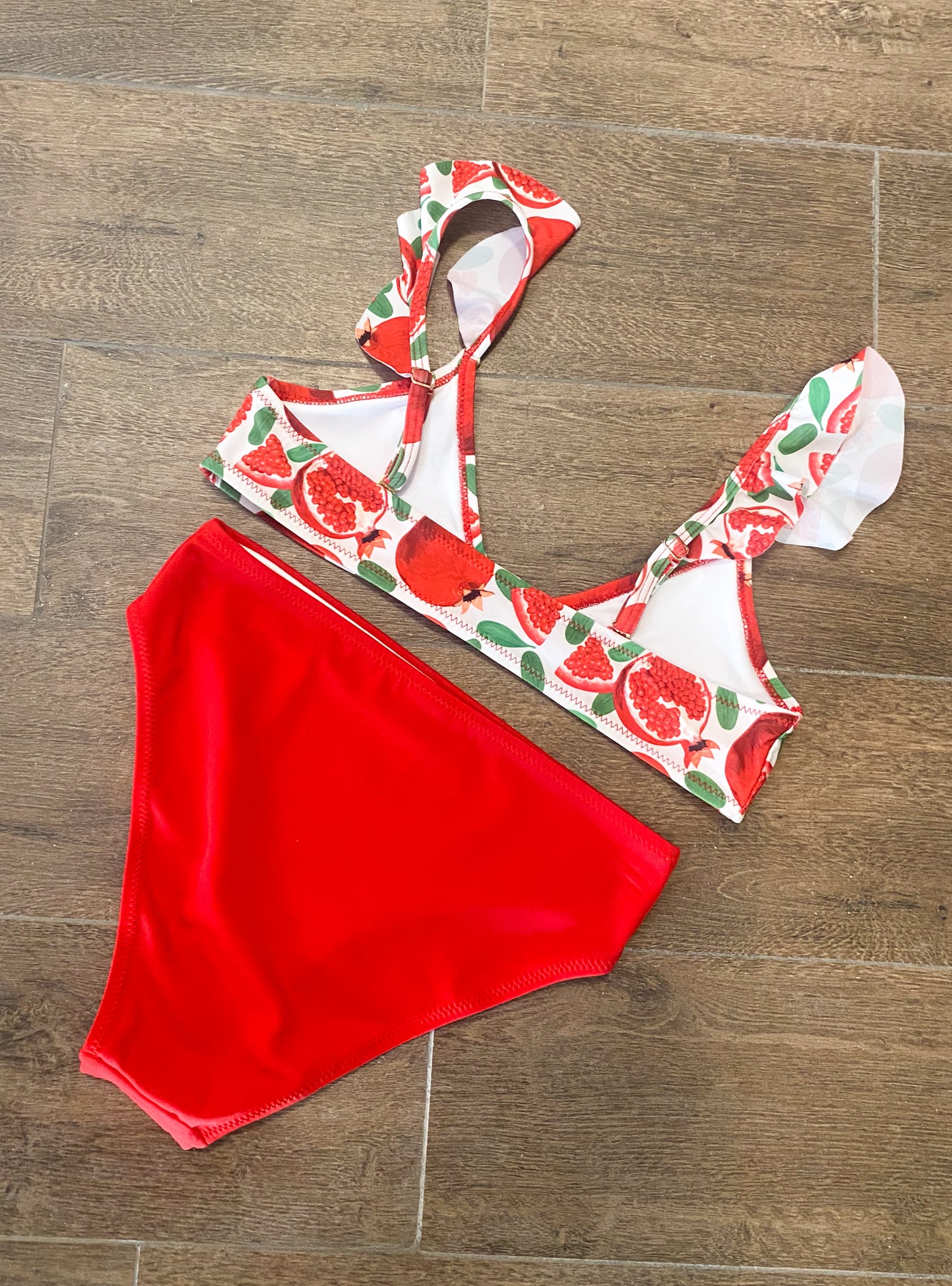 Solid Bottom And Pommegranite Top 12 Bikini Set