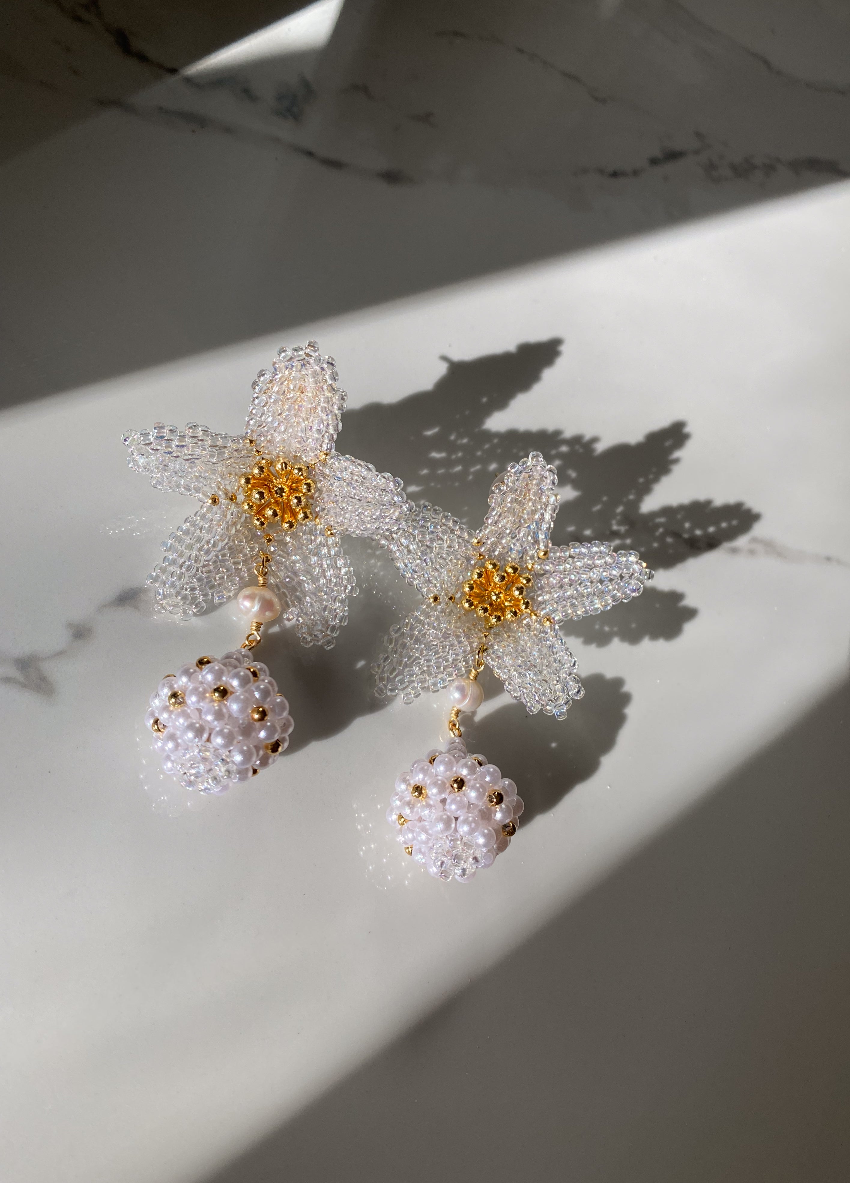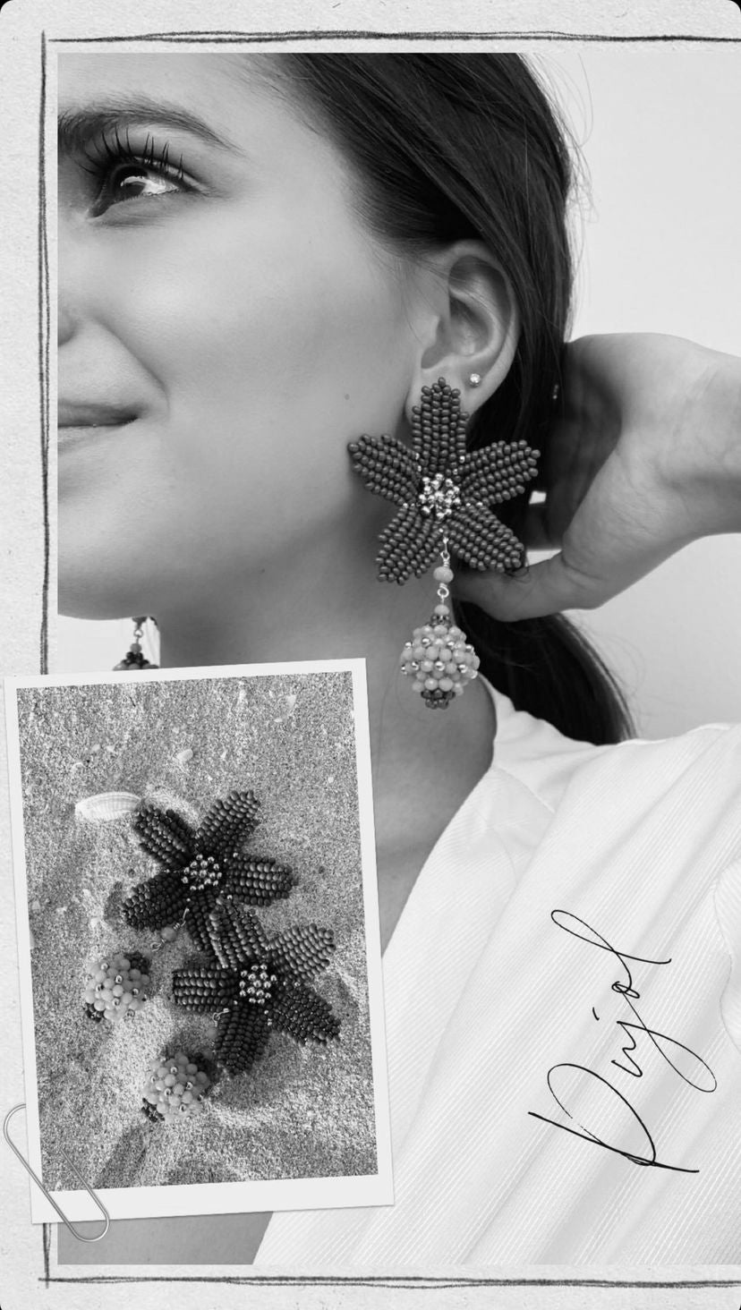 Ths jewel is a Divana original design. Designed with unique lightweight materials such as bronze with gold plating, acrylic, crystals, fresh pearls, and Nacar Beads. Please not all Divana products are handmade and coulf have minimal variations from photograph present. Made in Colombia.