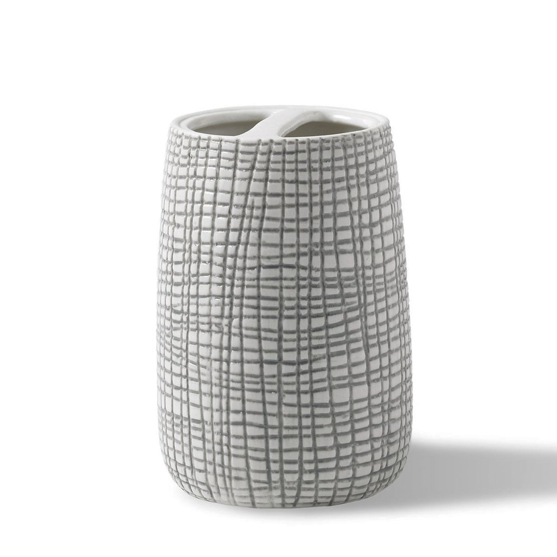 Add this stylish, textured Cassadecor Cestino Bathroom Accessory Collection to your bathroom decor for a complete look. This white porcelain Tootbrush Holder measures 9.5cm h, diameter 6.5cm. Soap Dish measures 12cm l x 10cm w.