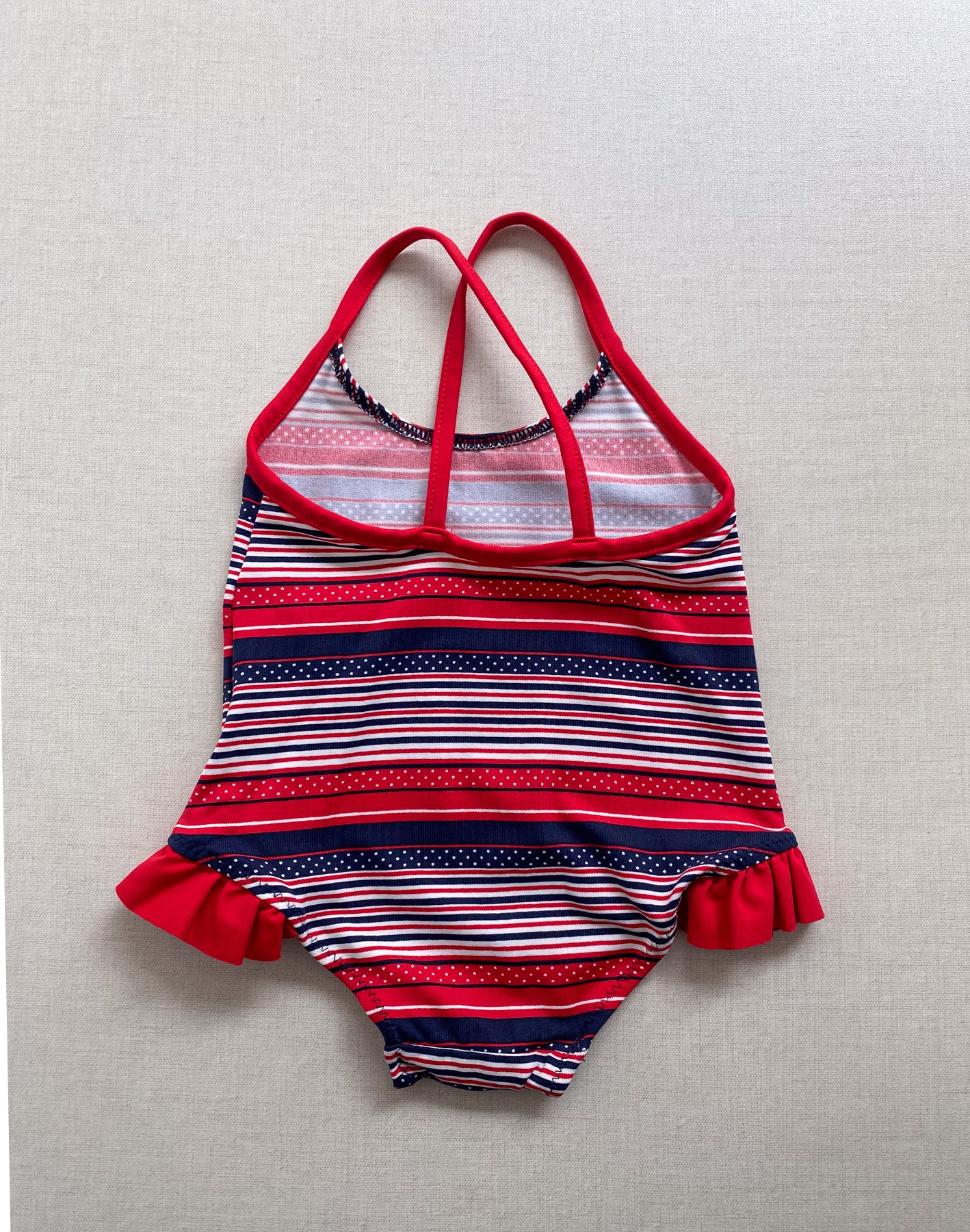 SWIMSUIT RAYAS BLANCAS Y AZULES Y ROJAS ONE PIECE - 6M