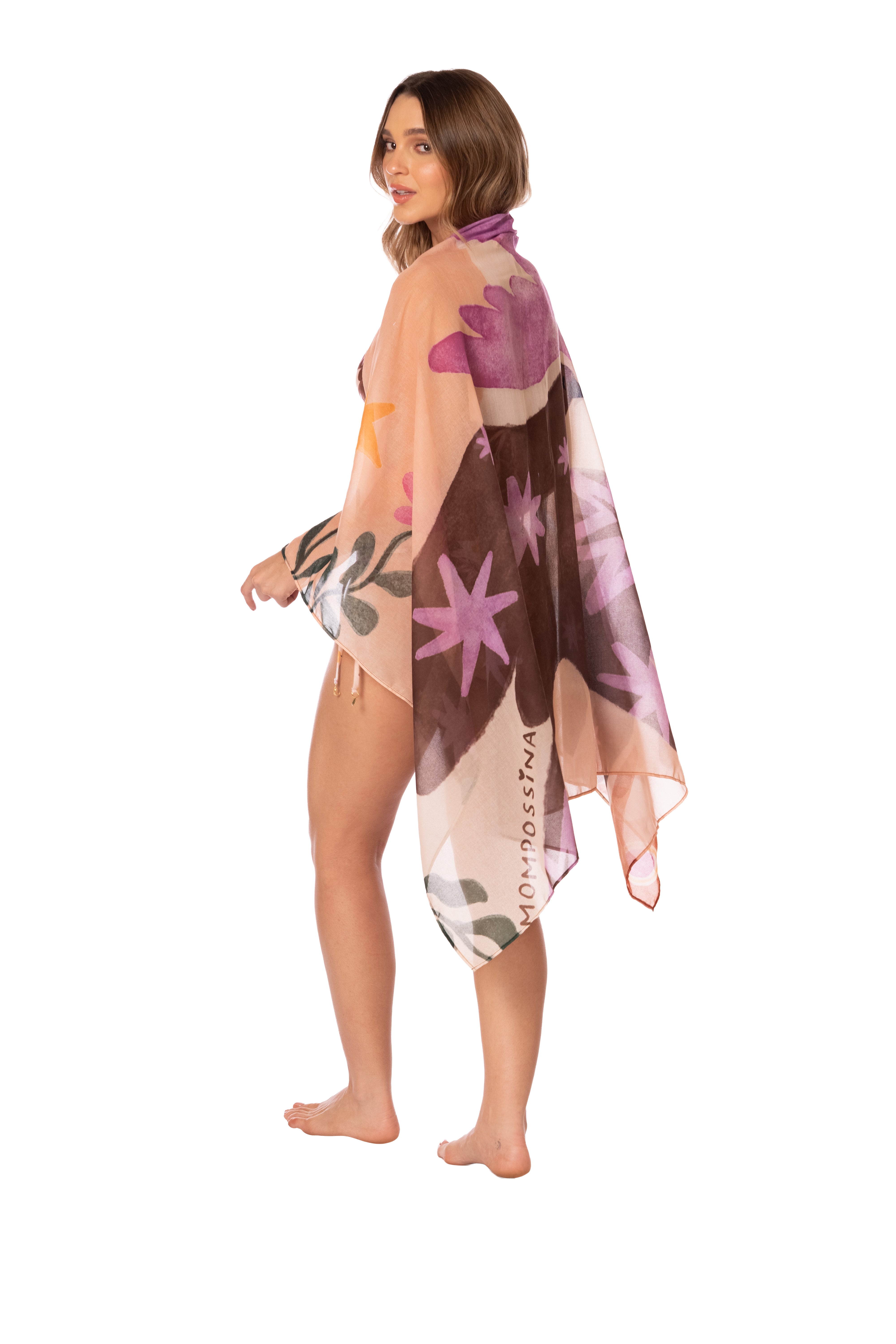Printed pareo, ties at waist, localized print.