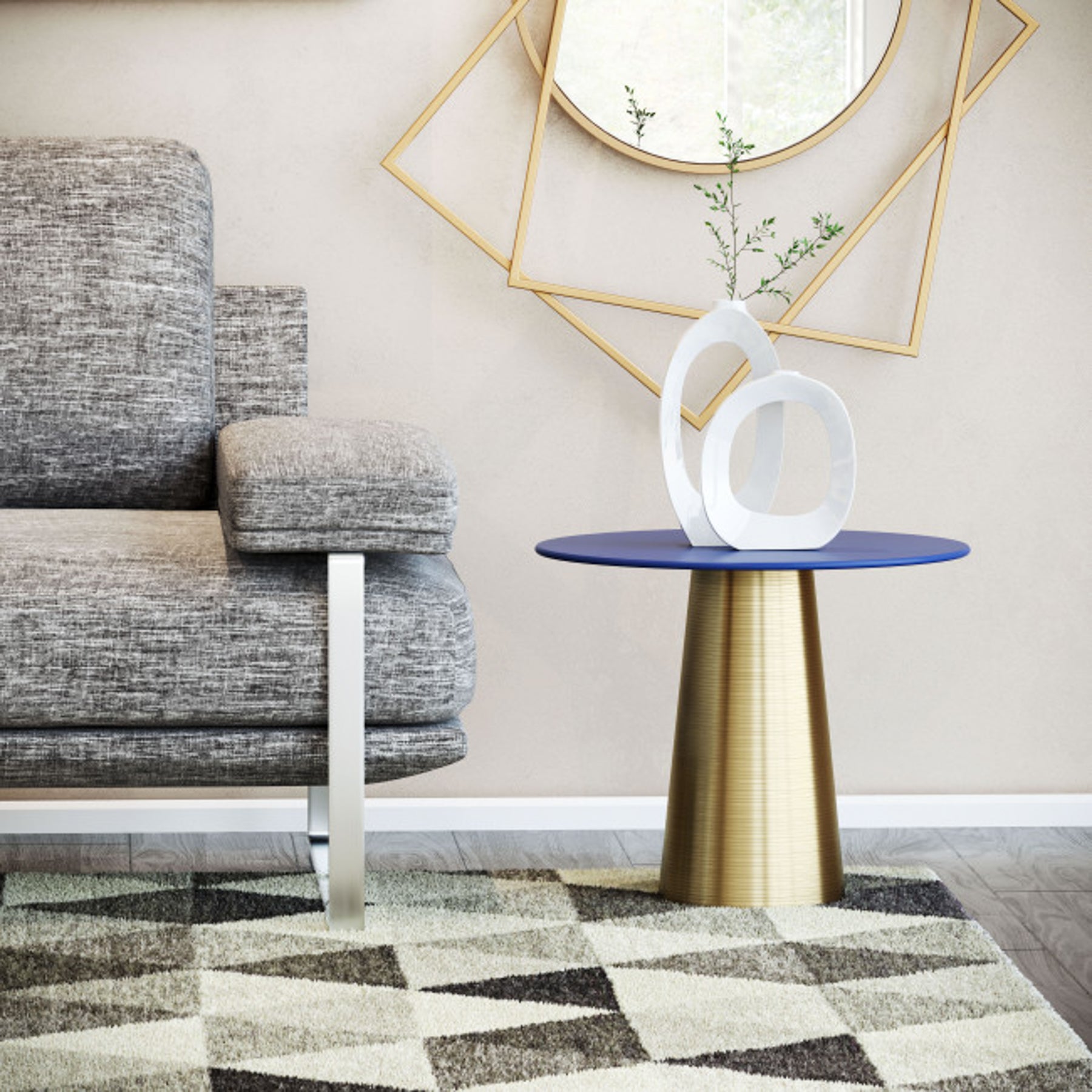 Height: 43cm Diameter: 51cm. Nice gold and blue finish!