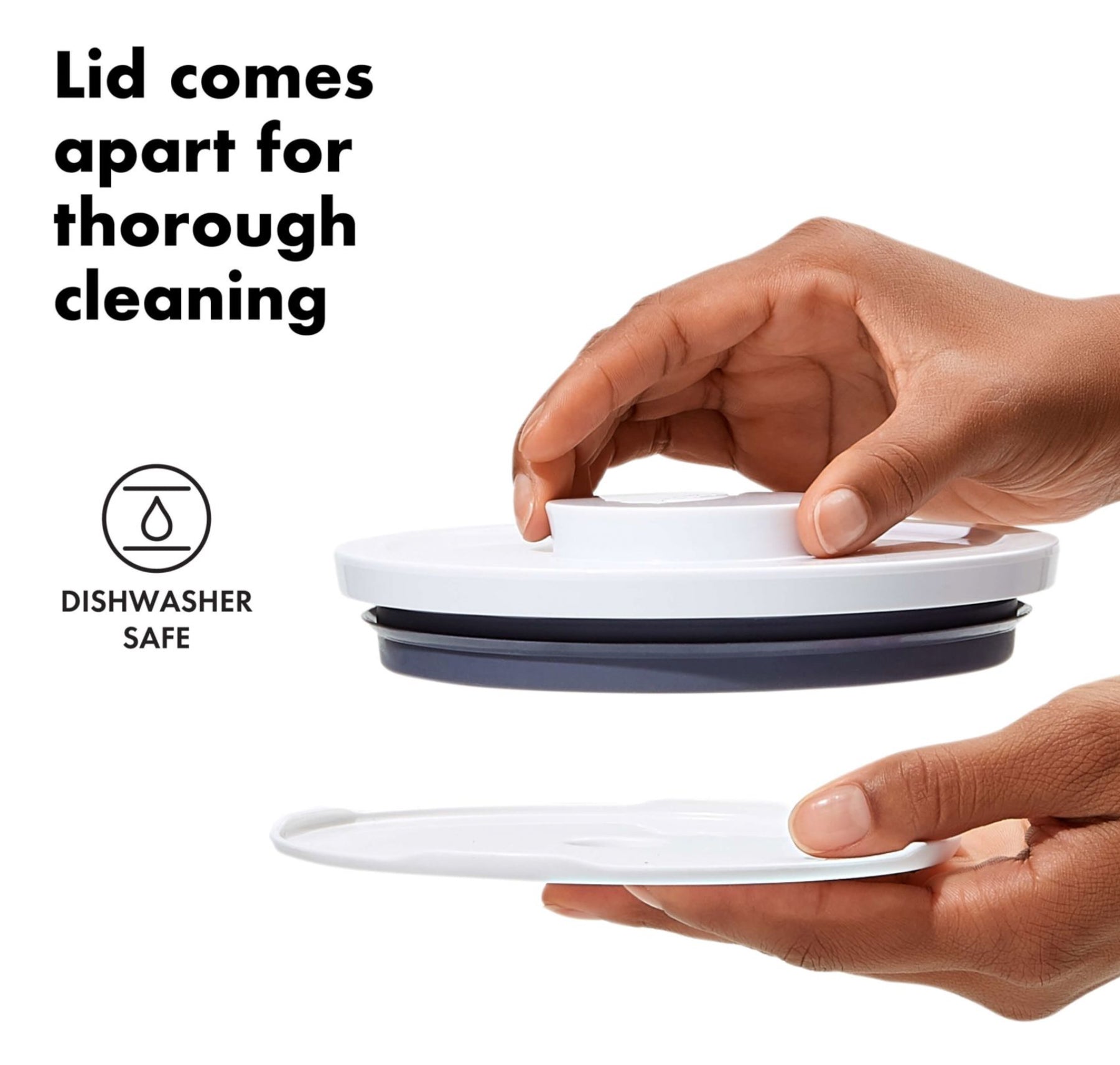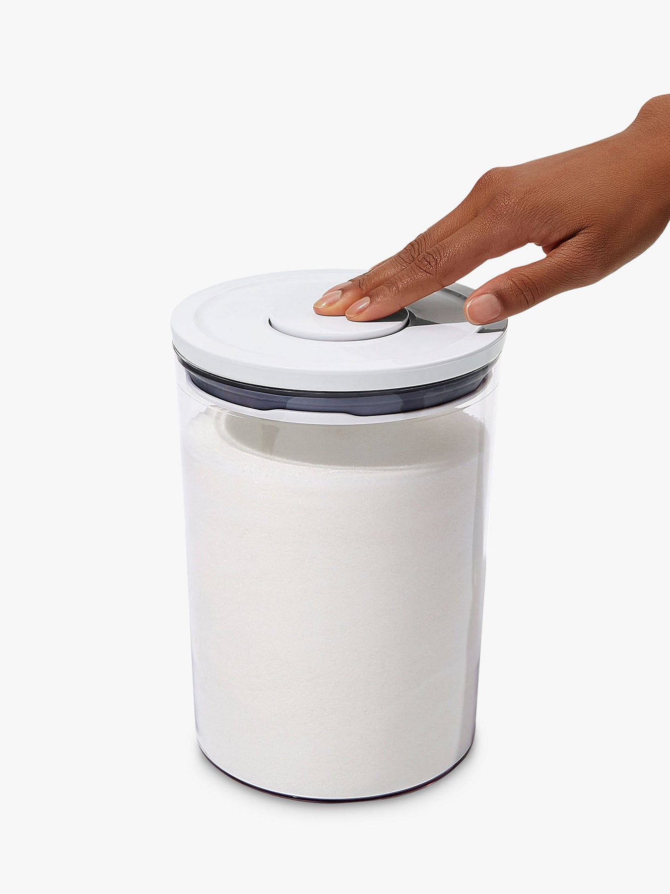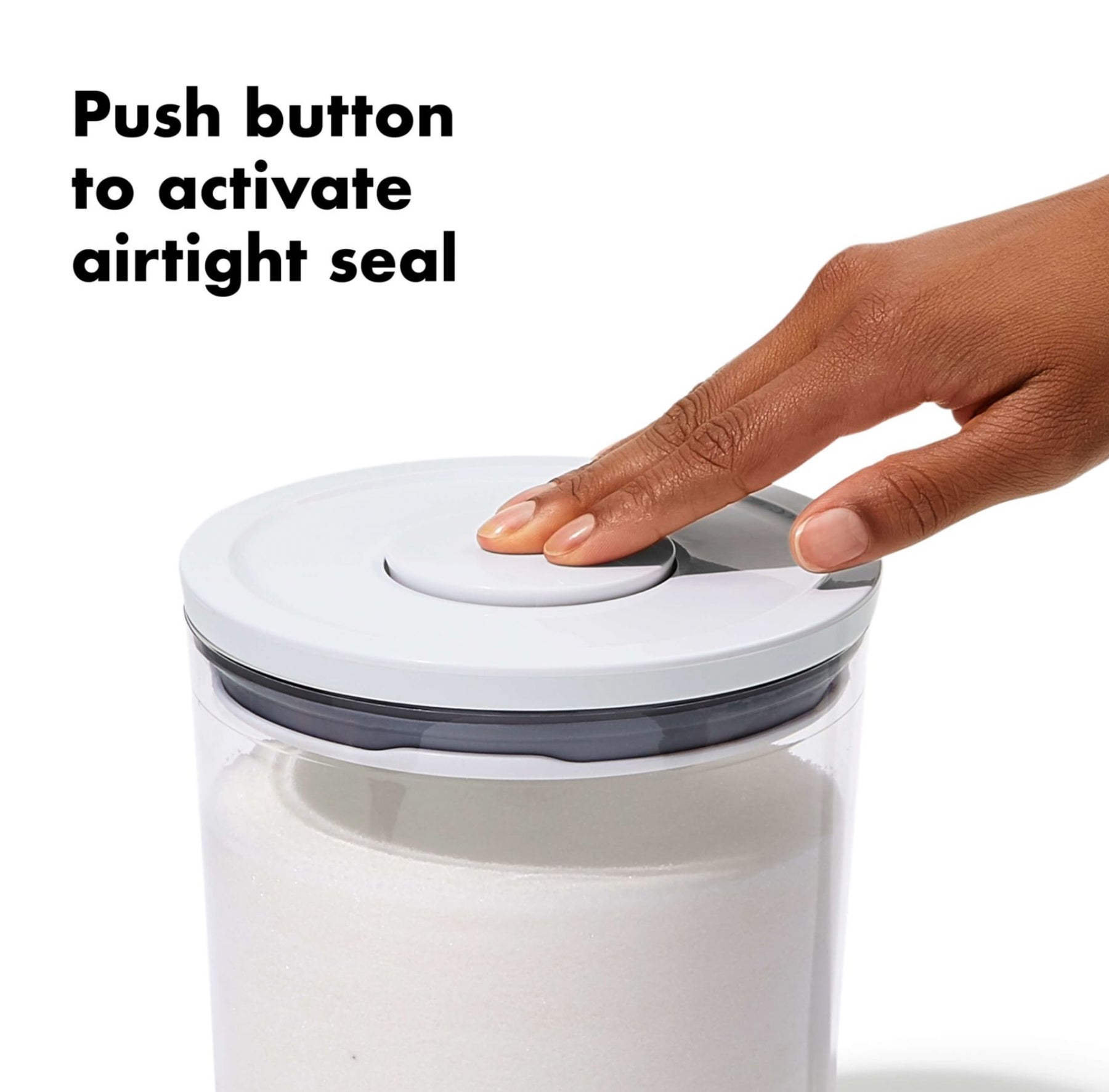Keep dry foods and ingredients fresh and close at hand with the OXO Good GripsPOP Round Container. These Containers have a push-button lid that creates an airtight seal—and doubles as a handle for easy, one-handed opening. POP Round Containers are perfectly calibrated to store common household staples like cereal, flour, sugar, pasta, rice, coffee, nuts, snacks and more. They nest with lids on for convenient storage. POP Containers aren’t just for kitchens: Use them any place you want more organization. For best results, always use the button to open and close. Do not carry POP Containers by the lid. BPA free. Dishwasher safe.