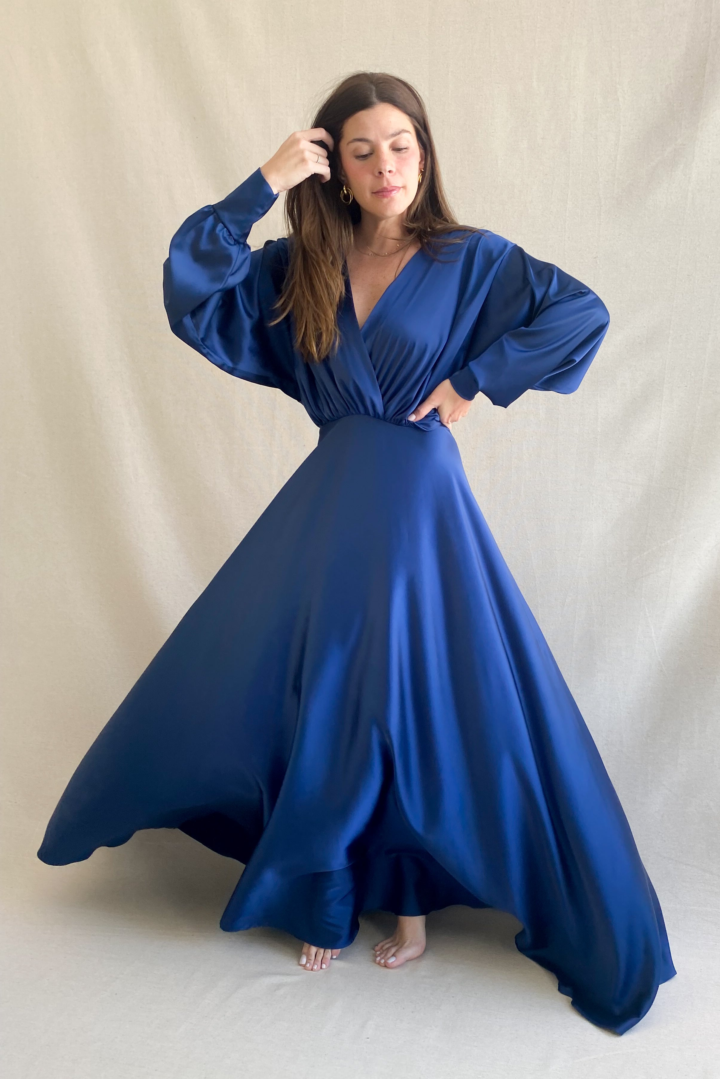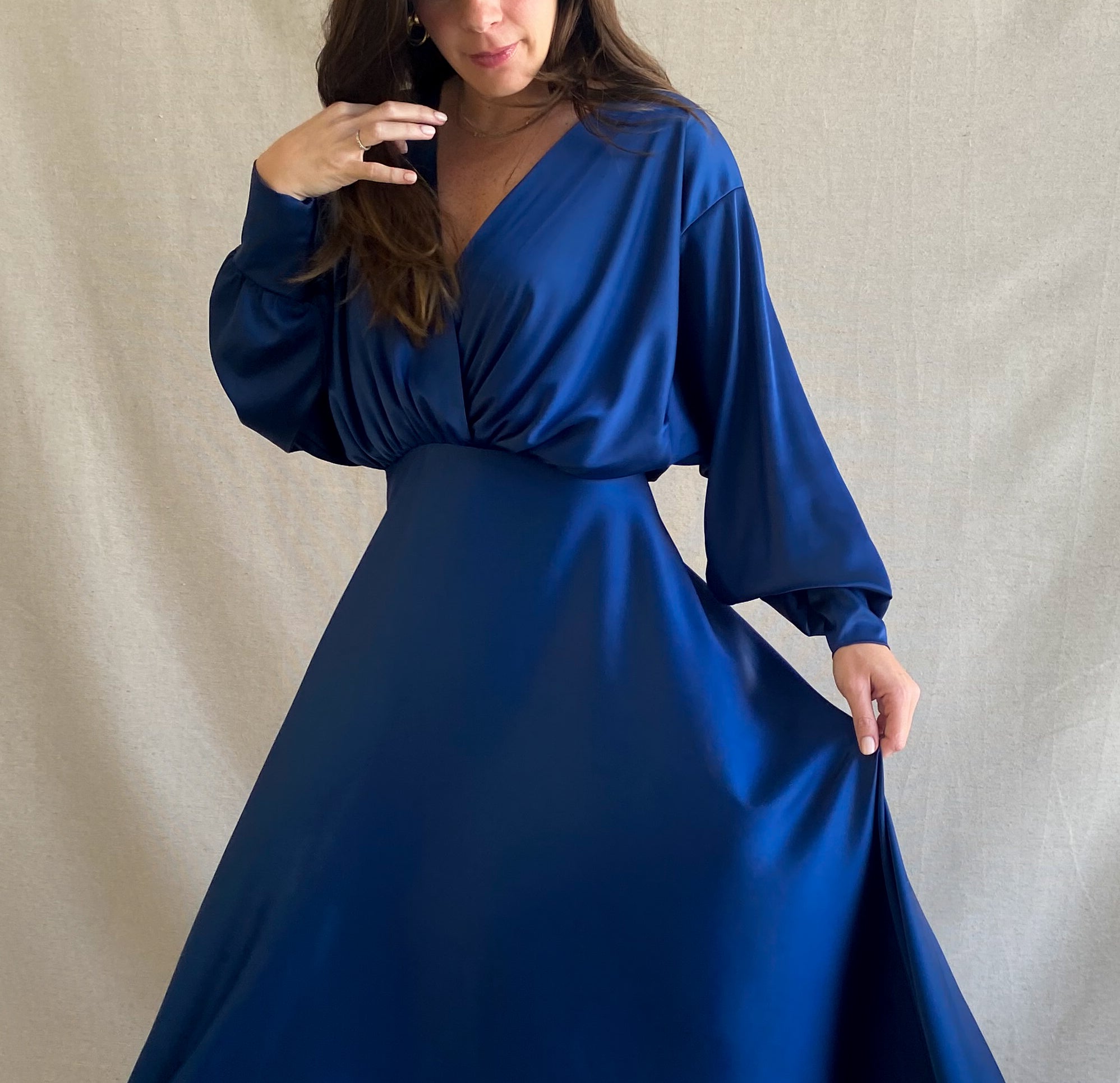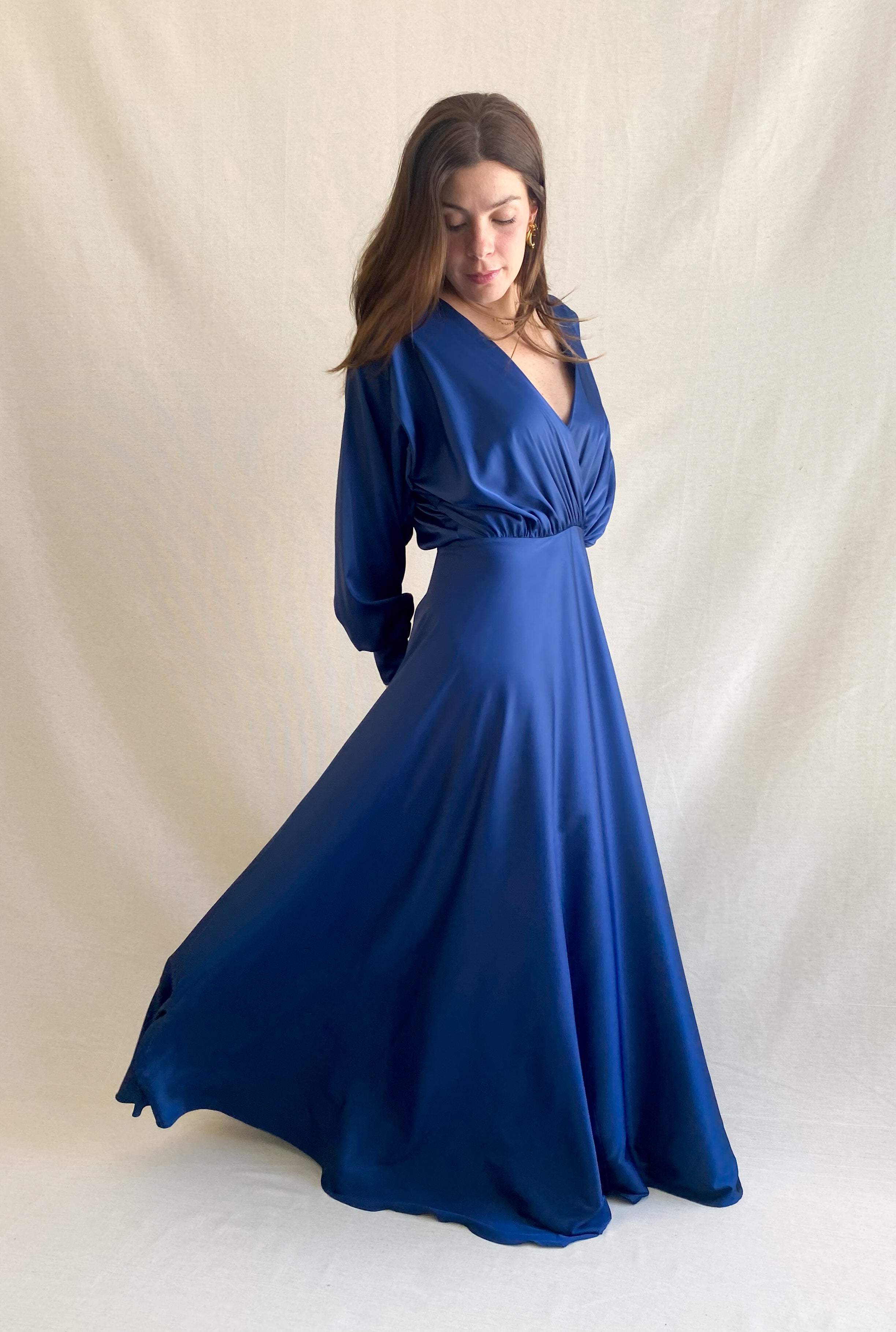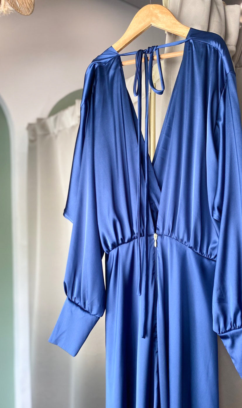 SABINA VESTIDO AZUL MARINO SOLIDO EN V