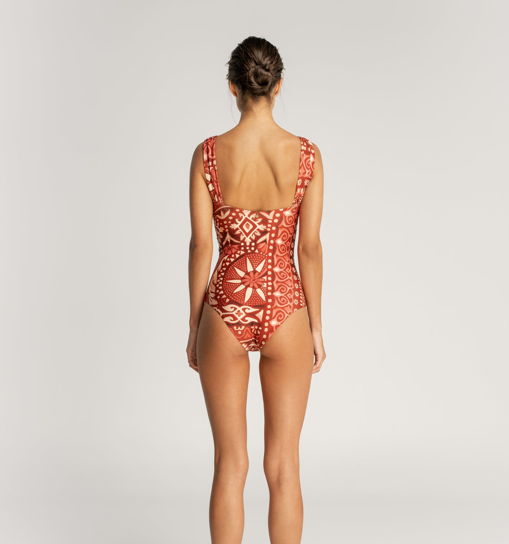One piece with Moderate coverage. Beautiful red fabric print by Encantadore.