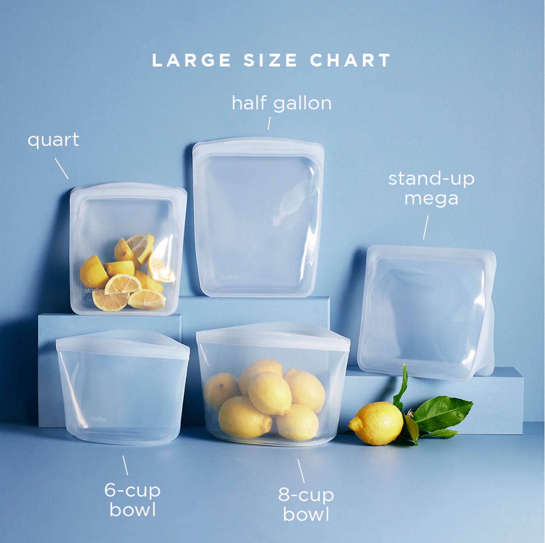 Choose your favorite Size and Color Below! Unlike other reusable bags and bowls, Stasher's are leak free with a patented Pinch-Loc® seal and made with incredibly durable, food-grade platinum silicone. Plus, they come in a pleasing palette of colors that are sure to spark joy every time they are used.