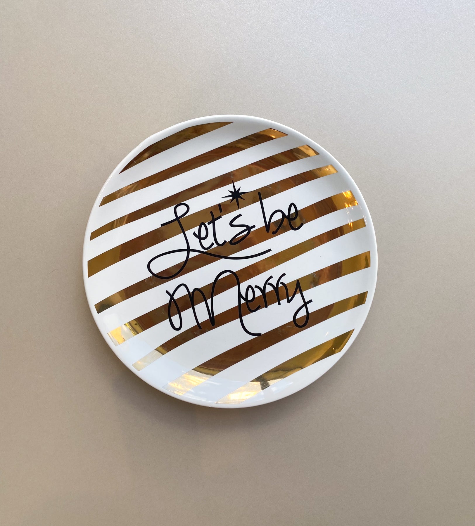 Ceramic plate with Striped Gold Design. 21cm diameter.